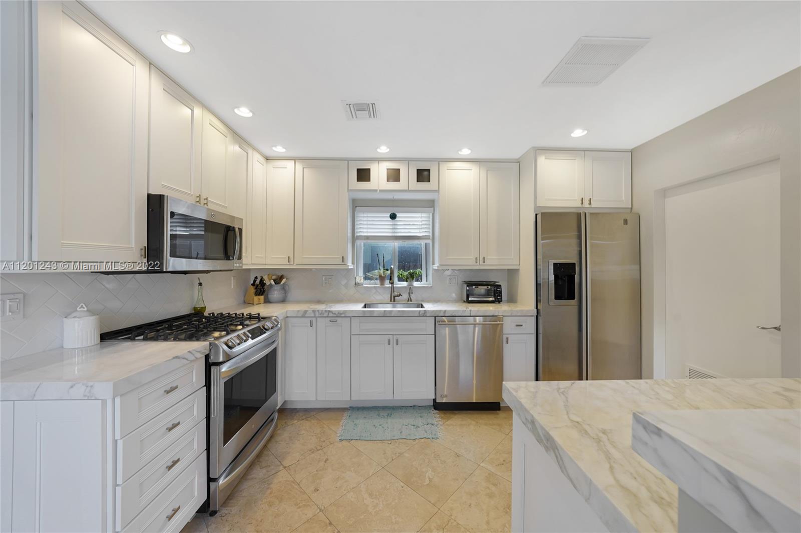 Are you ready to fall in love with the home of your dreams? This amazing property offers a recently remodeled kitchen with marble countertops, SS appliances, and gas range. Three remarkably renovated bathrooms with beautiful custom finishes, amazing spacious living quarters with custom built-ins, formal dining, commodious bedrooms including a stunning primary suite with great light from French doors that lead you into the private, fenced backyard with gorgeous landscaping. Enjoy your own personal oasis with heated pool and spa. Other features include tankless water heater, generator, two-zone HVAC, and ADT system amongst much more! Highly sought after neighborhood in Hollywood Lakes where you are walking distance from the sandy beaches of Hollywood. Make this home your own!
