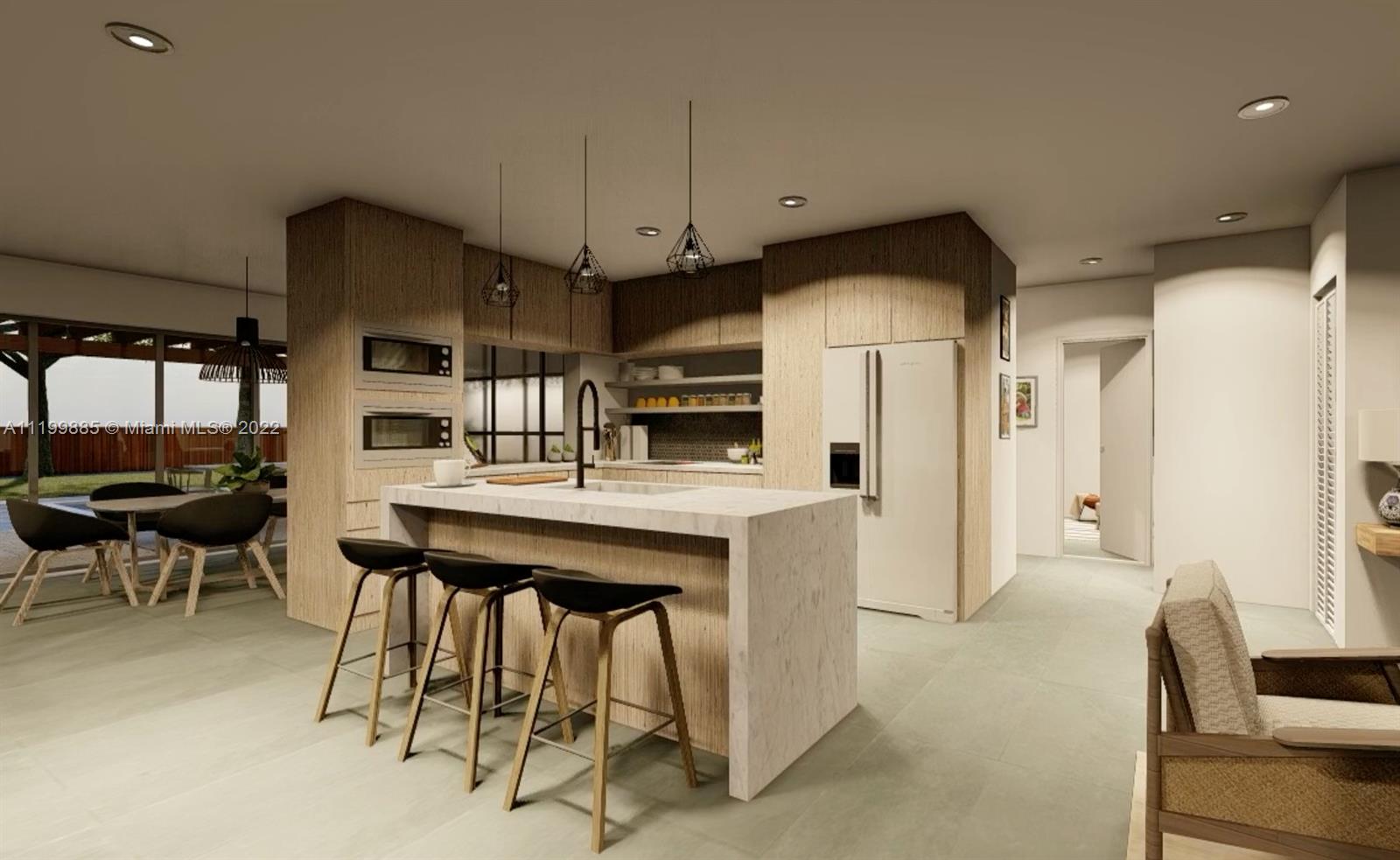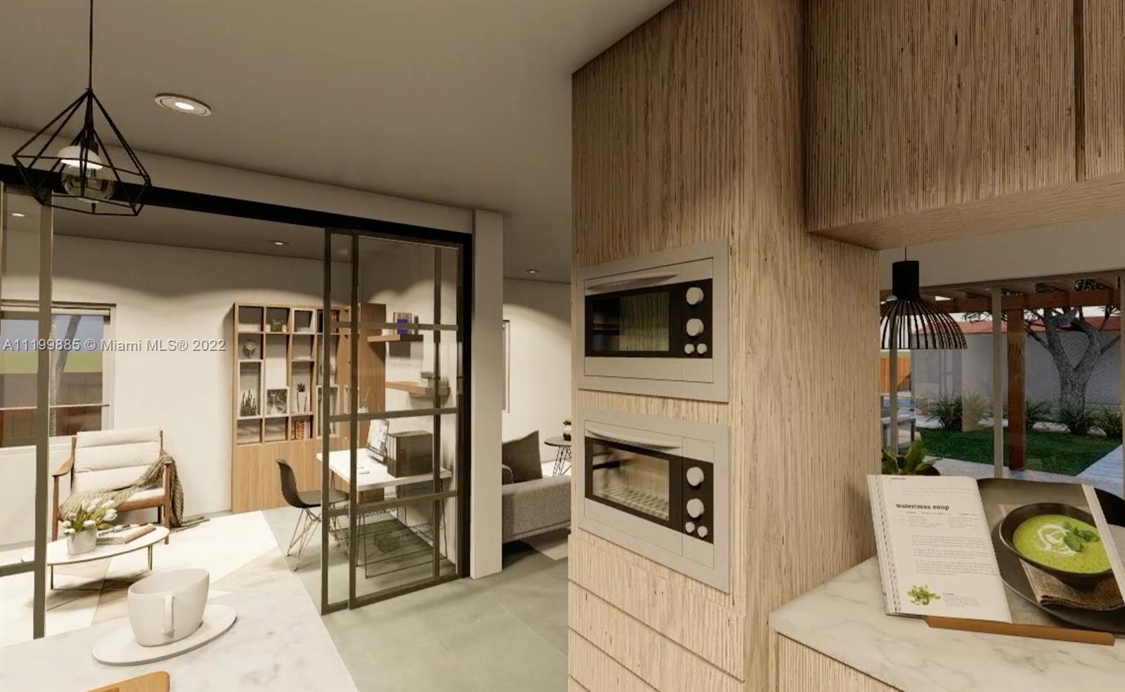 Turn-key decorator designed, fully furnished 4 bedrooms; 2 bathrooms home centrally located in desirable North Miami neighborhood. House is currently under construction and delivery date will be approximately the end of October 2022. House will be delivered as shown in the renderings. No expenses spared, recessed lights, large tile floors, costume made kitchen cabinets and bedroom closets, built-in bookshelves, lighting fixtures, window treatments. Manicured backyard with lush landscape, and large swimming pool. Living area is bigger than tax roll 1,700 SF, lot size 10,500 SF. Large concrete driveways with enough space to park several autos, RV, boat etc.