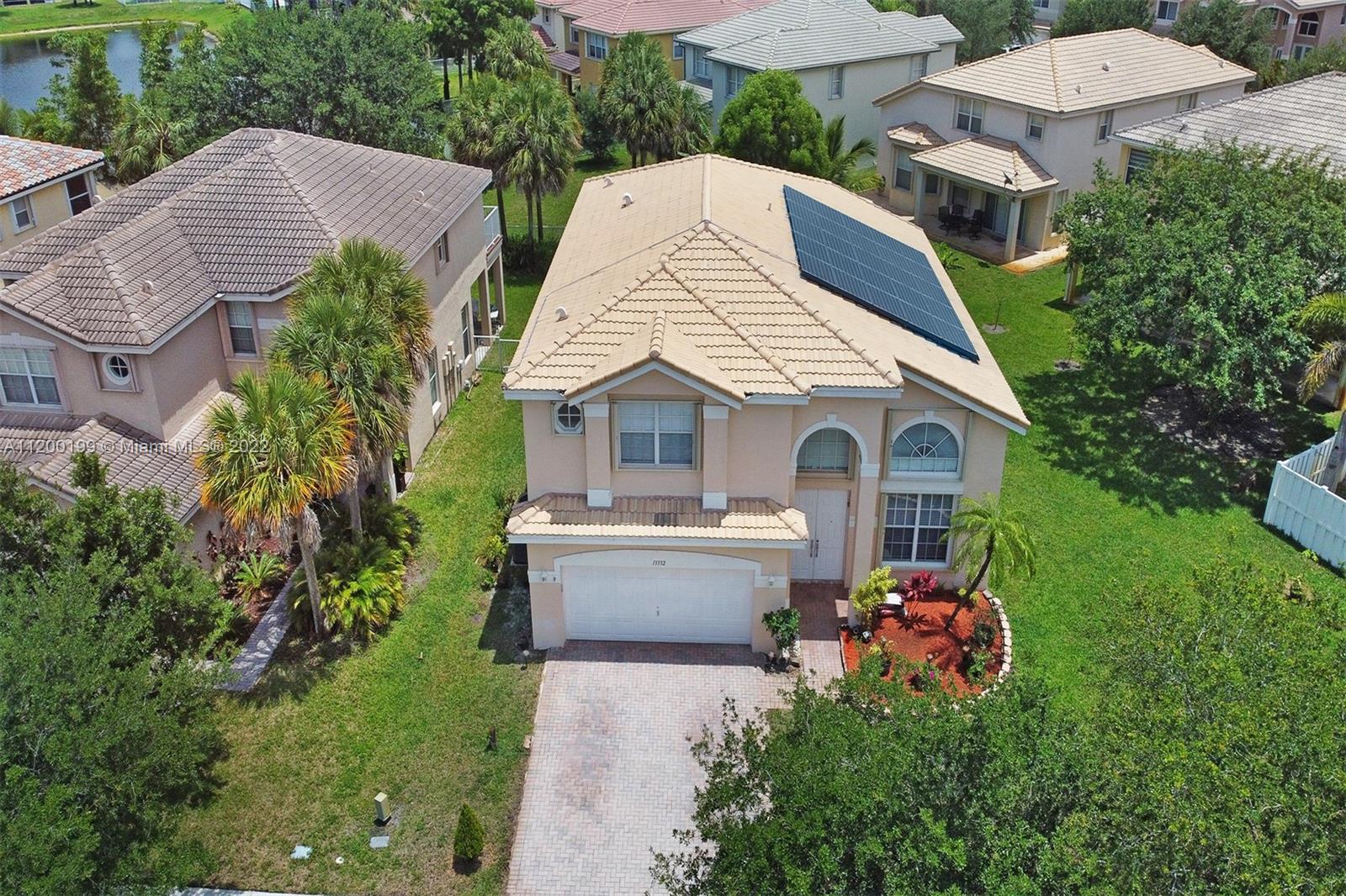 A lovely home with 4 beds, 4 baths & 2 Car Garage is now available. This home come with solar panels installed for power generations. All windows & doors have accordion shutters. 1 Bed and 1 Full Bath downstairs. Kitchen & all 4 baths have been remodeled. Granite countertop in kitchen, brand new SS & wood stairs, High Ceilings & Porcelain Floors. The kitchen have 4 years old appliances, washer & dryer as well. 2 A/C units (3 Ton each) are 7 years old. Laundry room is downstairs. The plumbing of the entire house is replaced with CPVC & also the water heater is moved to garage. Bright ventilated & big backyard. The HOA includes Xfinity internet. Clubhouse has Gym, tennis & basketball courts, playground for kids, pool & also a private room for parties.