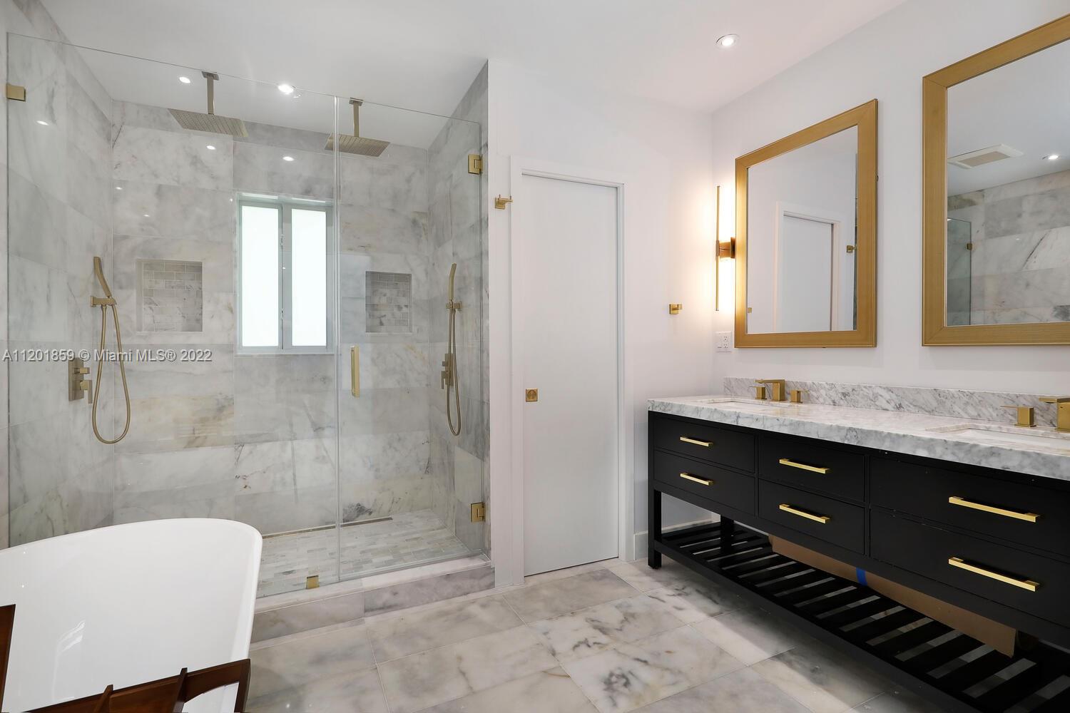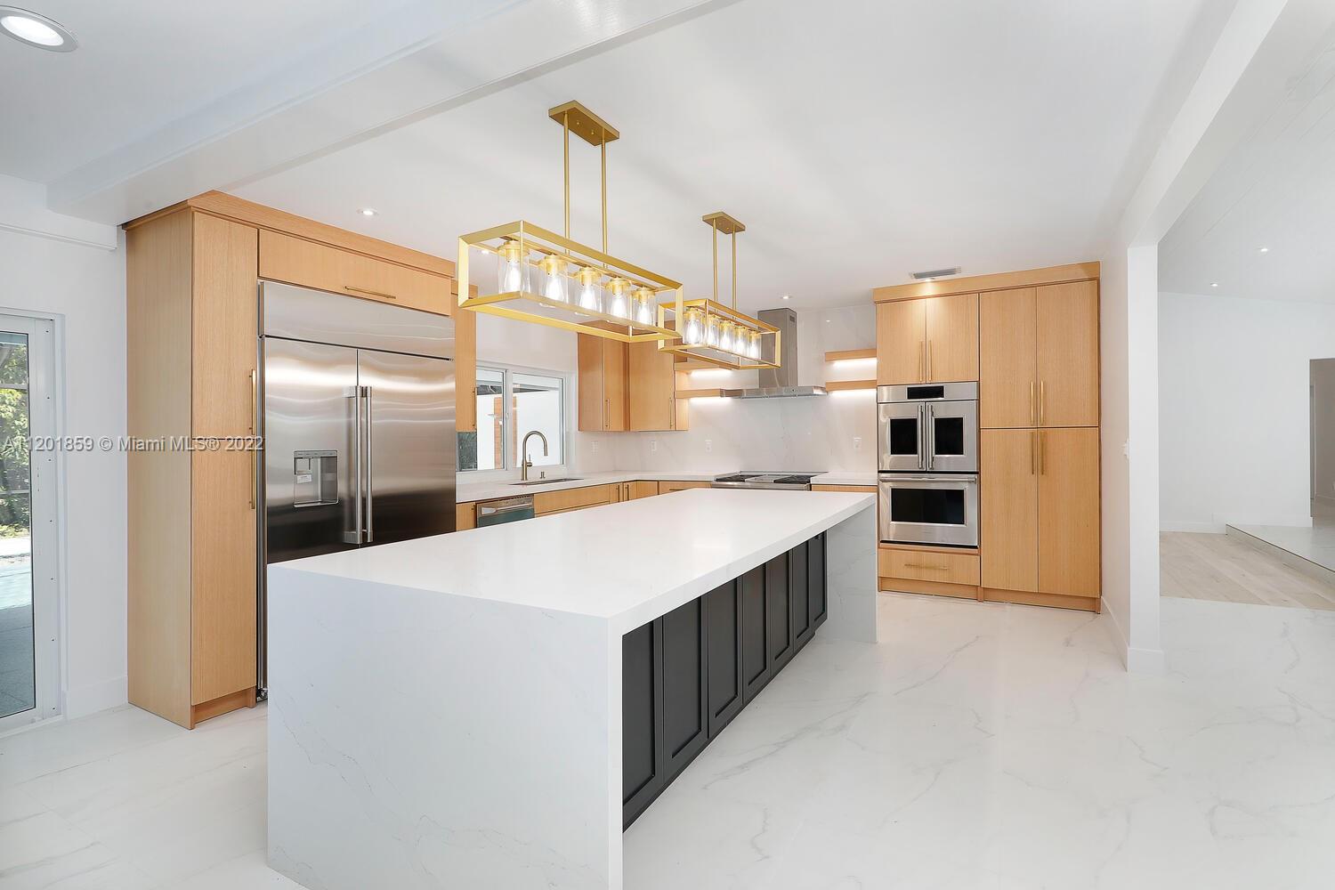 This turn-key 5/4 Pinecrest home sits on a 34,891 sqft lot. New tile roof & impact windows throughout. Features European porcelain floors, oak floors in living room, wood burning fireplace in family room & walk-in 220 bottle glass wine room in dining area of this open concept home. Oversized gourmet all Monogram kitchen boasts quartz countertops, gas range w/ griddle & oven, double French wall oven, under mount sink & drawer microwave. Primary bedroom w/ ample closets, spa bath complete w/ double shower & soaking tub. Additional four bedrooms include en-suite ideal for guests & a convertible home office w/ custom oak cabinetry. Bathrooms appointed w/ marble finishes. Outside areas w/ granite flooring including pool area ideal for entertaining. Gas powered fire feature and outdoor shower.