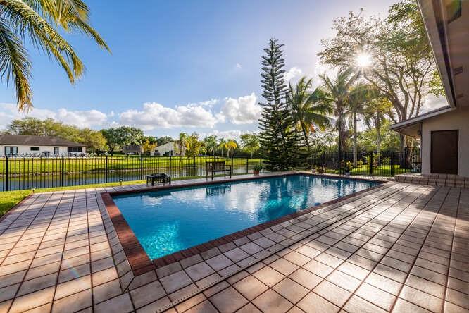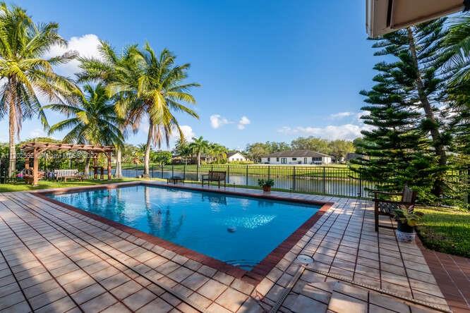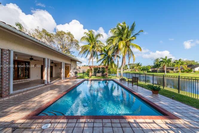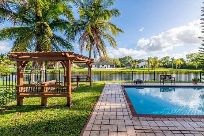 Gorgeous home located on one of the most prestigious communities in Davie “Laurel Oaks” The 4 beds, 3 baths plus den/office with 2 car garage, home sits on almost one acre, on largest cul-de-sac canals lots. This estate home features a very functional split floor plan. French doors lead outside to a beautiful entertaining area, with covered patio & bar. Living room with wet bar facing the view of the pool & waterfront yard with gazebo, through French doors. Large master suite, huge dining room & breakfast area. Family room with stone fireplace. Home is filled with charming features. Outside living offers a spacious pool newly resurfaced & new pump. 2 zone A/C and generator too. Enjoy your beautiful & tranquil property with best schools in the County, parks, open spaces, shopping & dining.