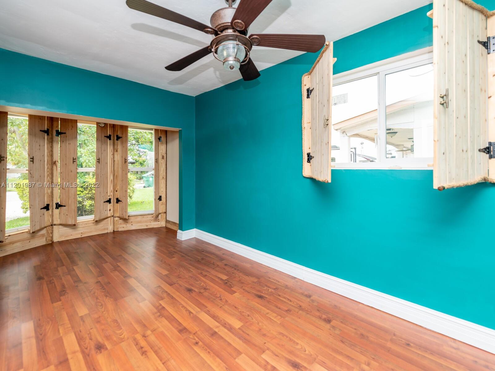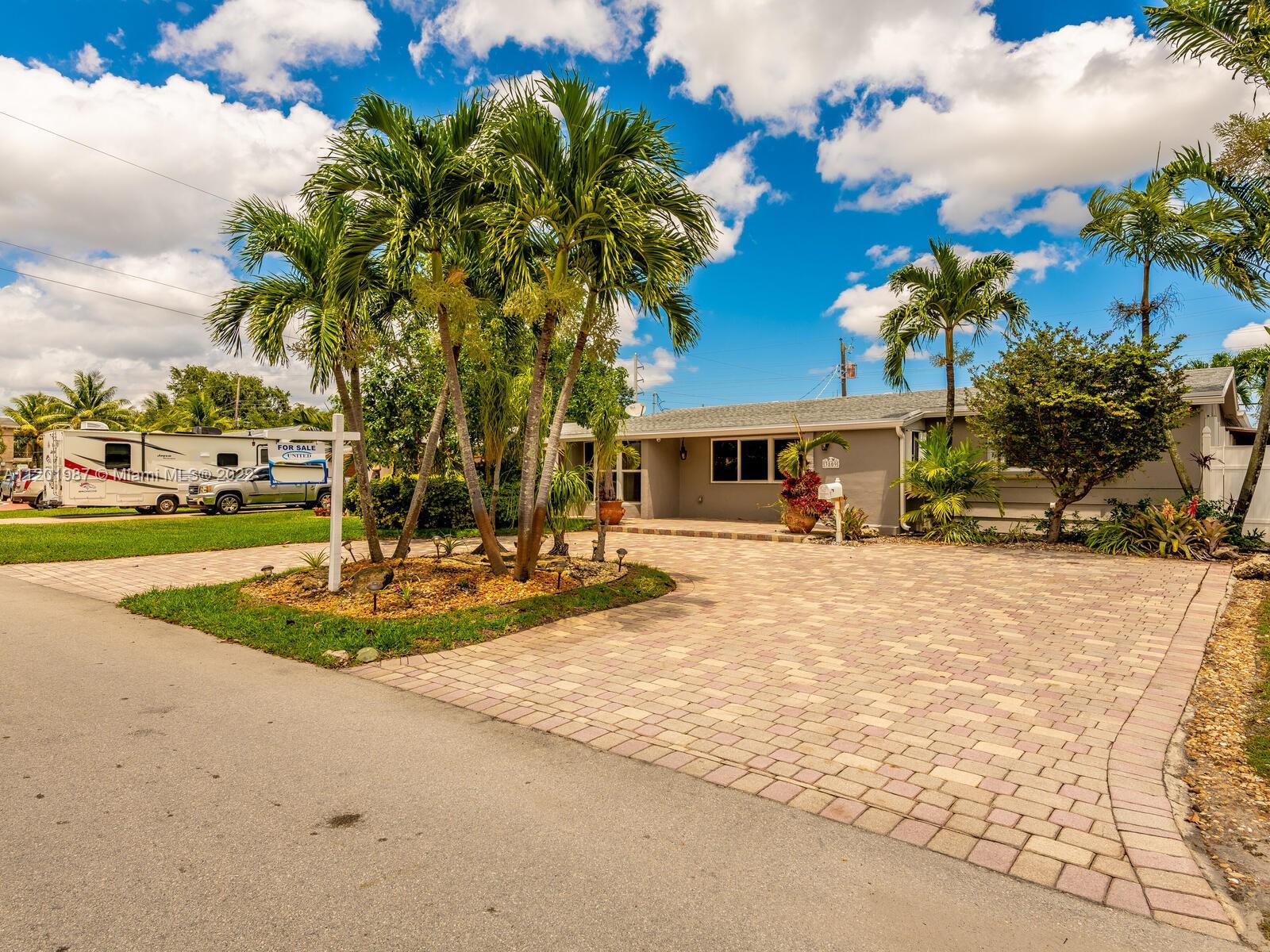 This large family home is located on the quiet street of East Shore Road in Miramar. The interior has an open concept with 4 bedrooms and 2 baths. It is a 3 way split floor plan with the master in the back of the house The kitchen has dark wood cabinets and granite countertops and opens up to the spacious family and dining room. The laundry room is enormous with lots of cabinets and counter space. The yard is completely fenced in with a pavered partially covered patio and above ground pool. There are 72 acres of state protected wetlands directly behind it which makes it very private. The front of the home has a beautiful pavered driveway with plenty of room for cars and trucks. There is No HOA