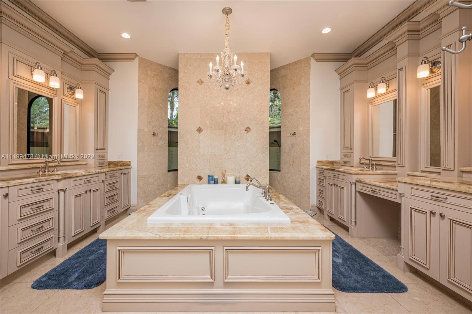 Created for the most meticulous buyer who deserves the very best, this custom built estate home sits on a 49,922 SF private waterfront lot in prestigious Windmill Ranch Estates. Your highest expectations of lux living will be met in this smart home including full IMPACT windows & doors and NEWER ROOF. Enter through the expansive circular driveway to a completely renovated 6 bedroom, 6 full bath (all en-suite baths) plus office w/ soaring 14ft ceilings! Marble flooring in all main living areas, marble working fire place, custom millwork & plantation shutters. New, professionally designed chef’s kitchen w/ custom cabinetry, subzero refrigerator, Viking appliances, marble countertops. Fabulous resort style backyard with oversized heated pool & spa, summer kitchen and guest house.