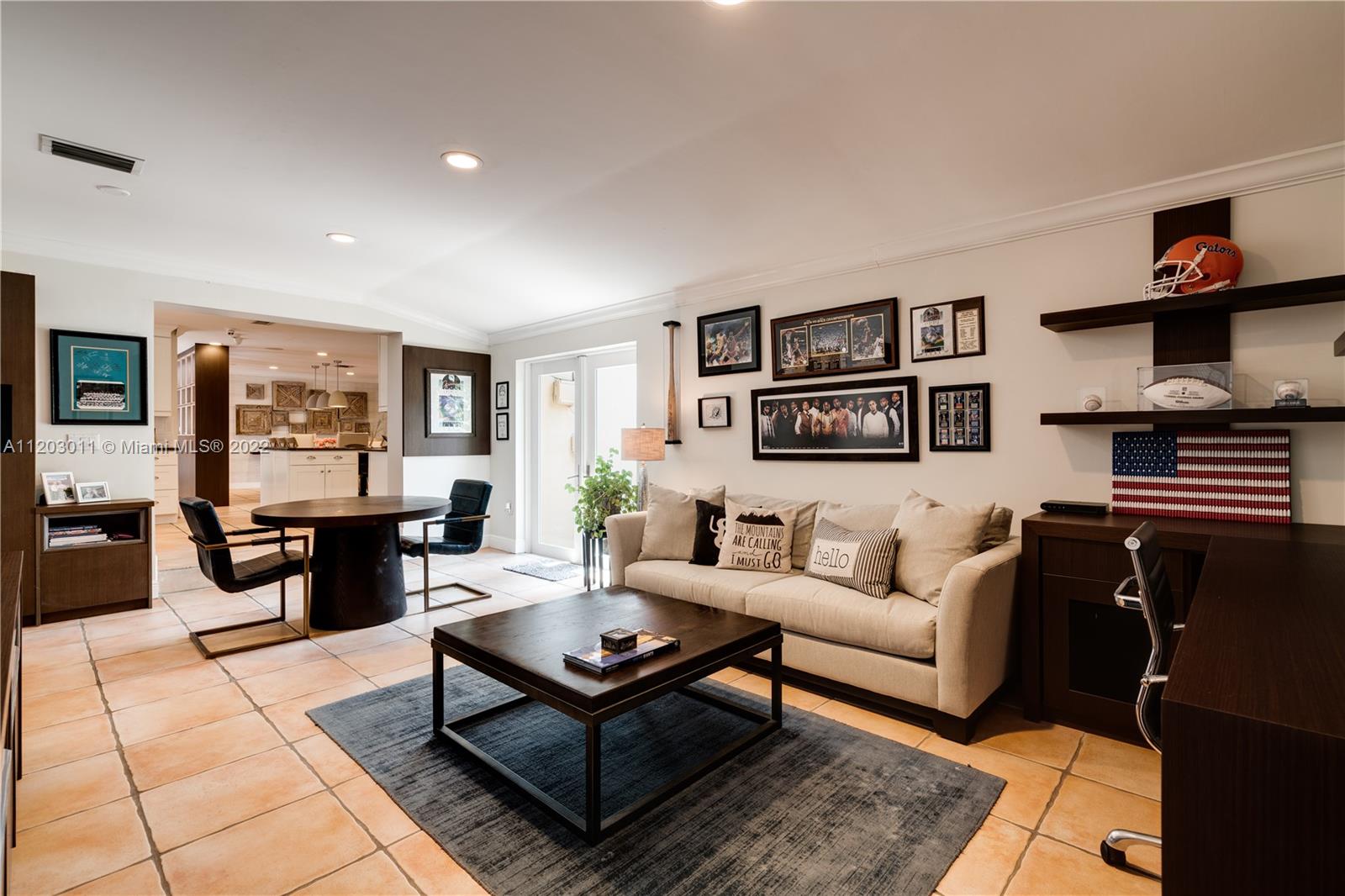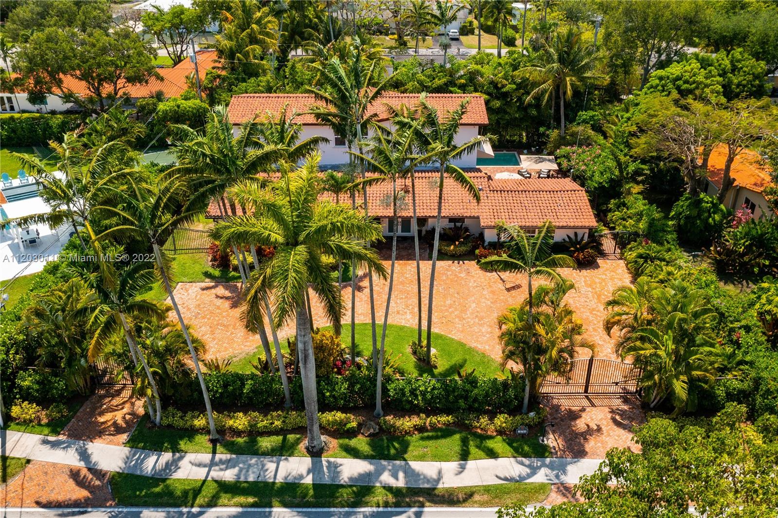 Stunningly remodeled in 2008, what a gorgeous six bedroom, two-story home this is! From the moment you step through the door, you sense the beautiful balance of elegance and space. The bright kitchen is anchored by a large island and bookended by a family room and dining room. A dramatic two-story living room, surrounded by panes of glass overlooks a lush, private pool and garden, an outdoors where all you can say is “wow.” The large primary suite includes a sitting area, spacious walk-in closet, and spa-like bath. This home has a tri-split floor plan…two bdrms upstairs, 4 bdrms downstairs split into two separate wings. 4,587 square feet under air, completely protected by impact glass. The sprawling brick driveway with double electric gates allows for ample parking. A Very Special Home.