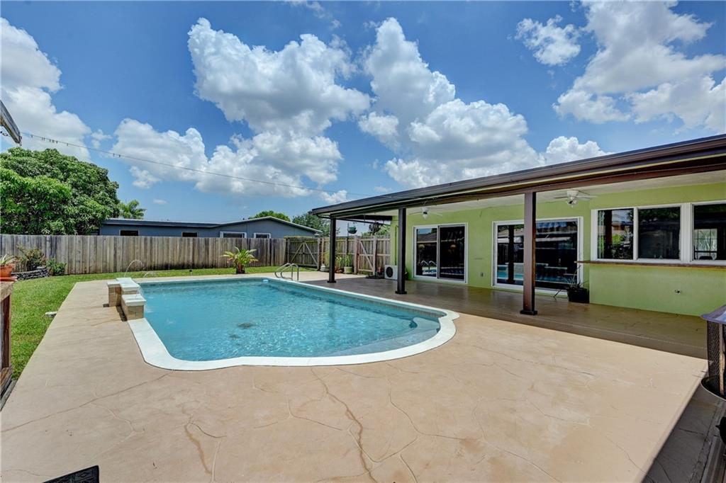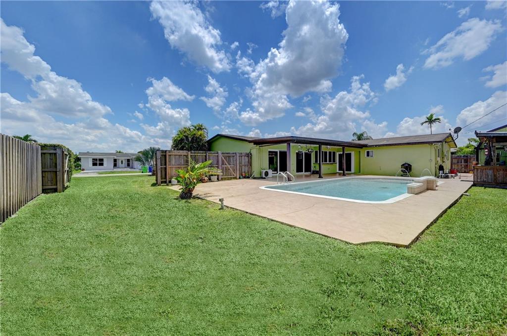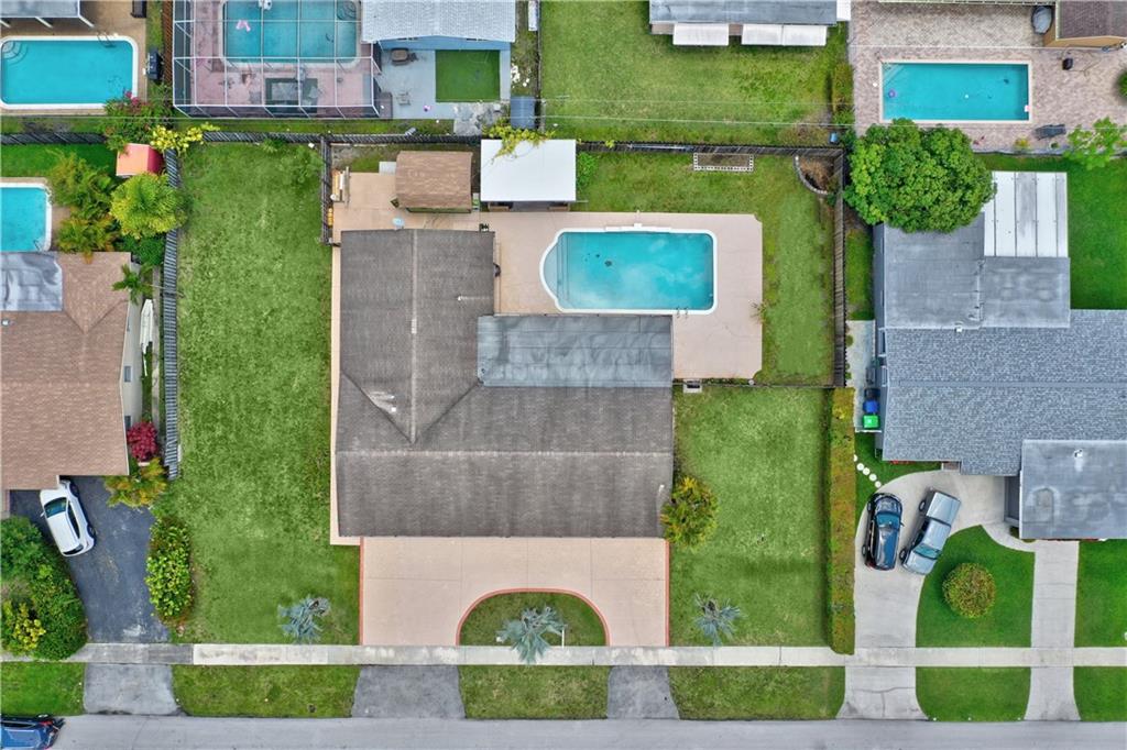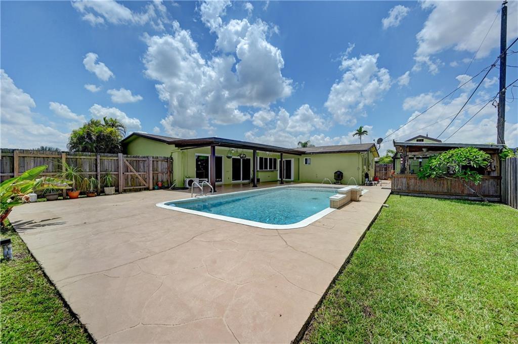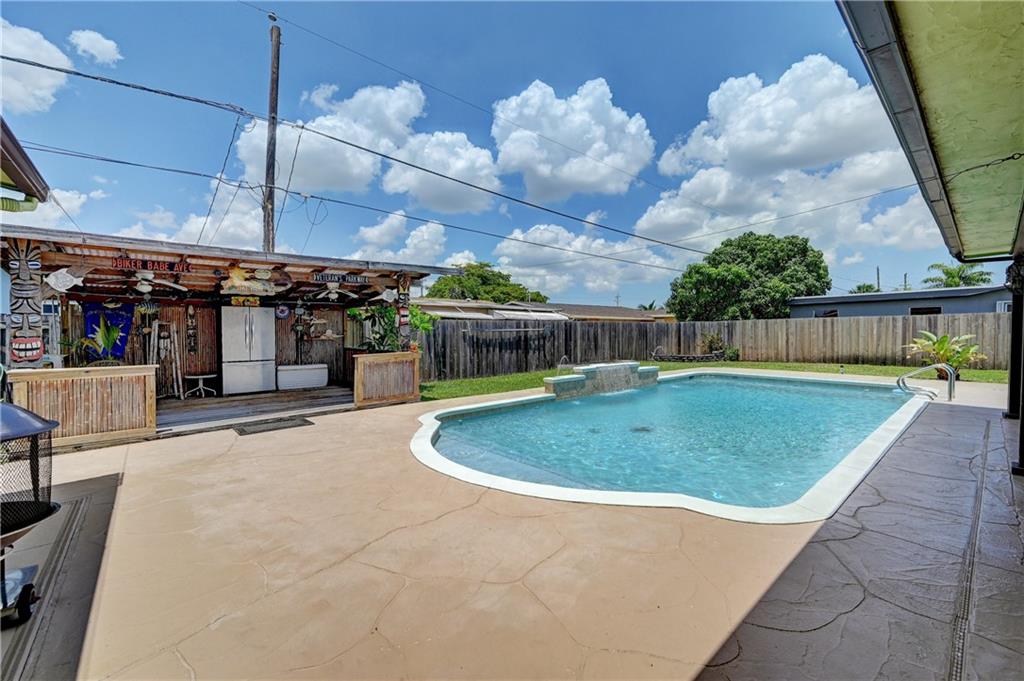 AMAZING LOCATION NEAR EVERYTHING!!! GORGEOUS 4/2 w/ HUUGE YARD & GREAT SIZE POOL. BEAUTIFUL OAK WOOD KITCHEN CUPBOARDS AND PANTRY W/SLIDEOUT SHELVES AND ENORMOUS AMOUNT OF STORAGE SPACE WITH BIG WINDOW FACING POOL. ALL NEW IMPACT WINDOWS AND DOORS THROUGHOUT, 2 CAR GARAGE WITH SIDE DOOR ENTRY AND LAUNDRY CORNER ROOM (W/D INCLUDED), FENCED IN YARD ALL AROUND, HUGE TIKI BAR/HUT W/REFRIGERATOR, AMAZING...12x10 (HIGH CEILING) LOFT STYLE SHED TO MATCH THE HOUSE w/WALL A/C, WORKBENCH, ELECTRIC OUTLETS THROUGHOUT AND EXHAUST FAN. (MAN CAVE/WOMAN CAVE/KID CAVE/STORAGE). SPLIT PLAN w/ GREAT SIZE MASTER: HIS & HERS CLOSET AND EXTRA STORAGE, NICE BATHROOM AND SLIDE DOOR TO POOL. HOME HAS DINING, LIVING AND FAMILY ROOM. PROPERTY BUILT ON TWO LOTS!!!BRAND NEW AIR CONDITIONER!!