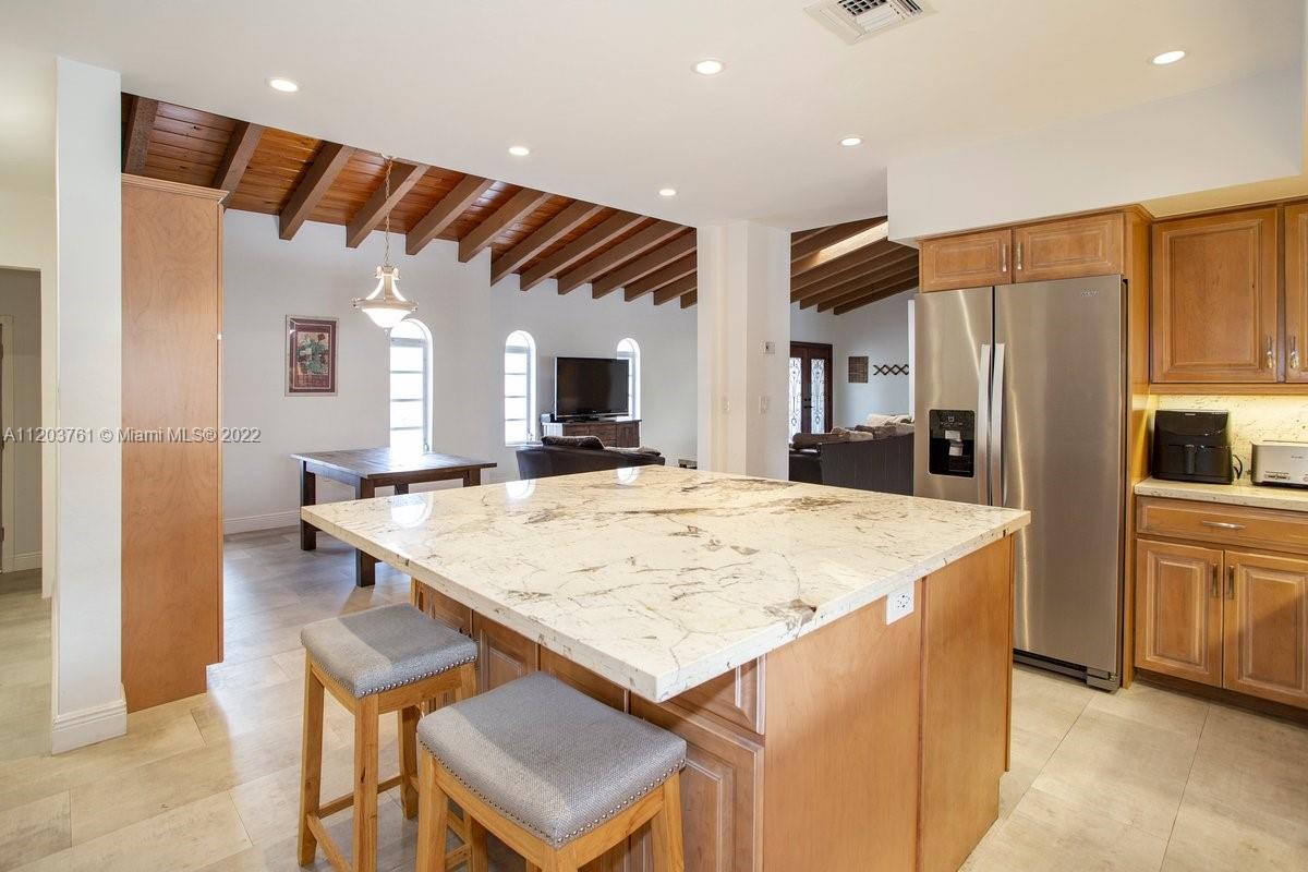 Want to live in a boaters Paradise? Here is a great opportunity to buy a beautiful renovated 4/3 in gated Kings Bay. This Coral Gables community has an exclusive boat ramp just for the homeowners. Love the vaulted ceilings and new tile floors. Wander into the open plan Chefs kitchen That boast a gas stove and new granite countertops. Master en suite is its own wing with extreme high ceilings and tons of Natural light with the accent windows surrounding the ceiling. Pipes have been updated and replaced. The outside screened pool area has its own summer kitchen with lots of porch space for entertaining. Love that it is not in a flood zone. Easy to show-will not last!