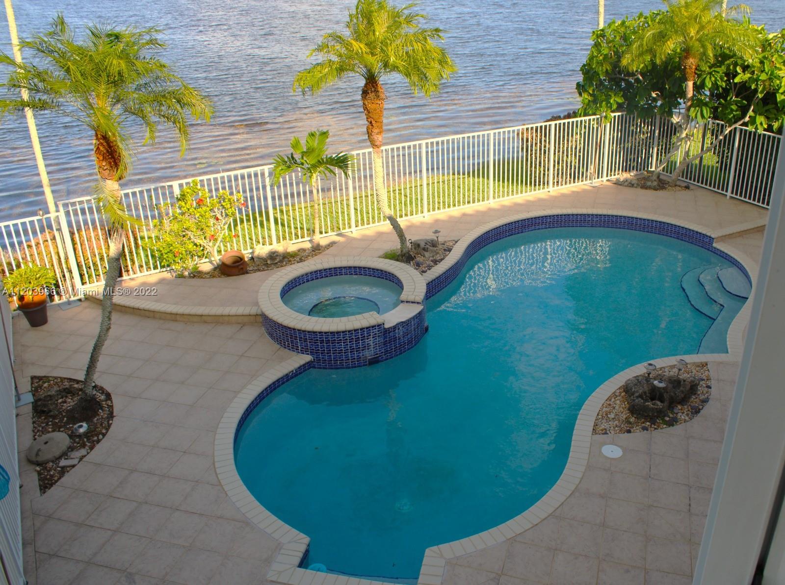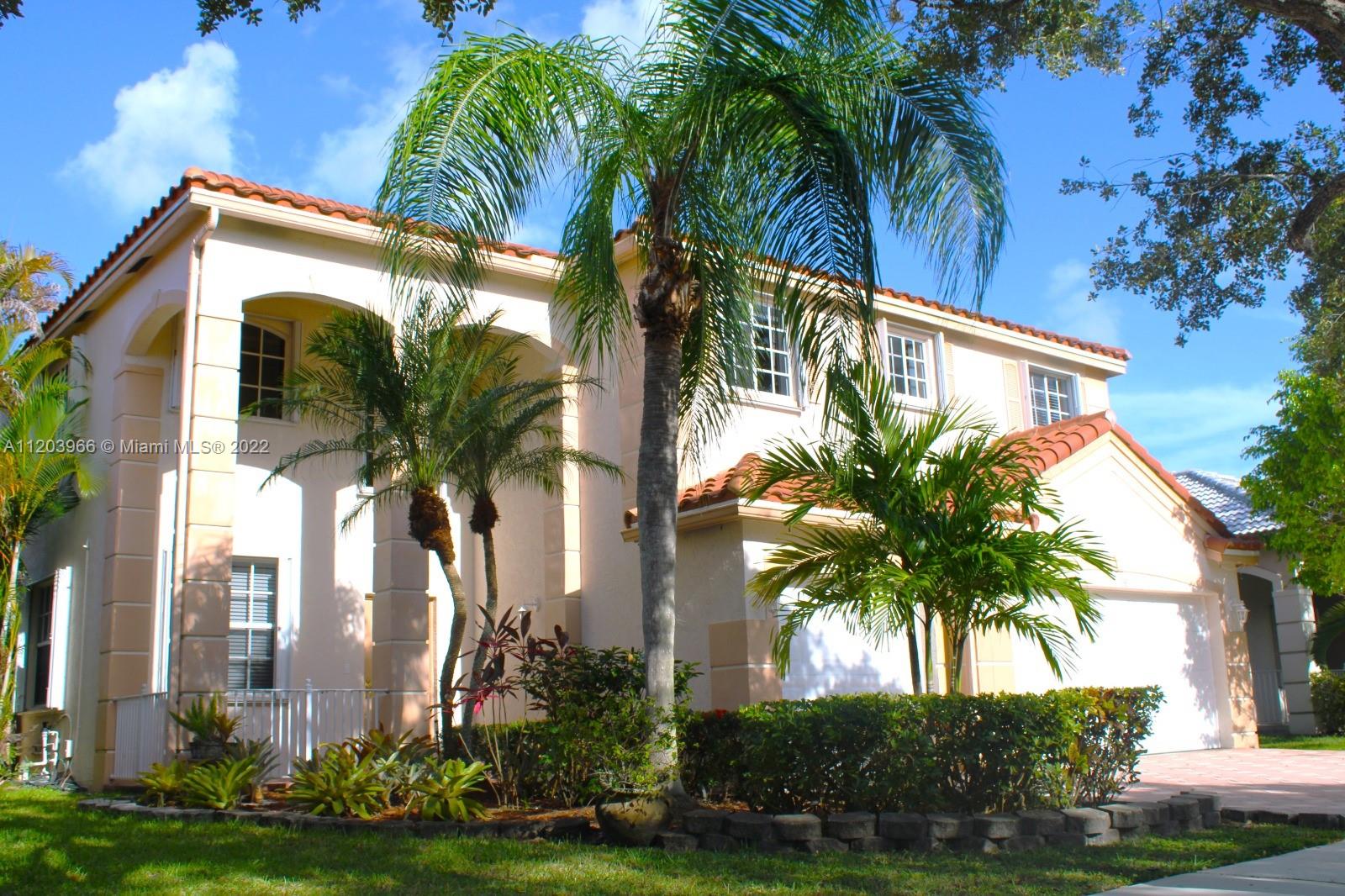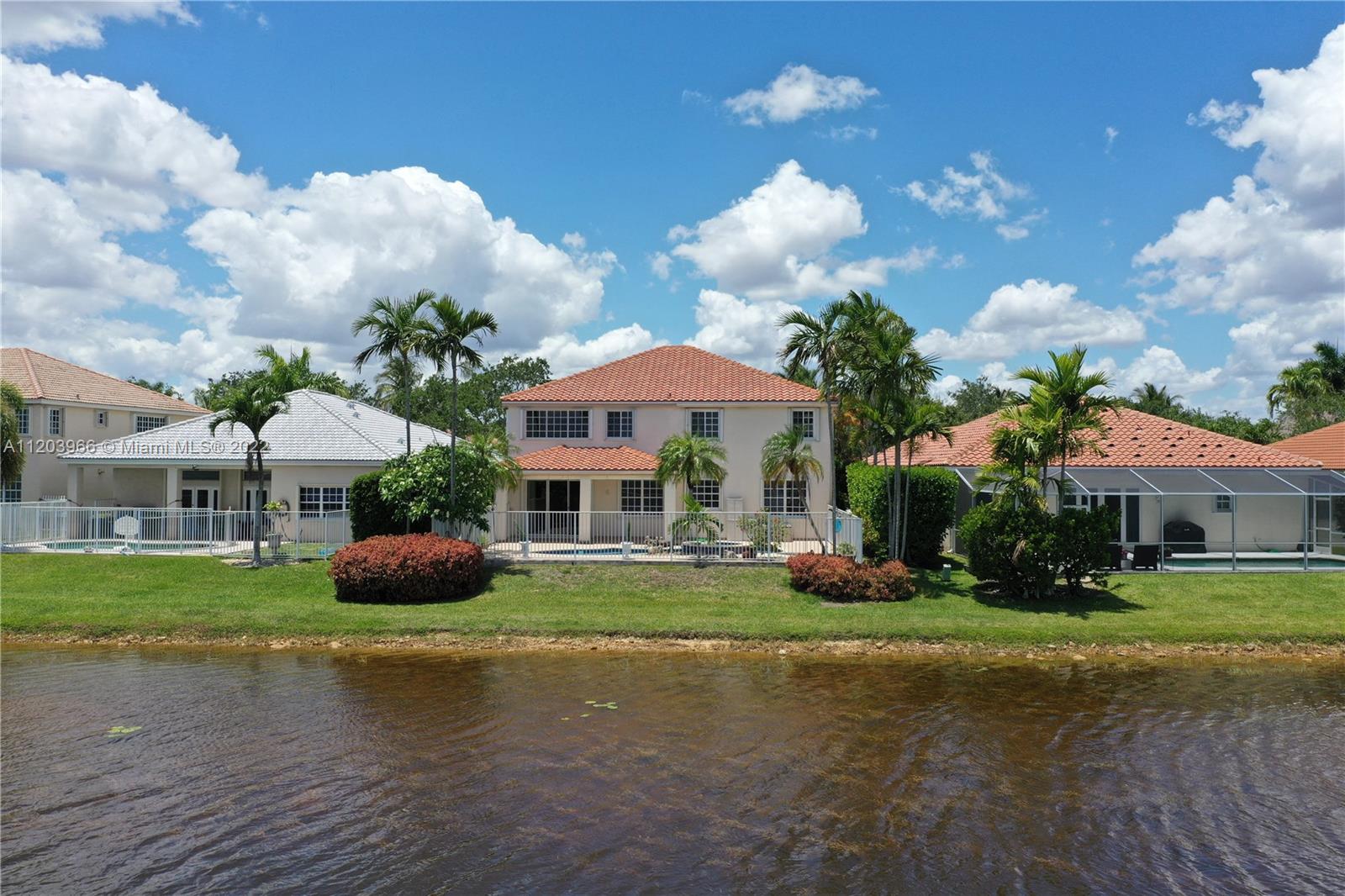PRICE REDUCED! This spectacular home is found in the well sought-after neighborhood of The Meadows in Weston. This beautiful lake-front home has 5 bds + den, 3 ba, and 3-cg. Take in stunning views from the fenced-in brick patio while enjoying the heated pool and spa with waterfall feature. You’ll find gorgeous bamboo hardwood floors on the second floor and tile throughout the first floor. The bathrooms have granite countertops with seamless showers. The kitchen was just upgraded with brand new white cabinets, granite countertops, and stainless-steel appliances. Move-in ready. Roof-2018; A/C-2015. Located close to restaurants, shops, parks, and A+ schools. HOA includes manned gate for entrance, community swimming pool with adjoining clubhouse, children’s playground, and basketball court.