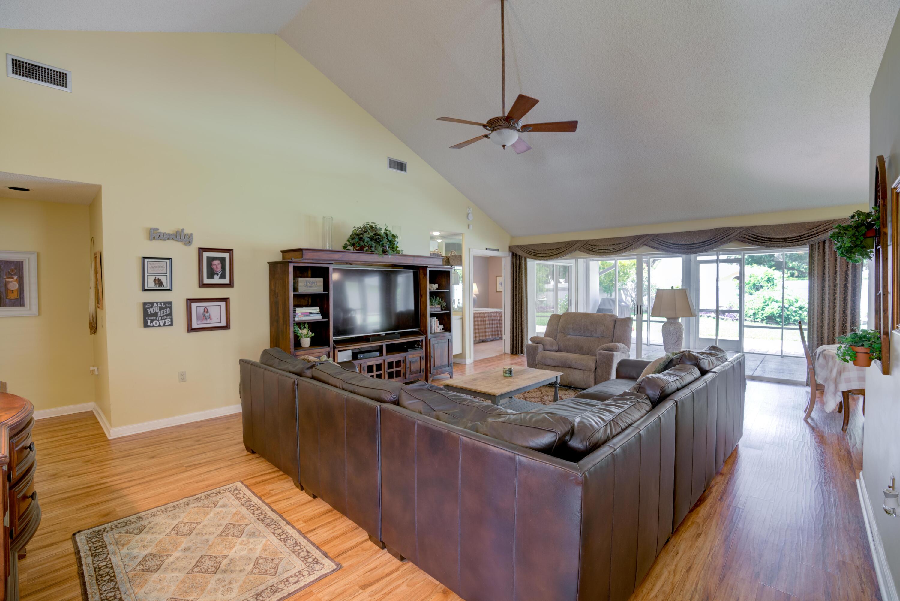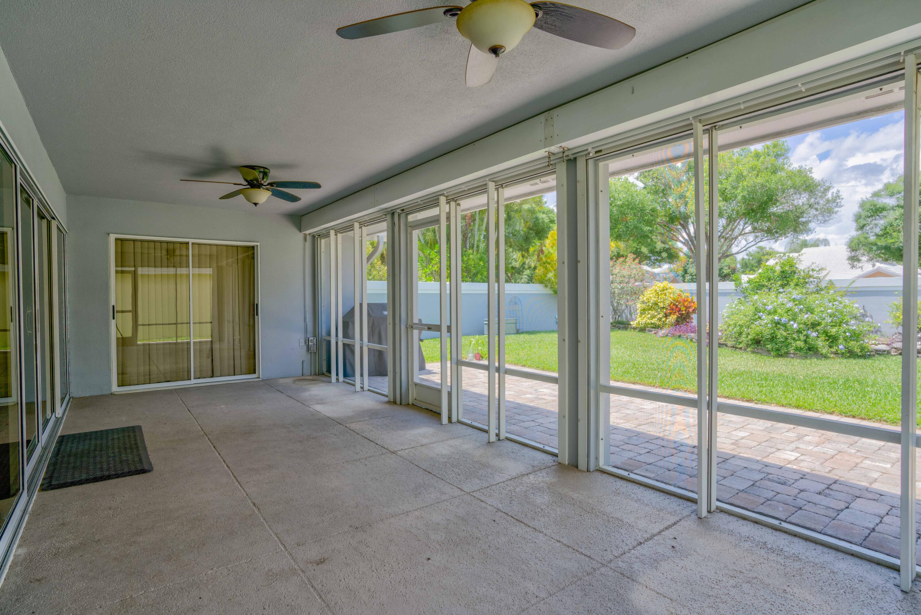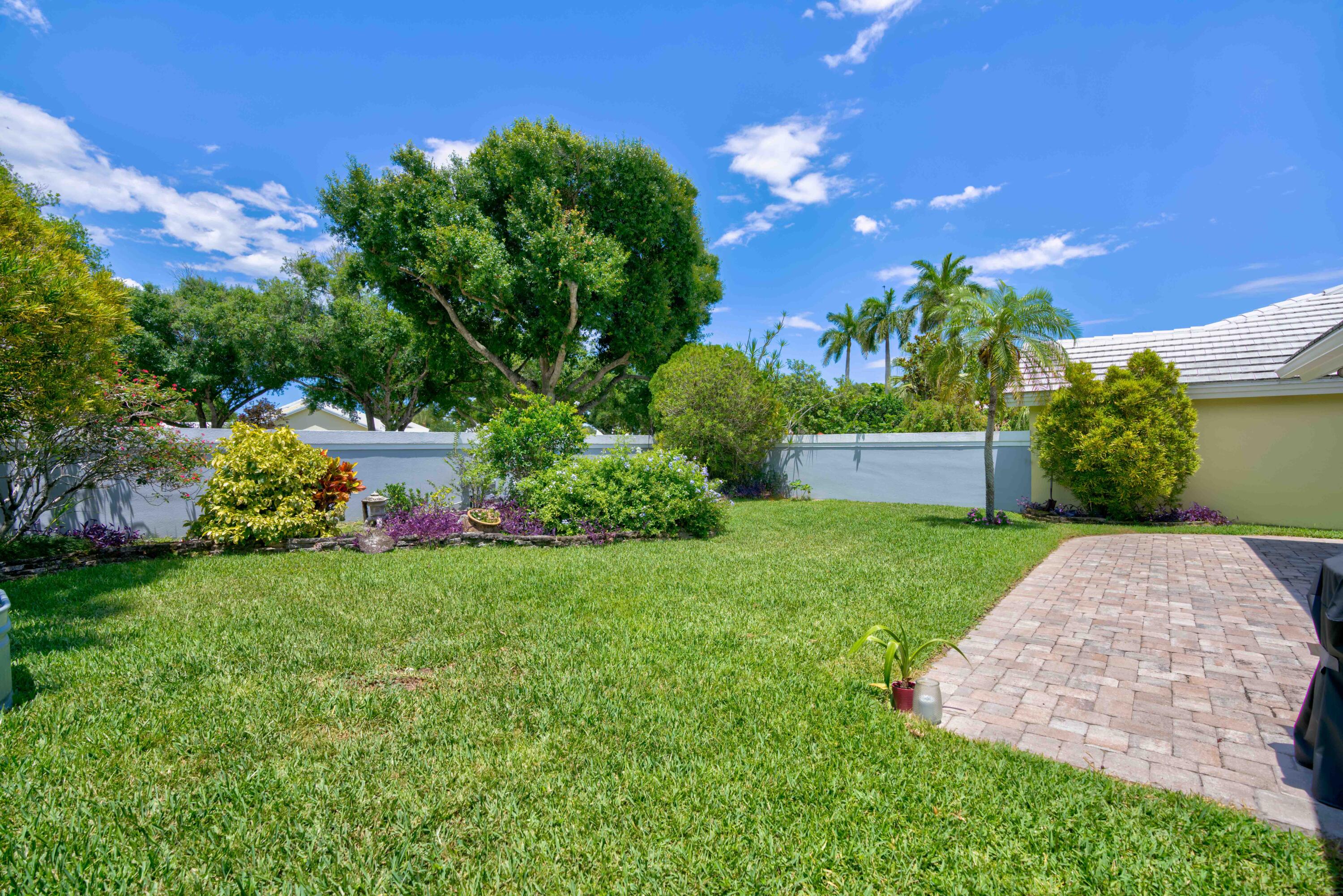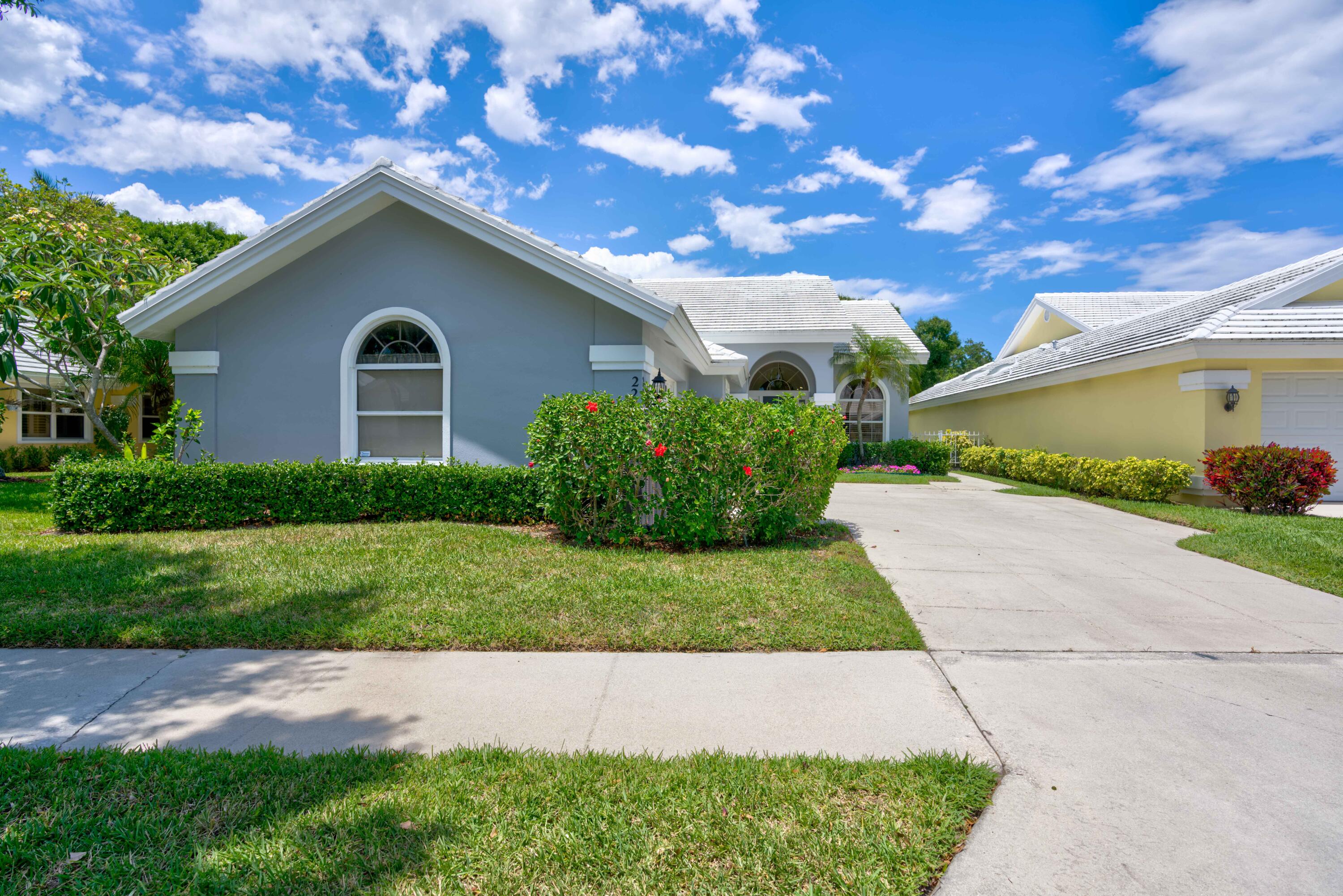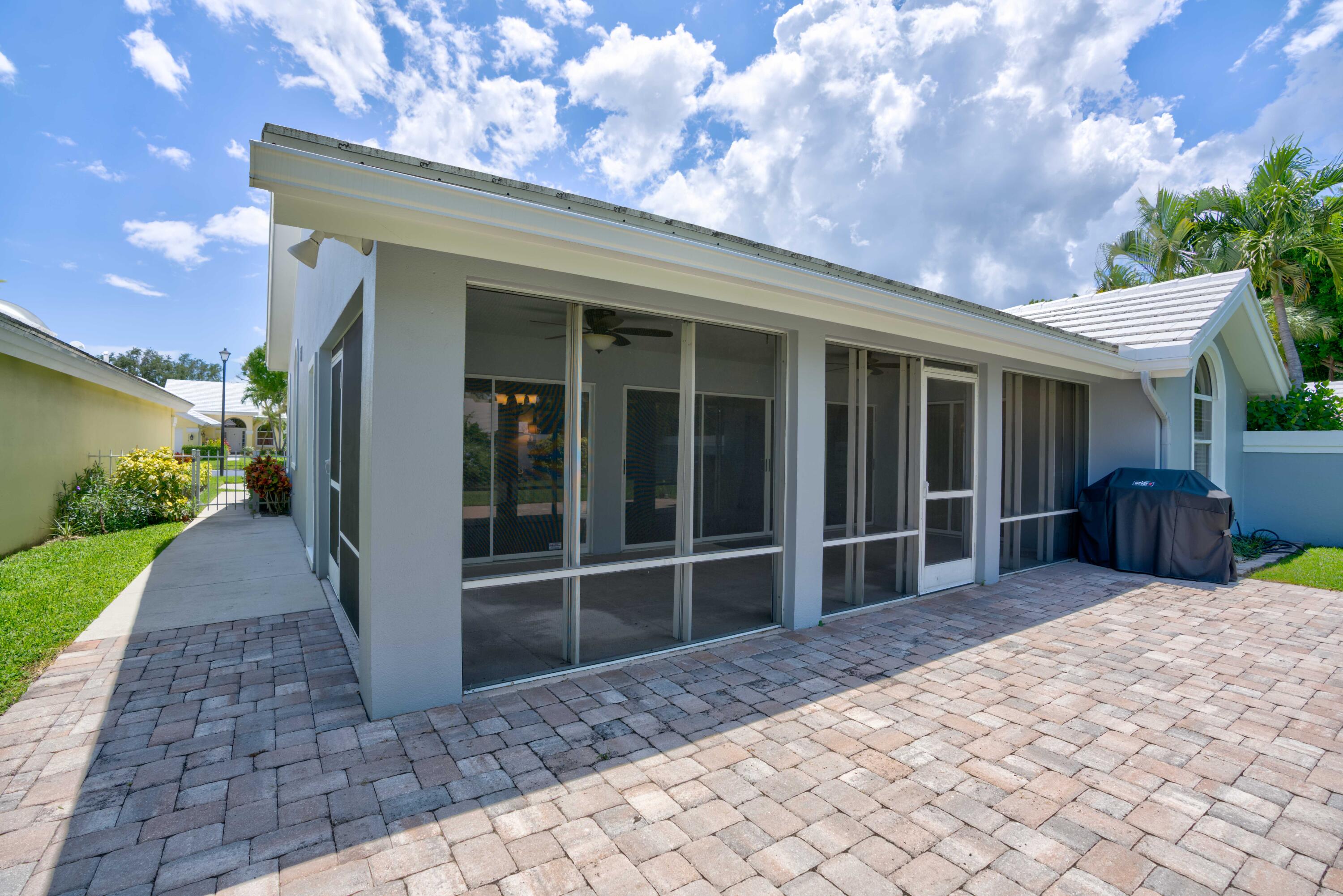 Secluded location off a quiet cul-de-sac in gated community. 26x11 lanai faces north to x-large yard & privacy wall.Updated kitchen & both baths. A/C 5 ton,recently installed. Mostly w/vaulted ceilings, , 2 car garage w/16' wide door, folding staircase to attic. Maintenance fees also include high speed internet/ cable, use of (3 parks & pools, racquet ball, pickle courts, tennis, & fitness trail. Landscaping front & side of homes, common areas & more. Bear Lakes Country Club w/2 18-hole championship golf courses designed by Jack Nicklaus. Social & golf memberships available. Minutes to PBIA/I-95, discount mall, Whole Foods & restaurants. Beaches approximately 20 minutes away.