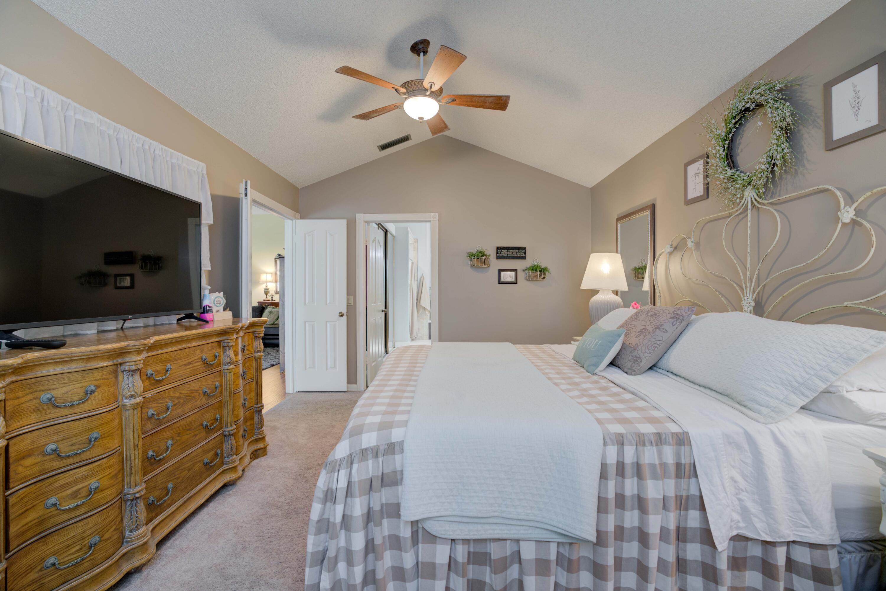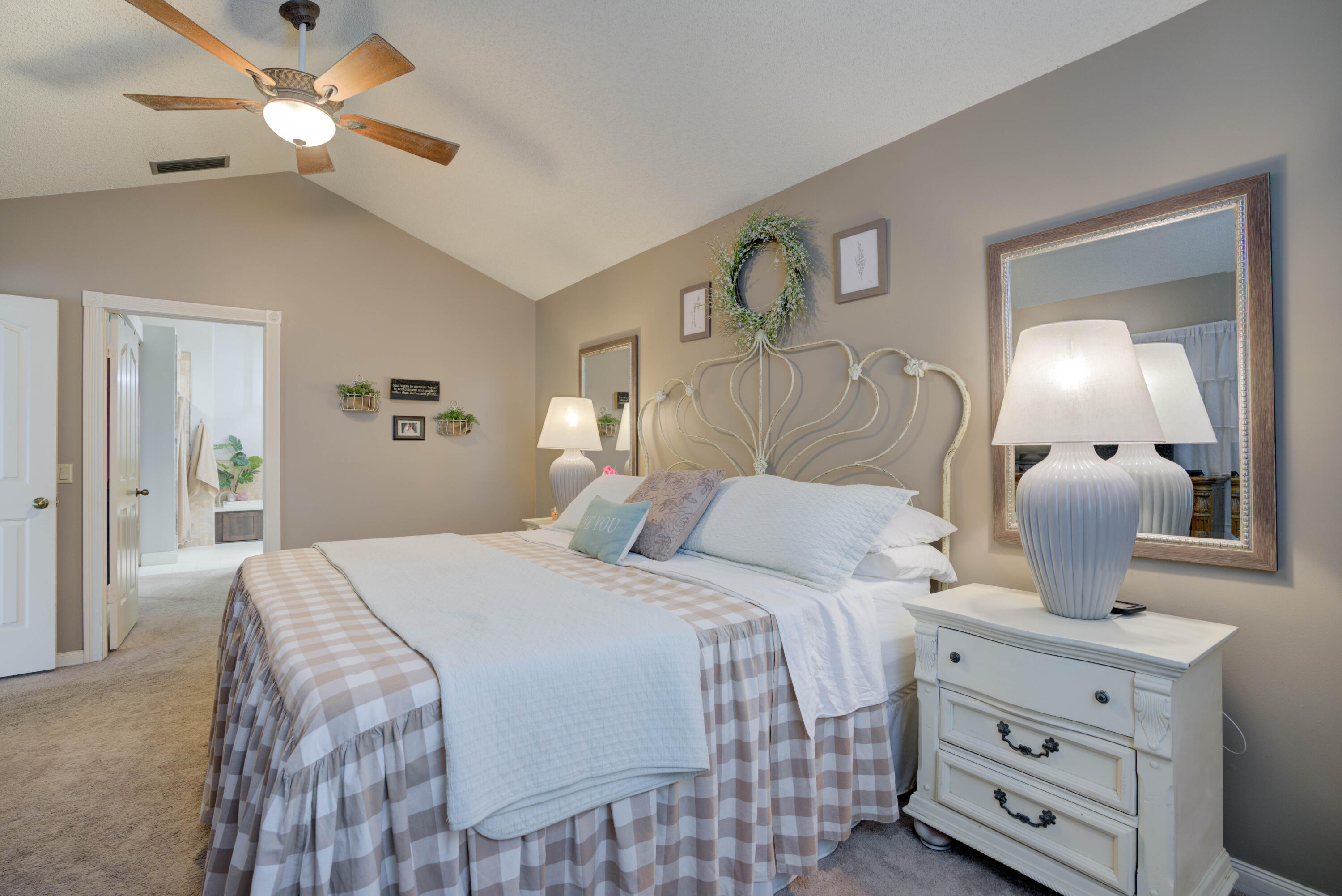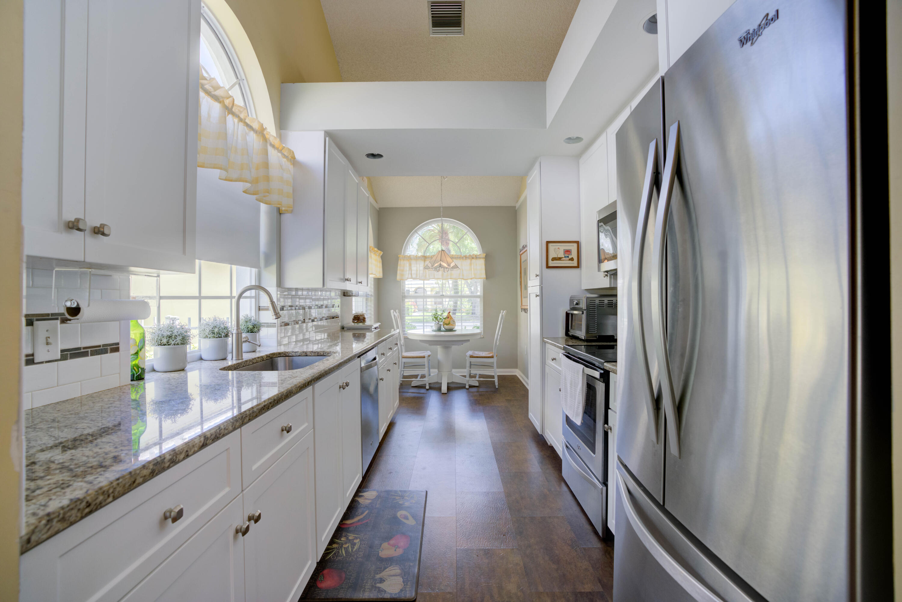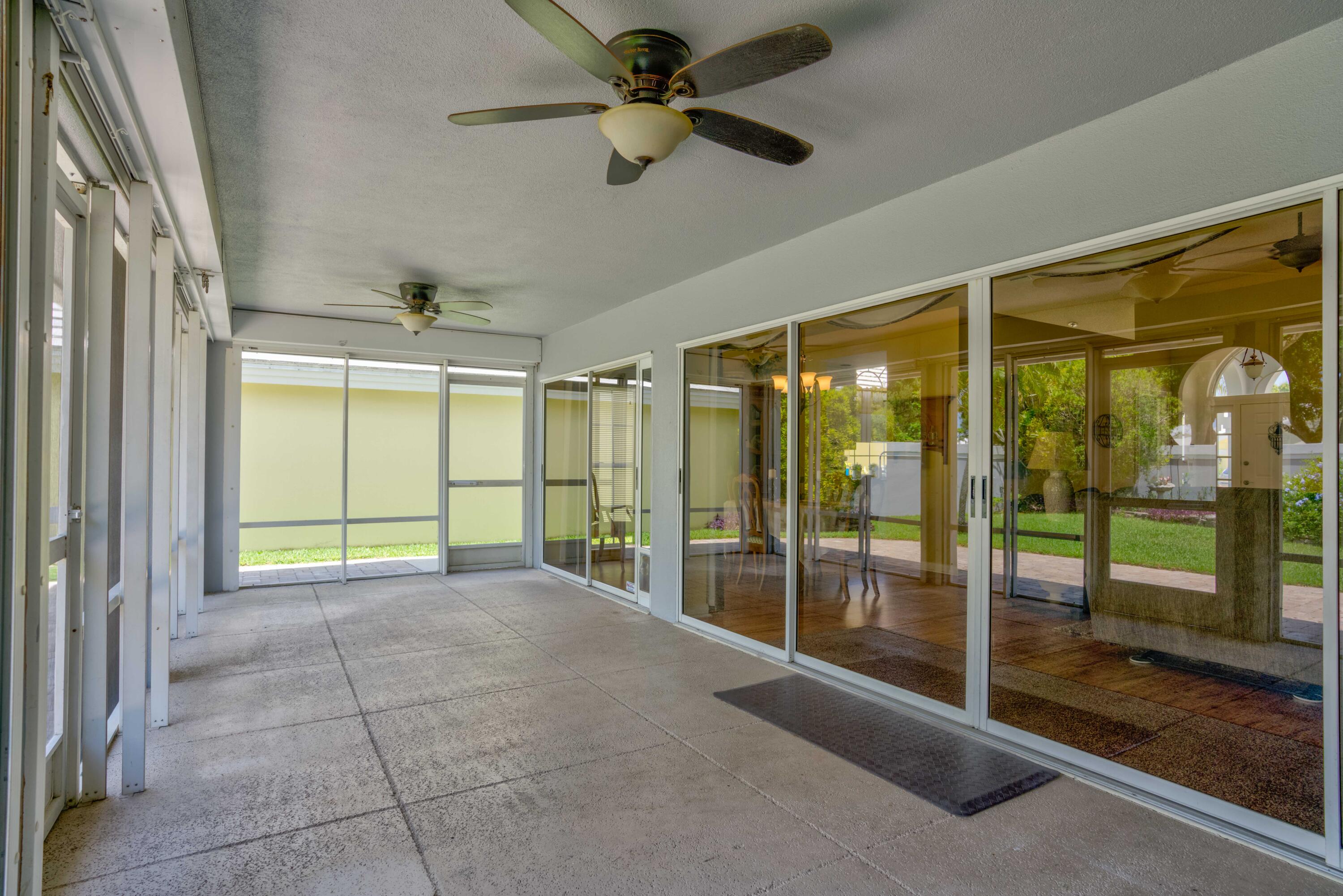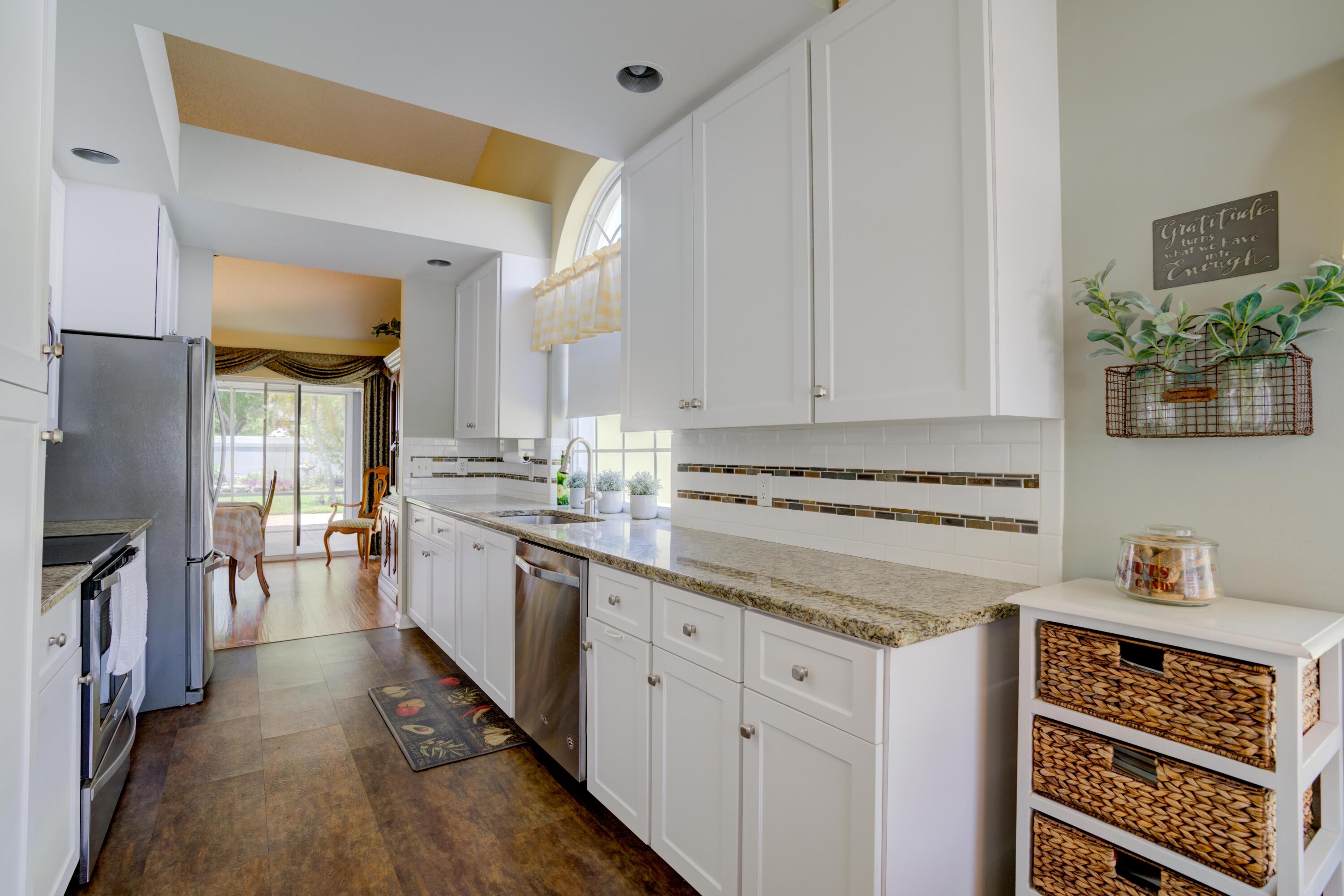 Secluded location off a quiet cul-de-sac in gated community. 26x11 lanai faces north to x-large yard & privacy wall.Updated kitchen & both baths. A/C 5 ton,recently installed. Mostly w/vaulted ceilings, , 2 car garage w/16' wide door, folding staircase to attic. Maintenance fees also include high speed internet/ cable, use of (3 parks & pools, racquet ball, pickle courts, tennis, & fitness trail. Landscaping front & side of homes, common areas & more. Bear Lakes Country Club w/2 18-hole championship golf courses designed by Jack Nicklaus. Social & golf memberships available. Minutes to PBIA/I-95, discount mall, Whole Foods & restaurants. Beaches approximately 20 minutes away.