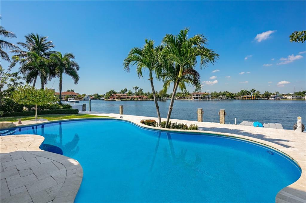 Timeless Mediterranean style home in the coveted & gated Sunrise Intracoastal neighborhood! Situated on the Middle River, this beautiful estate has wide open water views. Luxurious finishes & features throughout including coffered ceilings, eat-in kitchen w/high end appliances & breakfast nook open to the family room, Sonos sound system, elevator, theater, generous en-suite guest rooms & generator. Expansive primary suite includes water views, sitting area, bath w/dual sinks & water closets, soaking tub, rainfall shower w/jets & vast covered balcony w/hot tub. Resort style backyard w/expansive lawn, pool & summer kitchen. Large covered veranda to enjoy the views, sunsets & sunny breezy weather. 105' of water frontage w/mega yacht dockage, including docking your 70' Yacht Stern-in!