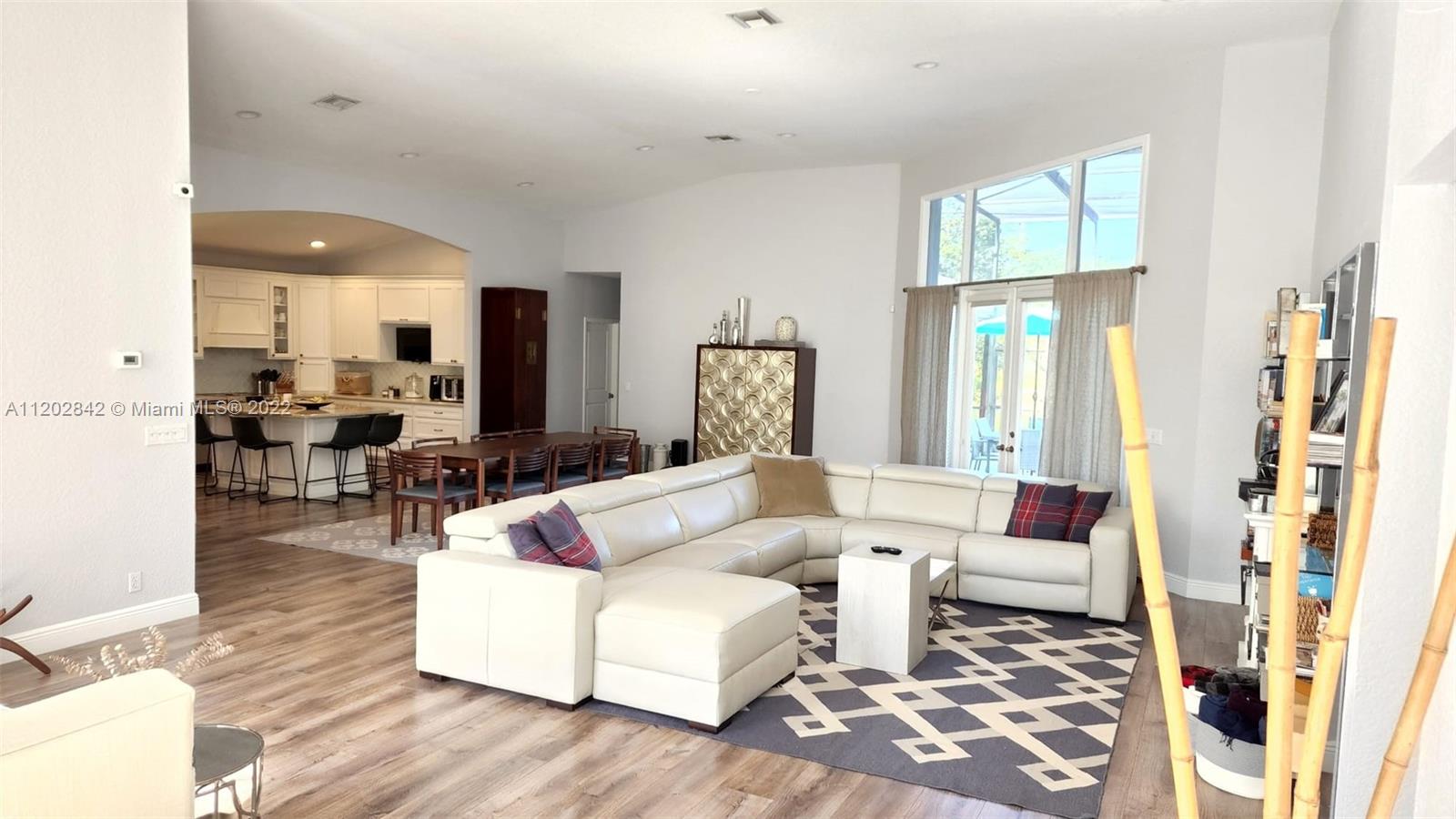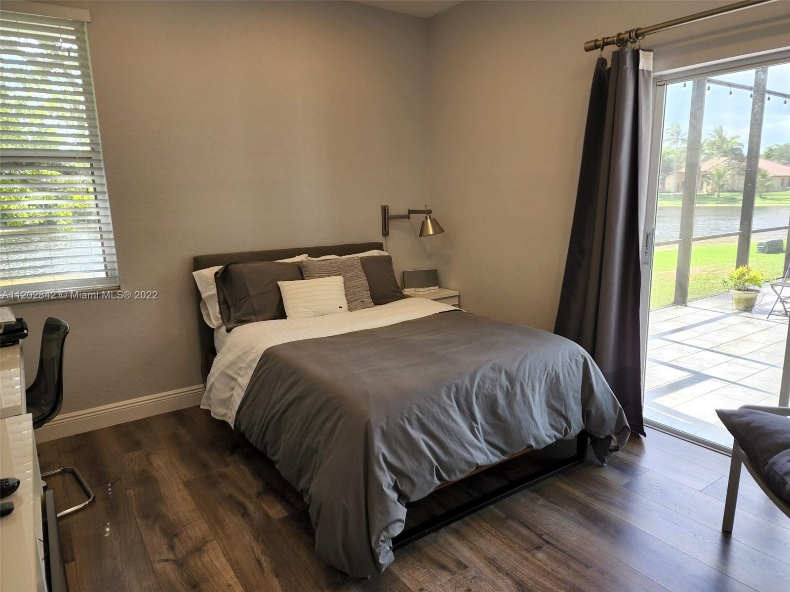 Enjoy breathtaking sunset views from this beautiful lakefront property in prestigious Weston Hills. This single story home offers spacious open floor with high ceilings and enchanting lake views that can be enjoyed year round in the huge screened patio. White beautiful Martha Stewart Living integrated kitchen with stainless steel appliances and granite counters. Laminated wood floor throughout, this house offers a comfortable updated style in its 4 bedrooms, 3 and a half bathrooms. Master bedroom counts with French doors access to the patio and its own A/C. New 2020 roof and sprinkler system. Located in a safe city that offers top-rated schools, easy access to main highways, Cleveland Clinic, fine dining and flowing waterways, plus miles of bike lanes, and extensive landscaping.