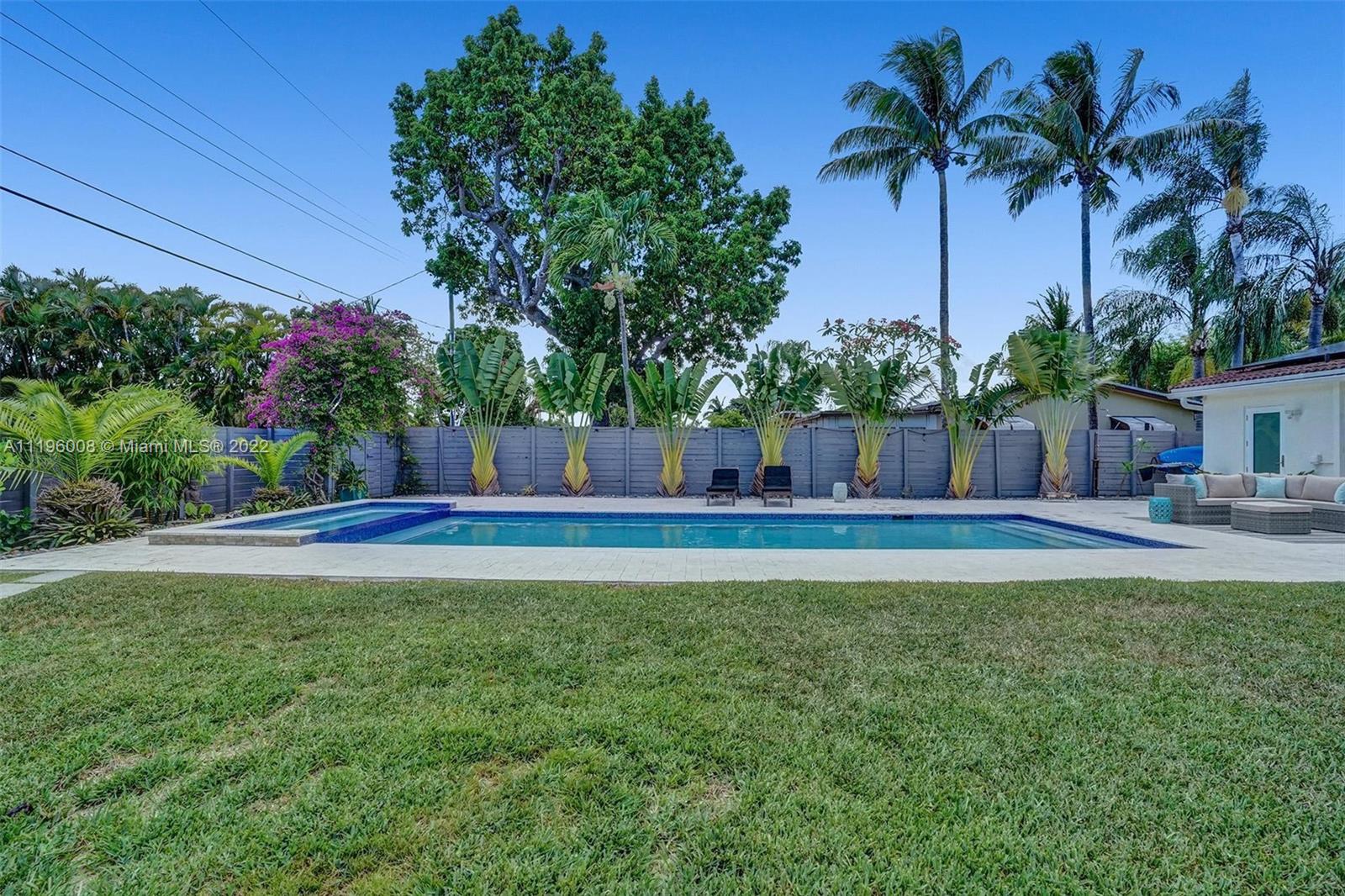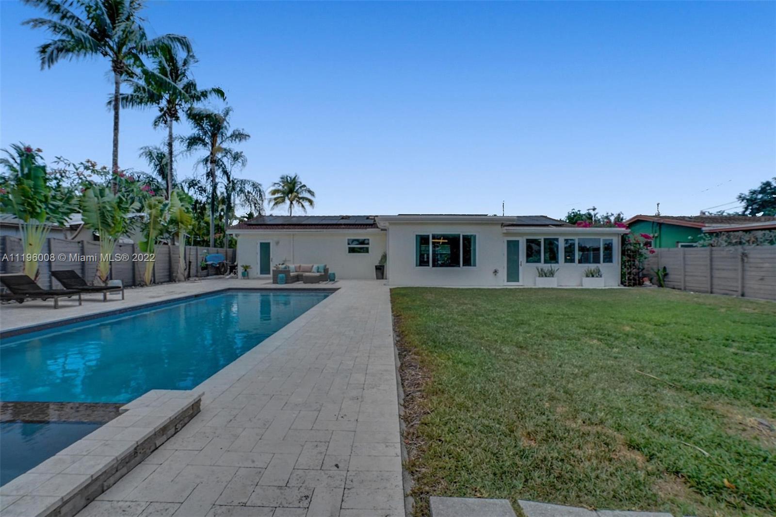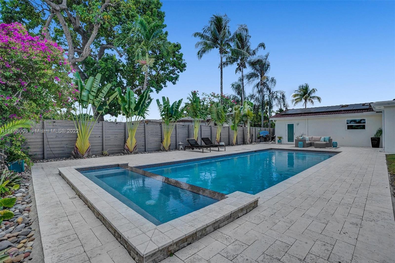 Live in desirable Hollywood Hills! This 3 bed, 2bath “Move-in Ready” home is on a huge 9,375SF Lot with a private lushly landscaped backyard and oversized modern pool with built-in jacuzzi that comfortably seats six. Spacious & bright, the home has a split floor plan, impact windows & doors, a sunroom overlooking the backyard, 13 camera security system, 1 car garage, canopy car cover, updated kitchen & baths, and 39 solar panels that power the entire house & car. Kitchen has an eat-in breakfast area & pantry. The 5-ton Trane AC, tankless gas hot water heater, Samsung washer/dryer, nest thermostat & gutters are all under approx. 5 yrs. Walk to rated Hollywood Hills Elementary school, parks & shops. Short distance to major expressways, Ft. Lauderdale Airport, Downtown Hollywood & the beach.