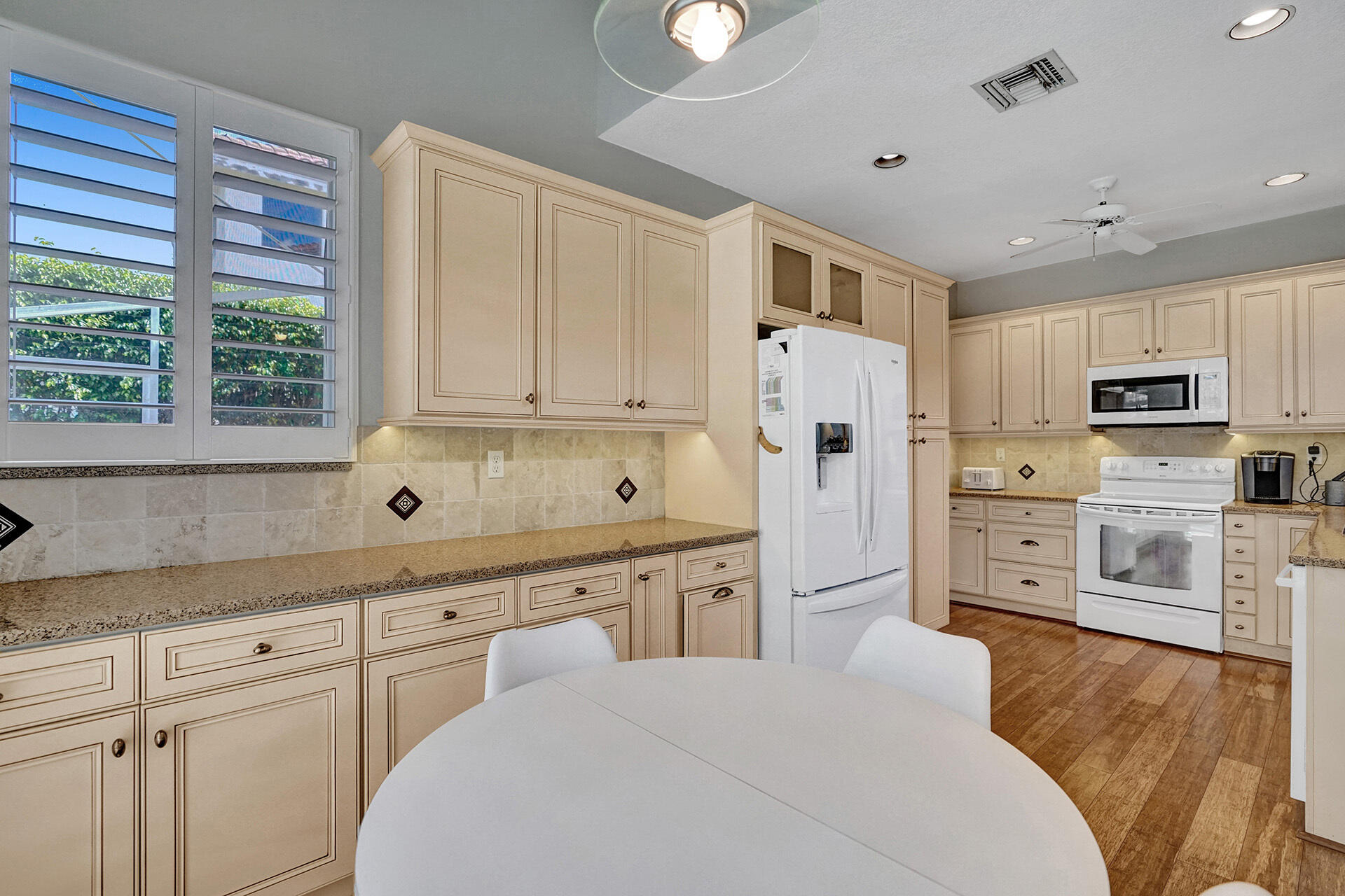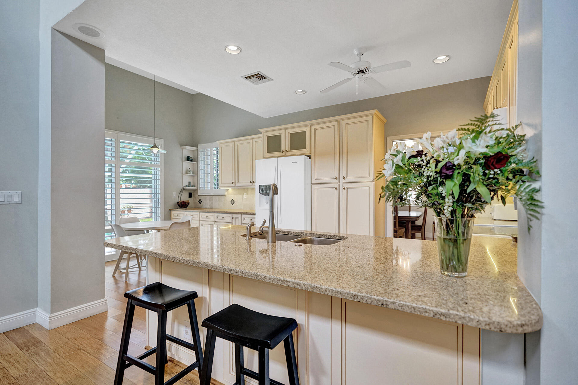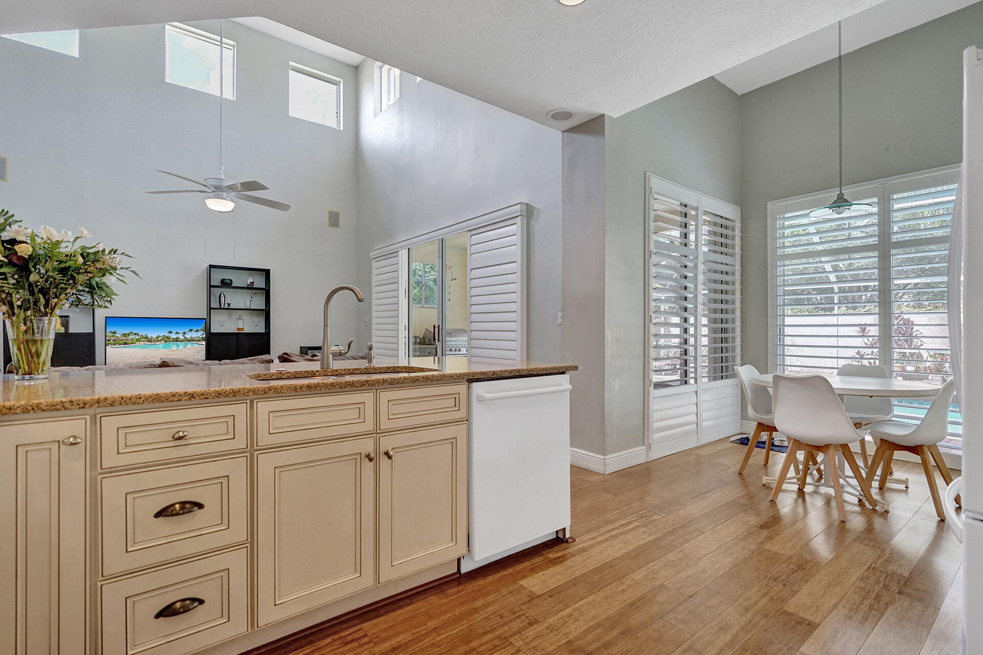 Everything you could want in a home in the highly sought-after community of Embassy Lakes is right here! Step into this spacious, light and bright pool home featuring 4 bedrooms, 3 1/2 bathrooms and a loft that can be utilized as an office, game room or a playroom. The vaulted ceilings and large windows allow an abundance of natural light to flow into the house. Stylish, water-resistant bamboo flooring is featured throughout the first floor. The kitchen is open concept to the family room and has upgraded antique white soft close cabinetry with quartz counters, premium roll out shelving in the pantry and an extended built-in area perfect for a coffee bar, and for maximum storage. Order take-out from an impressive list of neighborhood hot spots or prepare your own culinary creation in o