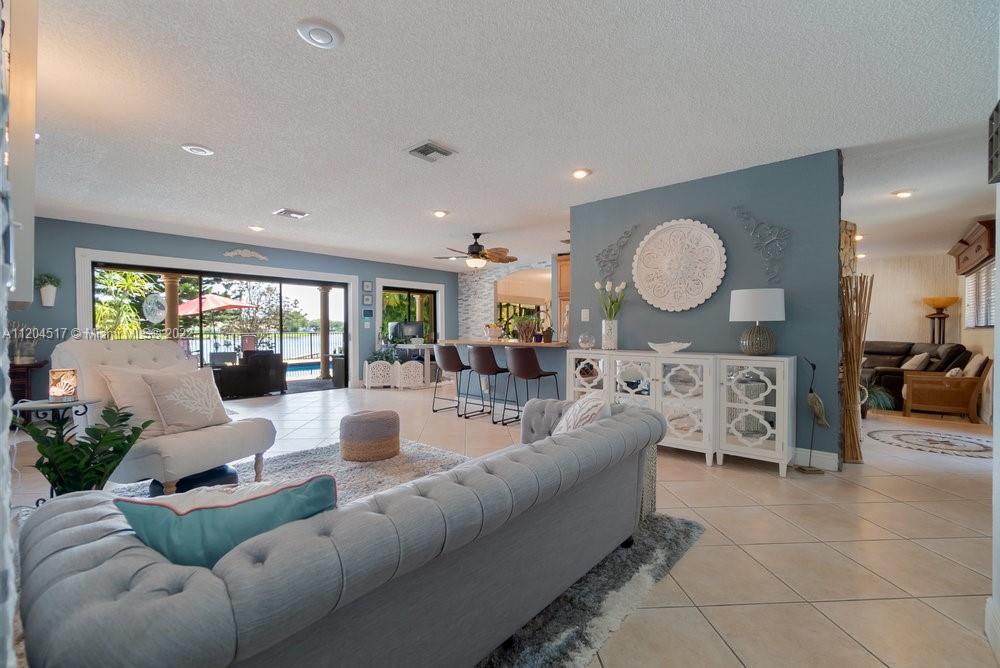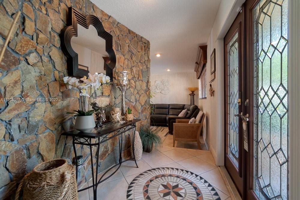 Single-family home is a one story, 4 bedroom, 2 bathroom, 2 car garage with pool in the tree-lined neighborhood of Oakwood. Nestled between a nature filled lake and a Wetland Preserve/park, you will find your forever Staycation home. Sunrise fishing, Sunset canoeing. Bright open floor plan extends to outdoor living, with outdoor kitchen, a magnet for family time. Dancing and pool parties. Kitchen has granite counters, stainless steel appliances, wood cabinets with pull out drawers, pantry, breakfast bar and wet bar. Unique textures throughout. Imported river stone. Mango and coconut trees. Entire yard has sprinkler system sourced from lake. Private side deck. Hurricane accordion shutters. Top schools. Close to shopping & dining. Filled with love! No HOA.