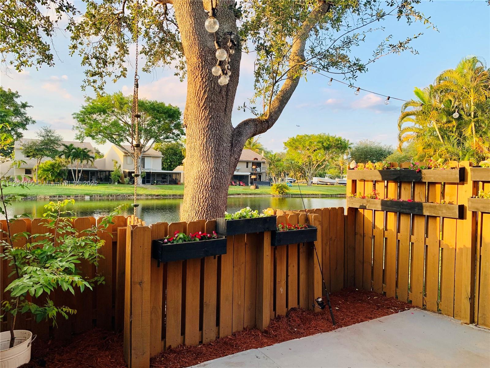 Lakefront corner townhome in highly desirable equestrian Davie neighborhood, Saddle Up. Centrally located off University near Griffin Rd. Close to major shopping, highways and Nova University. Near beautiful local parks including Wolf Lake and Tree Tops. This two bedroom, two and a half bath home has many wonderful updates including all impact windows, sliding glass and front door, new washer and dryer (2022), range and dishwasher (2022) and refrigerator (2021). New quartz countertops & backsplash in kitchen. Custom made stair rail. All wood look tile throughout the home with the exception of the bathrooms and the stairs are real wood. Outside the patio is screened in and has a fenced area to enjoy lakefront bbqs. Dog park (big dogs ok) Pool. Clubhouse. Boat/RV storage also included