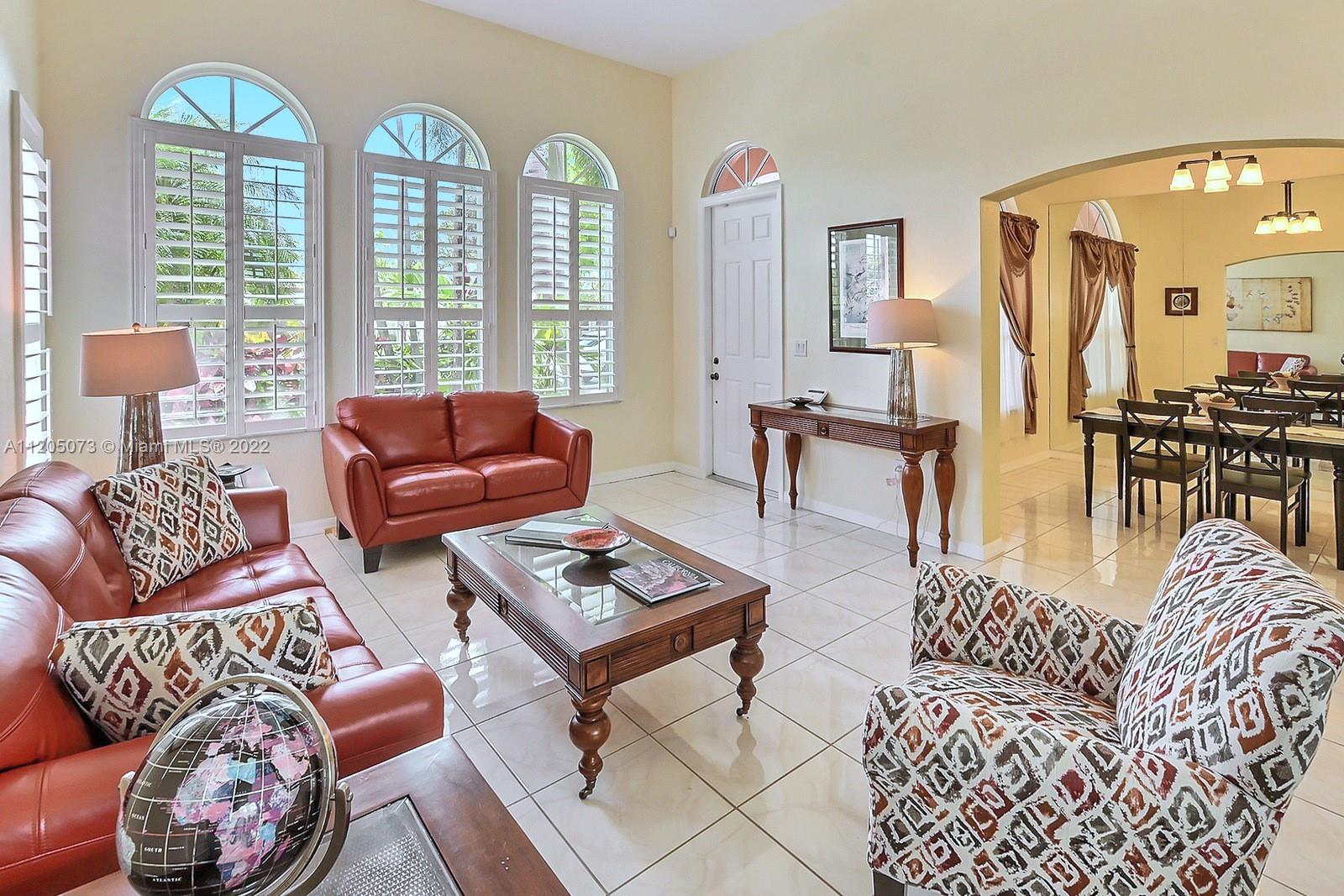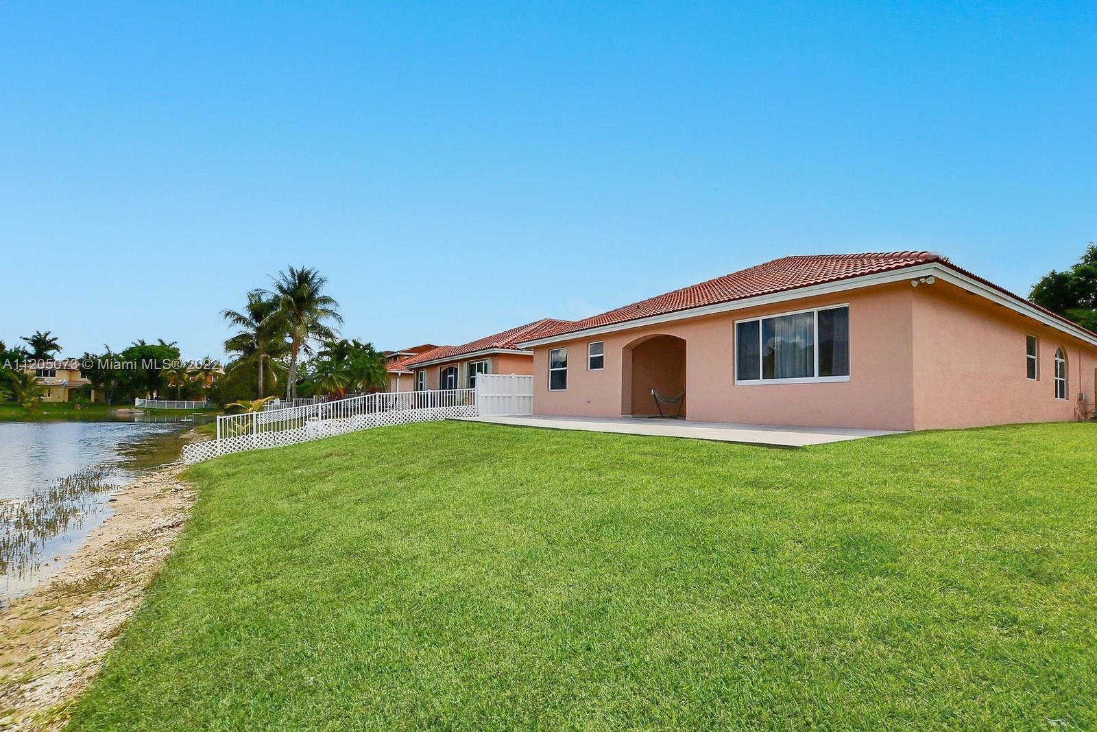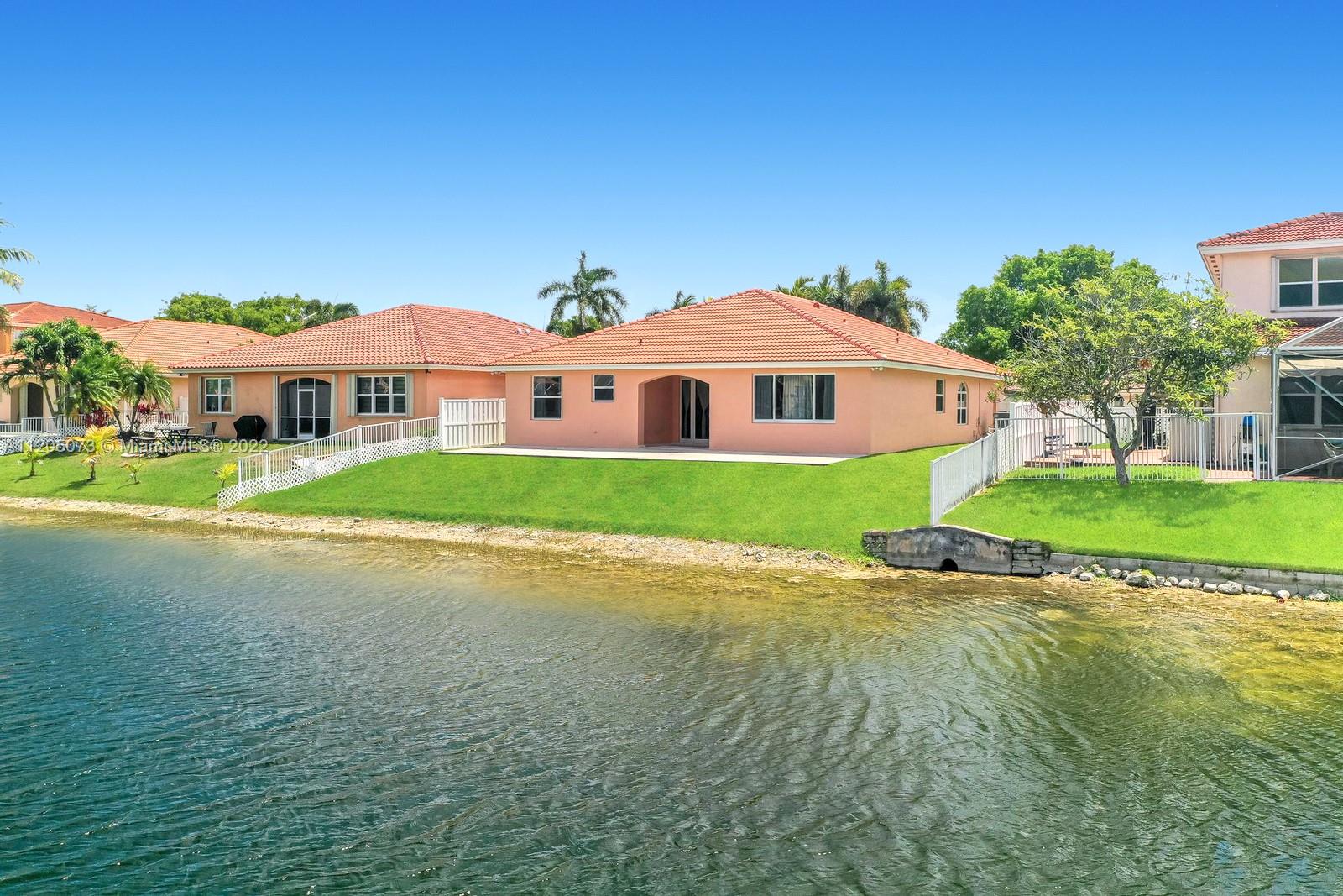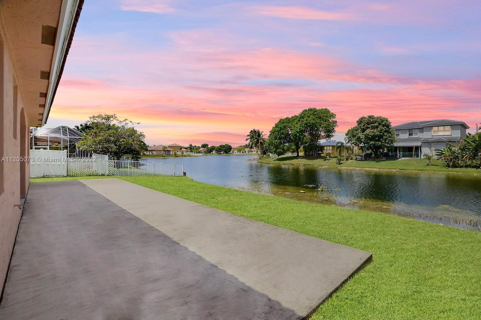 AMAZING 4 BED, 2.5 BATH WATERFRONT HOME IN THE GATED COMMUNITY OF THE ESTATES AT TEQUESTA COVE IN BEAUTIFUL MONARCH LAKES, MIRAMAR. ENJOY AN OPEN FLOOR PLAN WITH LARGE WINDOWS FILL THE HOME WITH NATURAL LIGHT. SPACIOUS KITCHEN HAS STAINLESS APPLIANCES, LOTS OF CABINETS, ISLAND, PENINSULA W VIEWS OF THE LAKE THROUGH THE FRENCH DOORS WHICH OPEN TO A COVERED PATIO PERFECT FOR OUTDOOR DINING WHILE ENJOYING ROMANTIC SUNSETS. FORMAL LIVING, DINING AND FAMILY ROOMS. PRIMARY SUITE HAS GORGEOUS VIEWS AND EN SUITE BATH W SEPARATE TUB & SHOWER, DOUBLE VANITY. ELEGANT PLANTATION SHUTTERS, NEUTRAL PAINT AND TITLE FLOORING. NEW ROOF 2020. NEW A/C 2021. AWESOME LOCATION CLOSE TO SHOPS AND RESTAURANTS WITH EASY ACCESS TO MAJOR HIGHWAYS. DEDICATED LAUNDRY ROOM. 2 CAR GARAGE.