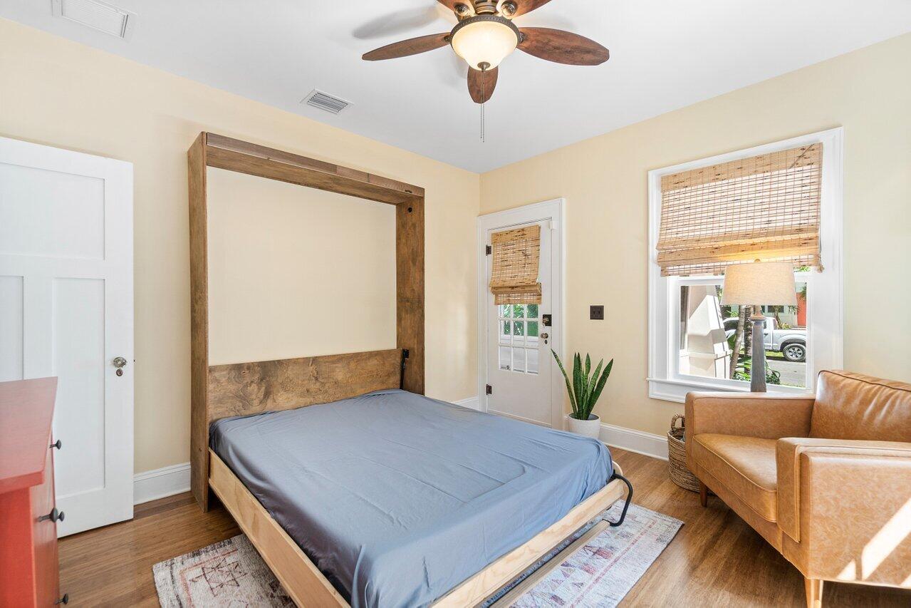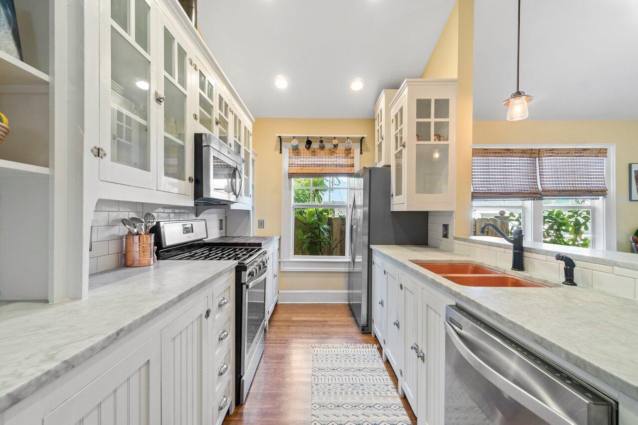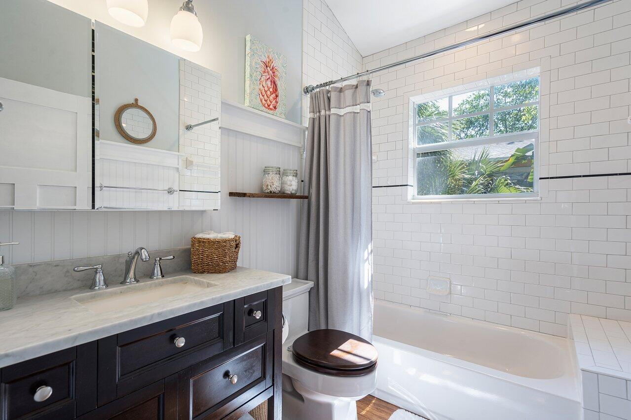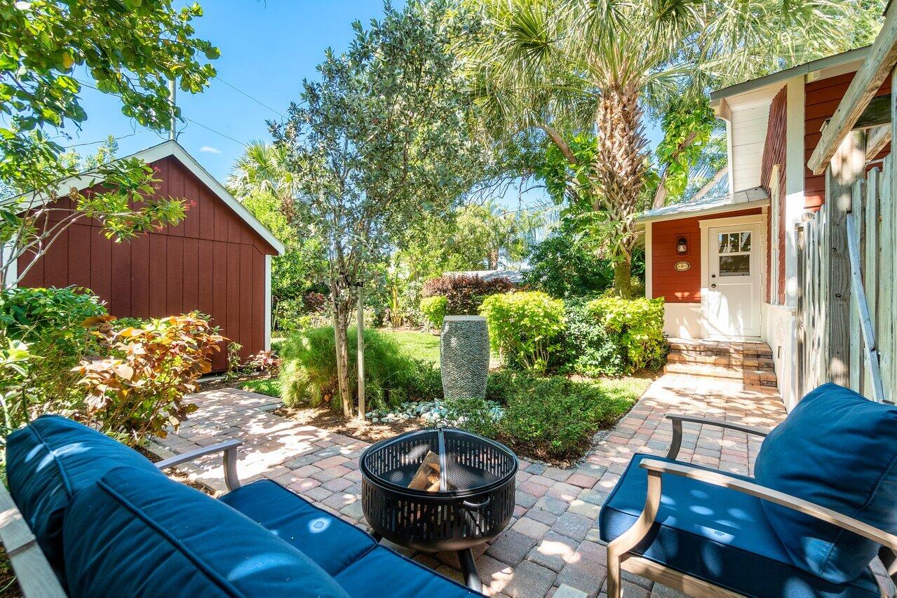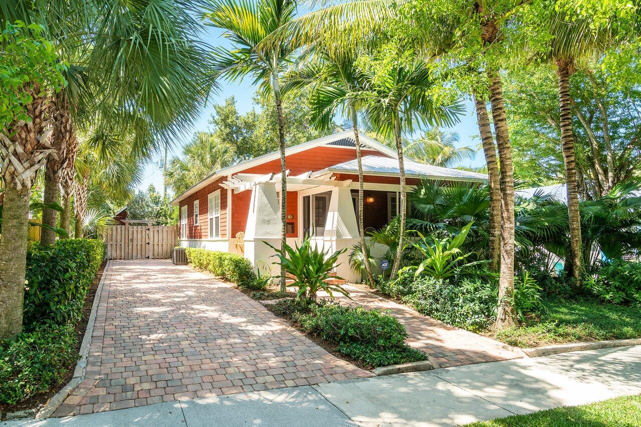 Award-winning 1923 Oriental Craftsman Bungalow located in the Grandview Heights neighborhood of Downtown West Palm Beach. Professionally restored in 2014 by historic master builder Paul Newman. Completely reframed with pressure treated lumber. Fully replaced plumbing, electric, and HVAC. Updates also include metal roof, hurricane impact windows, and tankless gas hot water heater. The home interior combines historic charm with modern touches including vaulted ceilings, chef's kitchen, marble countertops, copper sink, and natural-gas fireplace. Screened-in front porch entry with original Dade County Pine Wood Floors, brick-paver driveway, professional landscaping, and fully fenced in backyard with room for a pool and more. Large 10x14 Amish-built wooden shed for extra storage or workshop.
