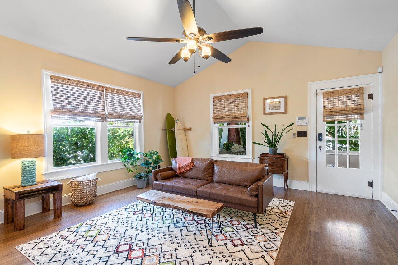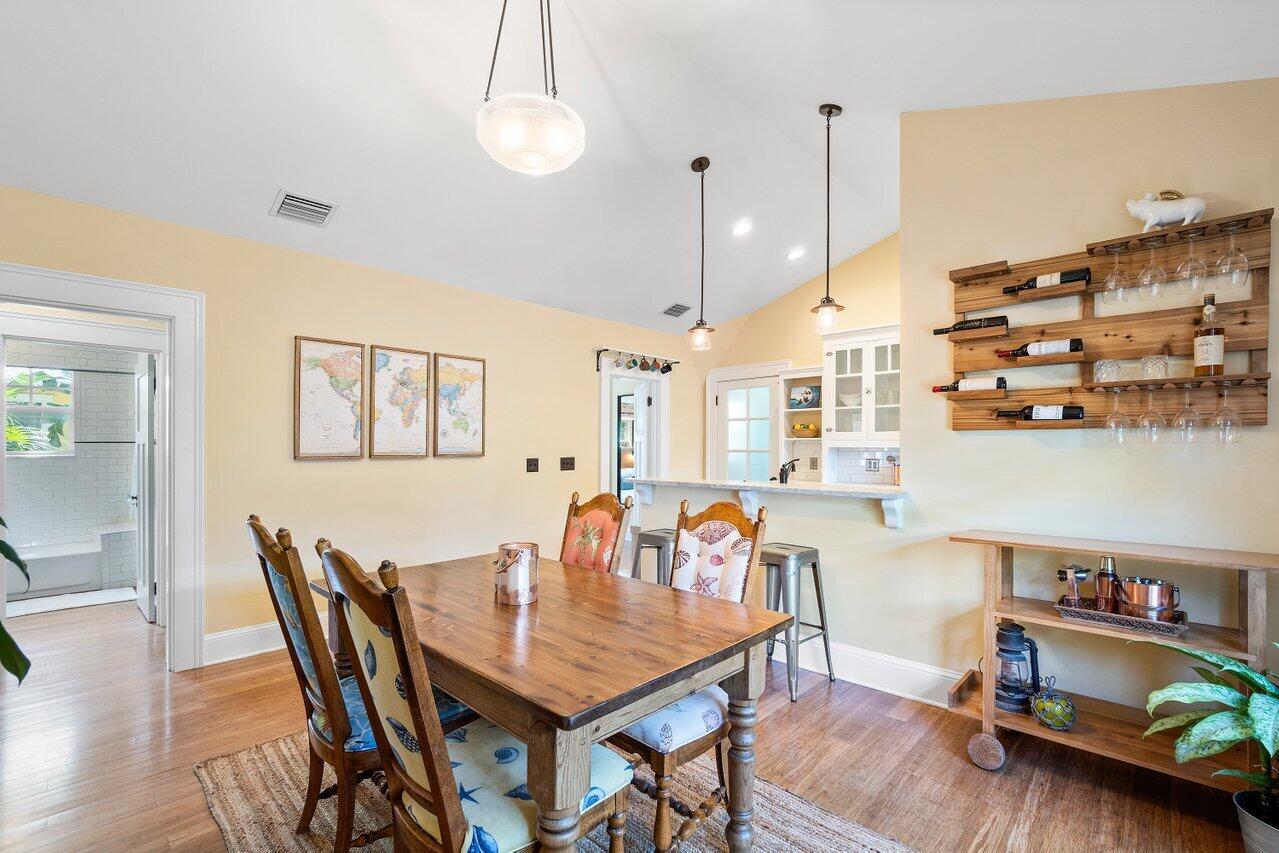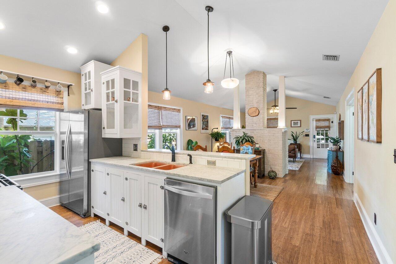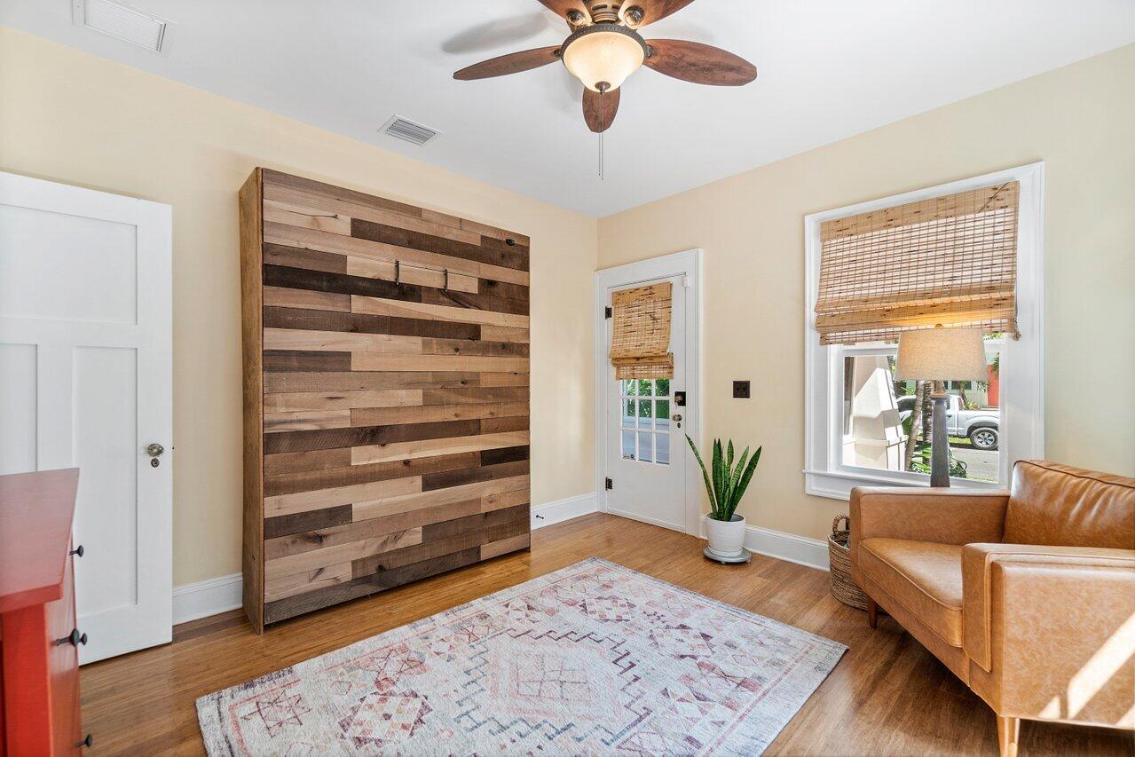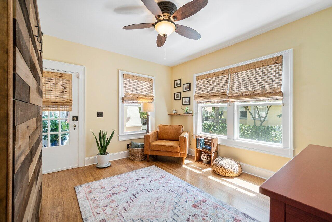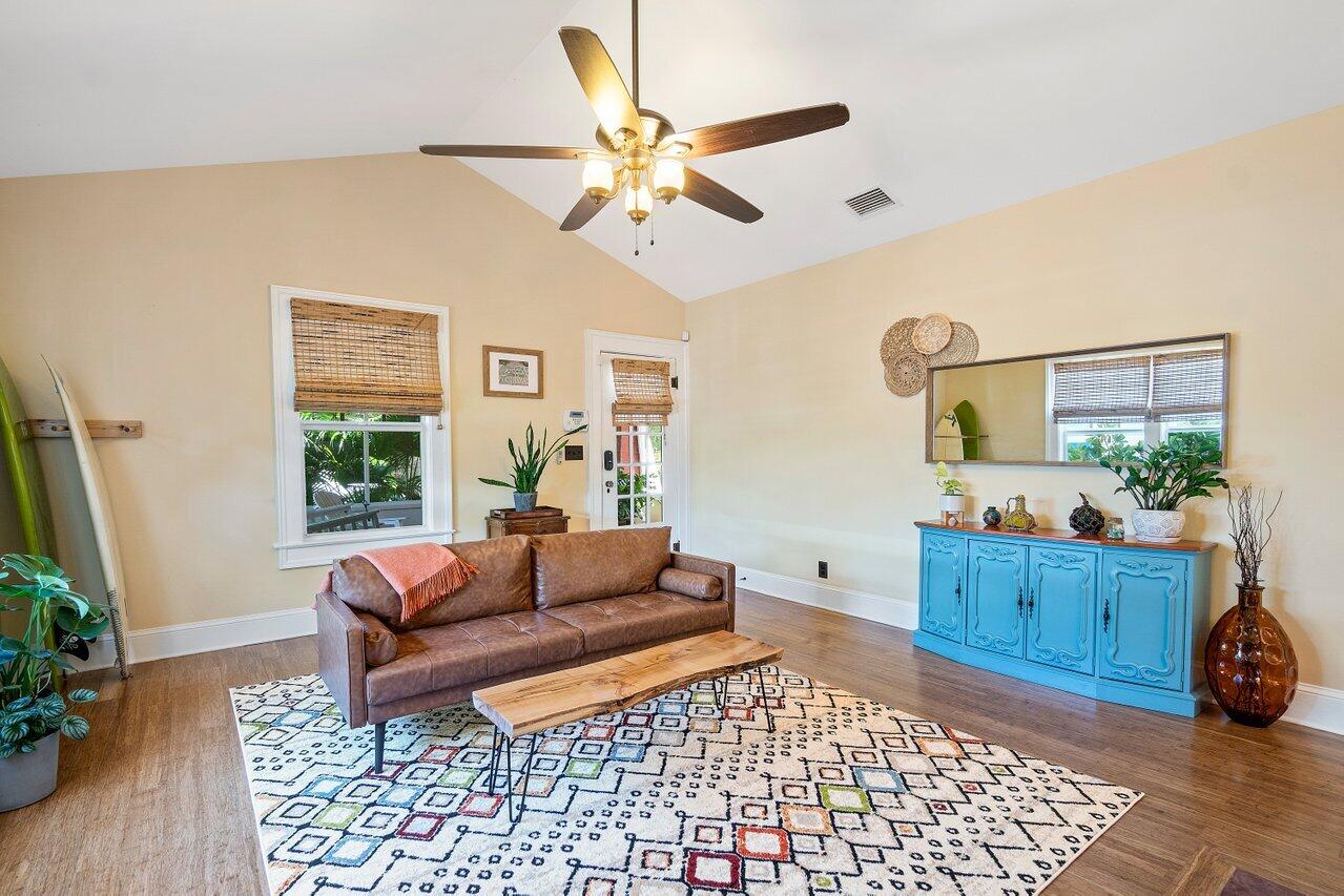Award-winning 1923 Oriental Craftsman Bungalow located in the Grandview Heights neighborhood of Downtown West Palm Beach. Professionally restored in 2014 by historic master builder Paul Newman. Completely reframed with pressure treated lumber. Fully replaced plumbing, electric, and HVAC. Updates also include metal roof, hurricane impact windows, and tankless gas hot water heater. The home interior combines historic charm with modern touches including vaulted ceilings, chef's kitchen, marble countertops, copper sink, and natural-gas fireplace. Screened-in front porch entry with original Dade County Pine Wood Floors, brick-paver driveway, professional landscaping, and fully fenced in backyard with room for a pool and more. Large 10x14 Amish-built wooden shed for extra storage or workshop.