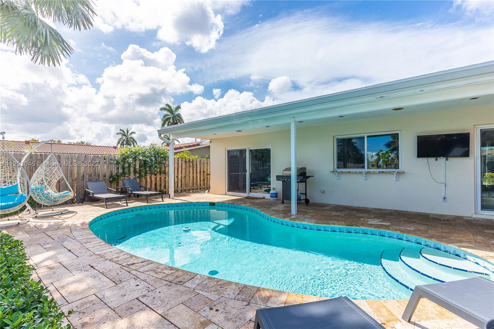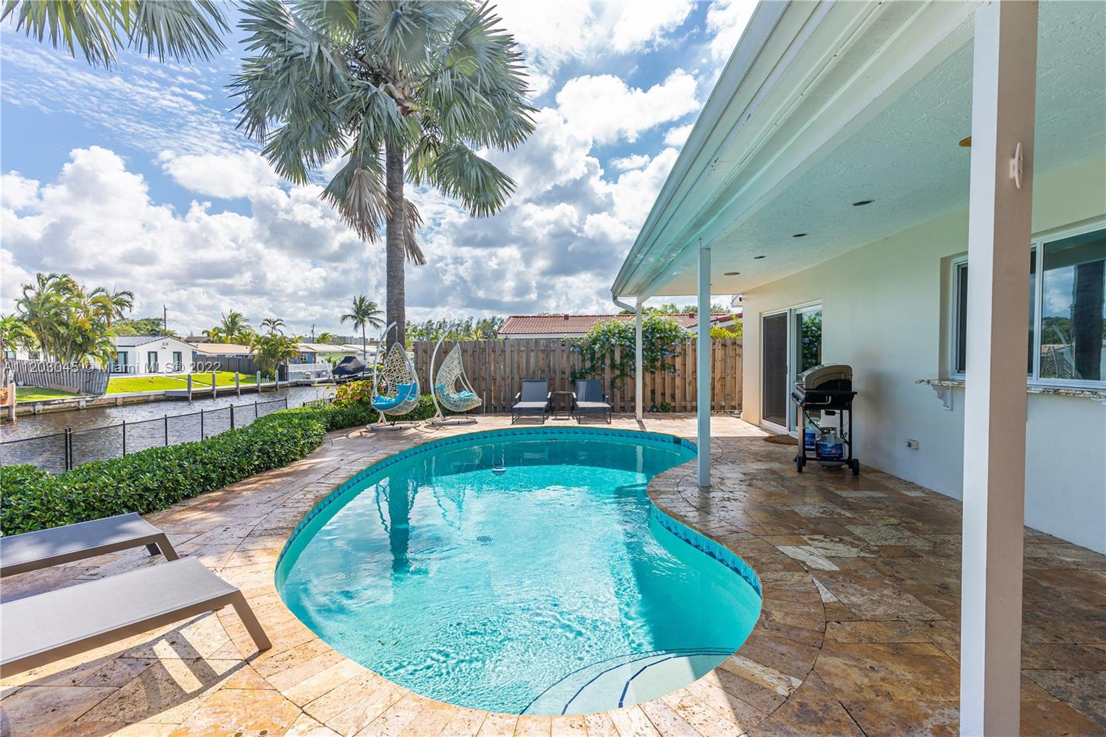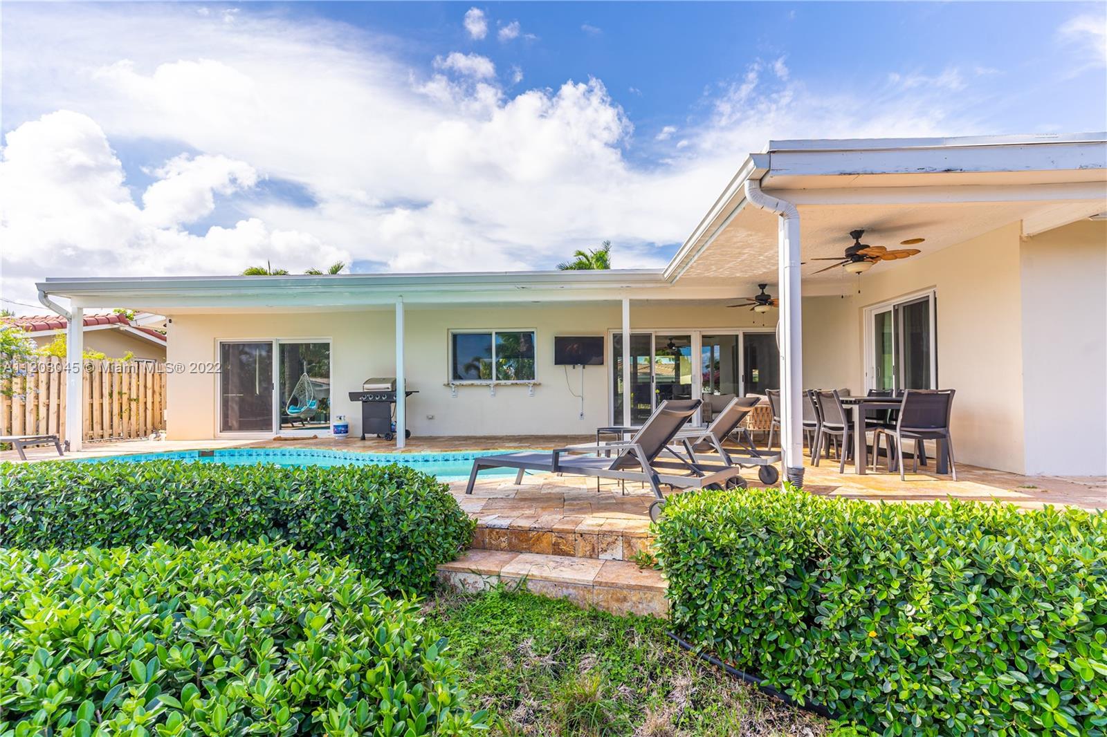 This is a 3bed + DEN!! Easy to build 3rd bath. WATERFRONT/OCEAN ACCESS DREAM HOME OR BUSINESS READY SHORT TERM RENTAL. Projected $146K/year. East Fort Lauderdale Spectacular Patio: Snack Bar Window, Travertine floors, Salt System POOL, floating jet-ski dock, 75’ frontage dock w/Breathtaking Outdoor Views. ALL hurricane windows & doors. COMPLETELY renovated New Kitchen, Island, formal SPACIOUS dining room, Open floor plan filled with Natural Light. Master bedroom with a view. ALL Motorized Blinds. 1 car garage & big Paved Circular Driveway. Close to the Beach. Perfect for a Vacation Home. On Airbnb, PLEASE DO NOT APPROACH it. Guests WILL complain. (Furniture negotiable).
