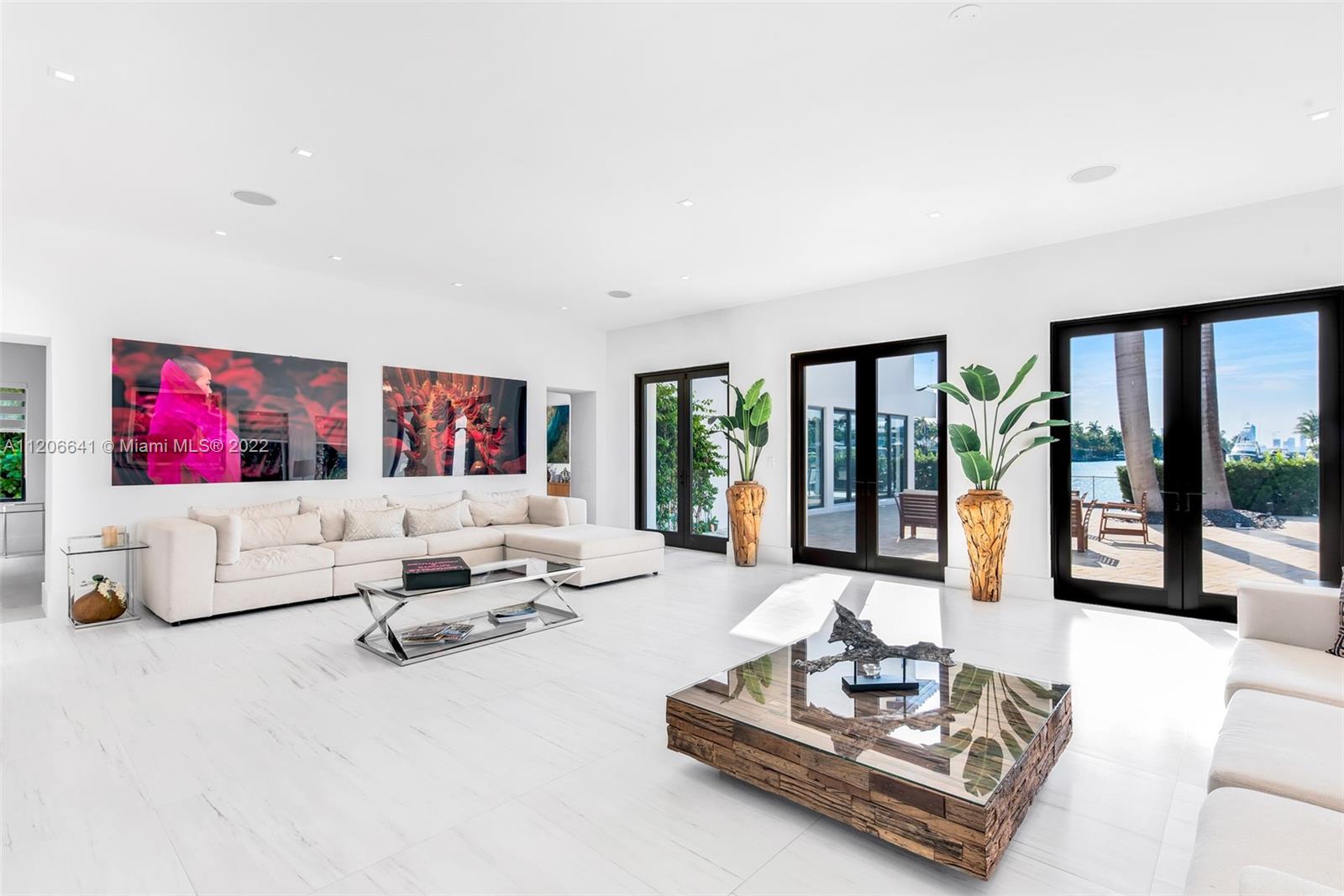 Architecturally stunning waterfront estate with open water views on the prestigious North Bay Road. Sitting on an expansive 27,000 SF lot, this two-story 10,114 living SF residence was built by MV Group USA and is designer furnished, featuring sleek, luxurious details throughout. Offering 100 feet of prime water frontage, you'll enjoy a marvelous outdoor area with a large pool, jacuzzi, spa, dock, and boat lift, no fixed bridges to the bay, and lush landscaping for ultimate privacy. Renovated in 2015, this 11 Bedroom / 12.3 Bathroom estate boasts an enviable sophisticated lifestyle complete with a guesthouse, 3-parking garages, gym, office, master suite with balcony, and more!
