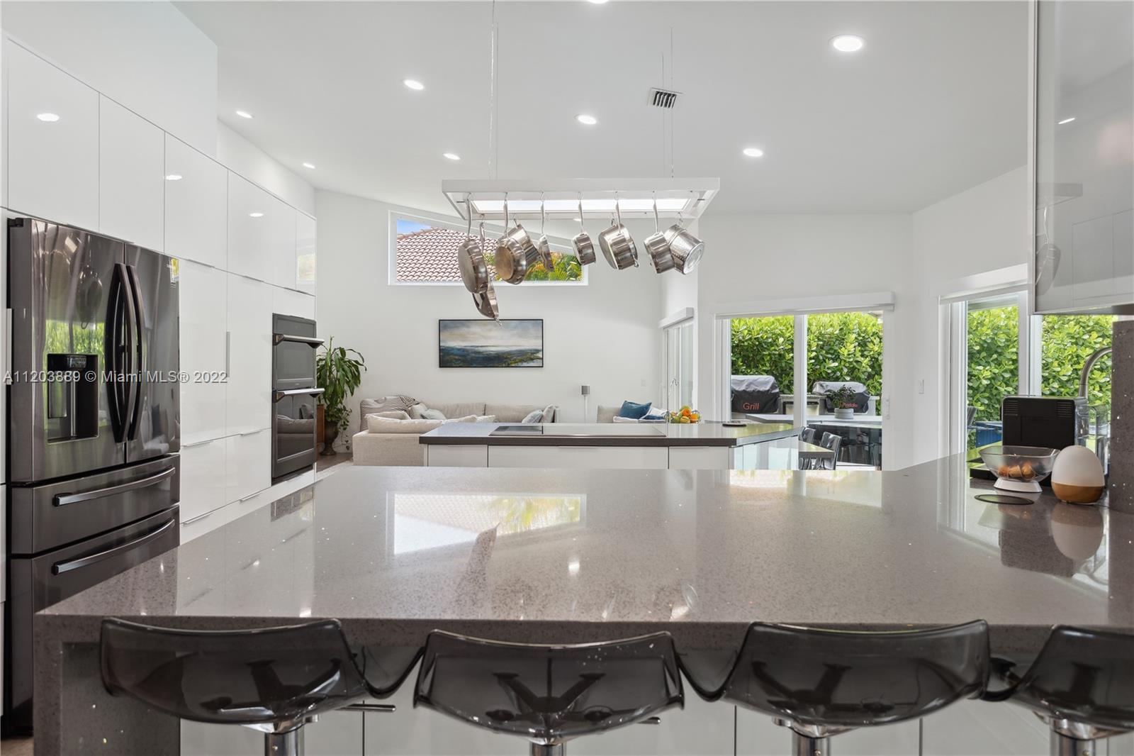 GORGEOUS AND COMPLETELY REMODELED 4bed + Office home in the charming Tequesta Community. NEW MODERN Italian design kitchen with all BRAND-NEW Black Stainless-Steel appliances. Very bright with lots of natural light with IMPACT WINDOWS, NEWER roof 2008 and NEW A/C (2021). Perfect to entertain with family and friends with total privacy on a lovely backyard with new SUMMER KITCHEN, pool, travertine deck and pergola, all done in 2021. All new driveway pavers and garage. A MUST-SEE. READY TO MOVE-IN! OPEN HOUSE on Sunday May 22 from 11am - 1:30pm.