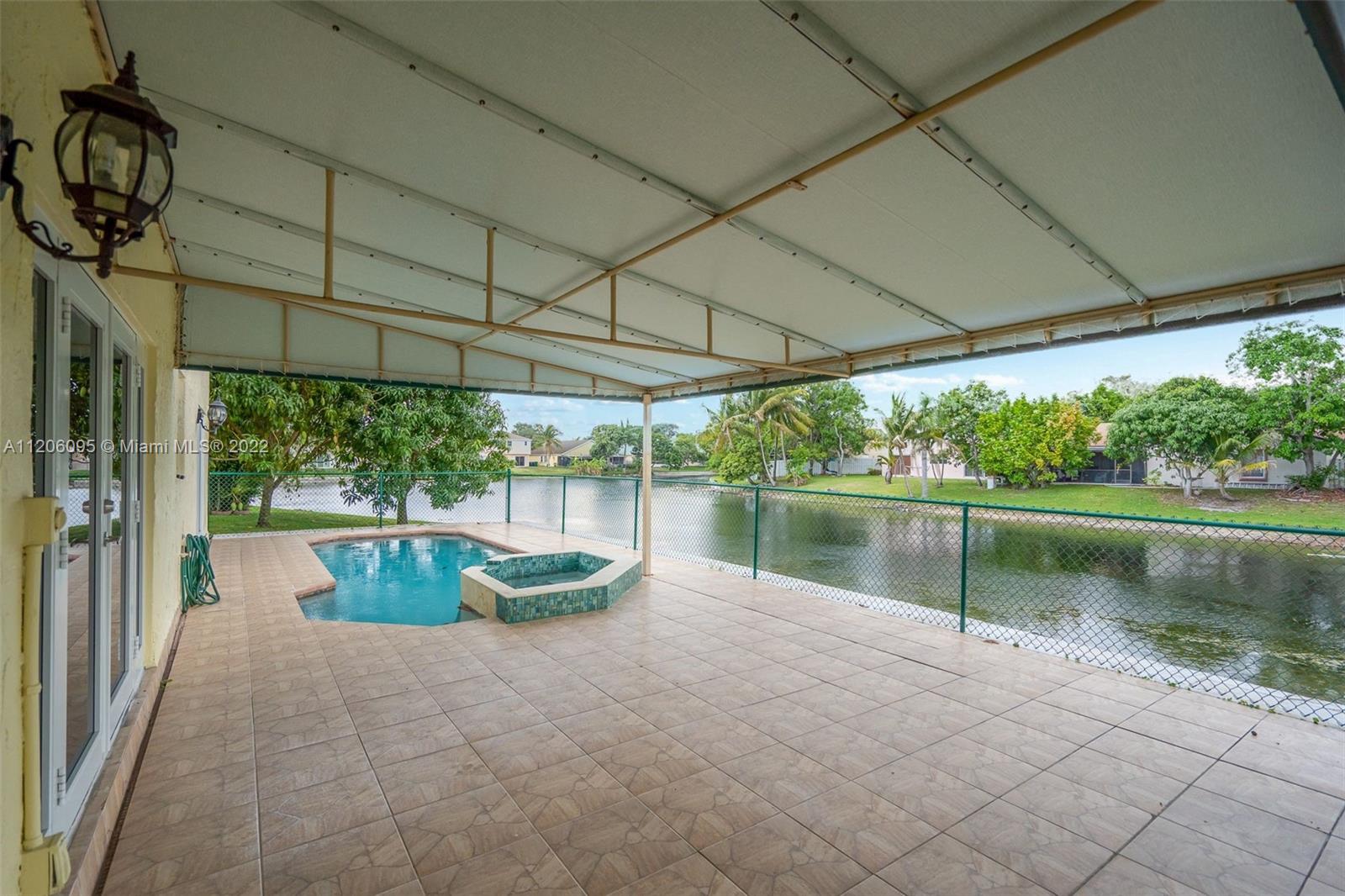 This spacious 2-story waterfront pool home on culdesac street features a newer roof 2016, impact glass doors & windows throughout 2018 & is totally carpet free. Large inside laundry room & 2 car garage. Remodeled kitchen complete with granite countertops. Pool & spa have electric heater while enjoying oversized covered deck with beautiful water views. 2 story ceiling in Living room & dining room with great natural light. The wall to the 4th bedroom has been opened to use as a sitting room, office or nursery off master but can easily be put back so it can be used as a 4th bedroom. Enjoy this great location, convenient to a beautiful park, schools, shopping, & major highways for great access to Miami or Ft Lauderdale. Low HOA fees are only $115 per quarter. Vacant & Ready for Quick closing!