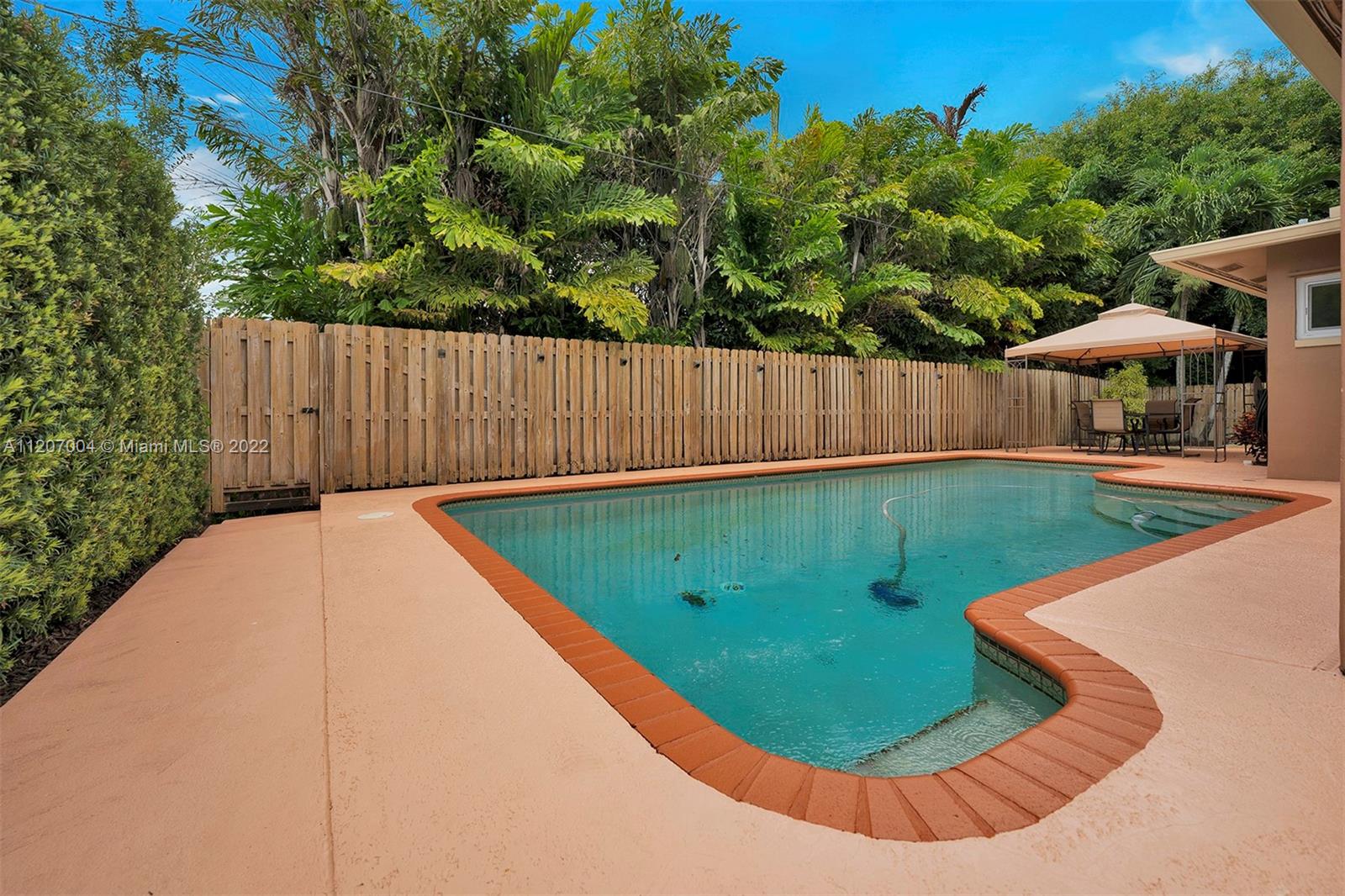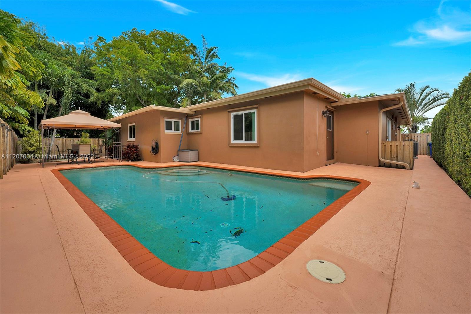 If you love inside and outside living, this lovely home will be paradise to you; it has it all: a huge lush manicured lot with exotic palms, manicured hedges, decorative rock, etc.; located on a dead-end side street, creating privacy and abundant parking; has updated kitchen, hurricane proof windows, a large pool, private sit-out porch; a top-class man shack for family and friends game nights, the list goes on and on. Homes like this don’t show up often, so is the opportunity to own one; SEIZE IT!!!