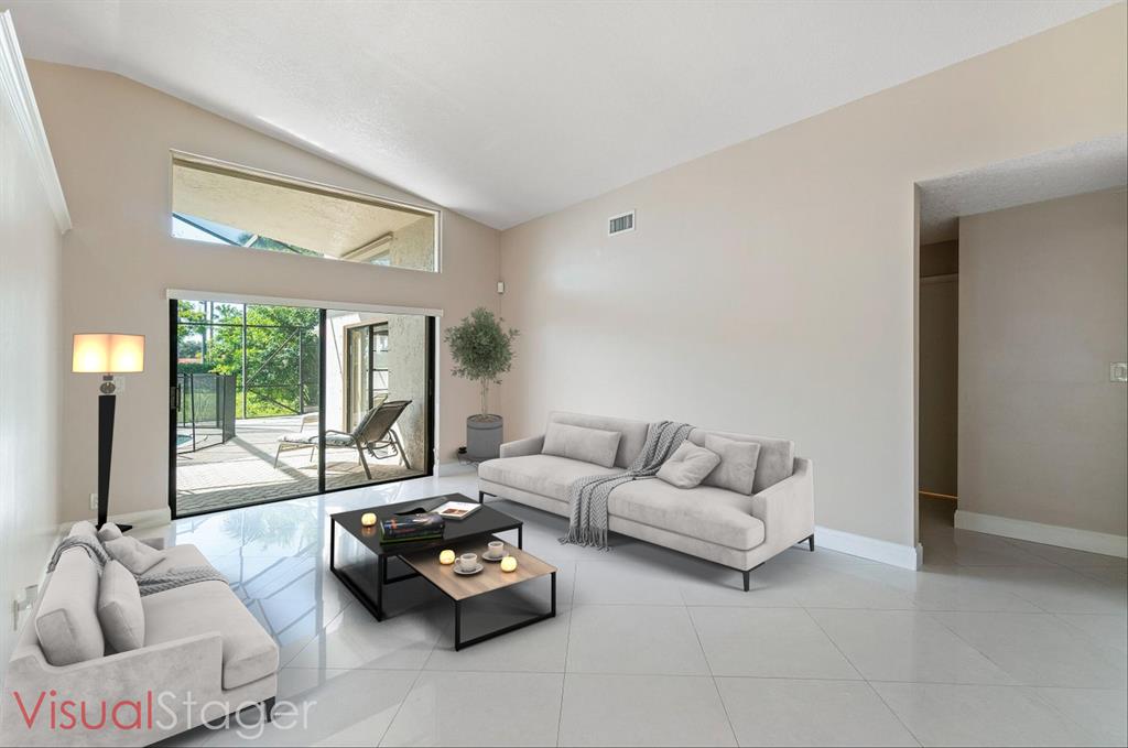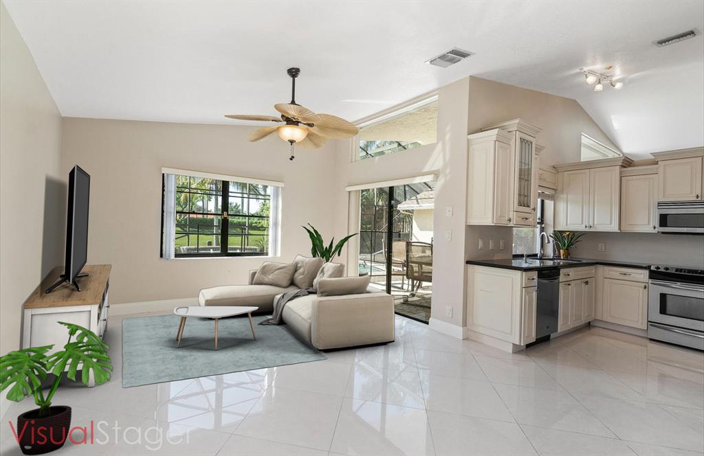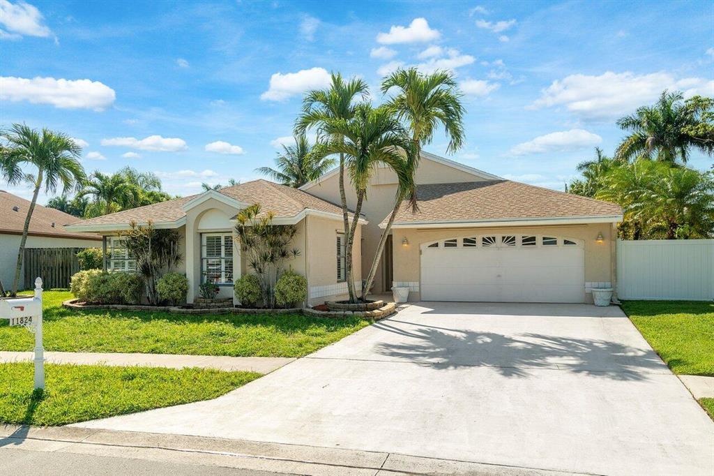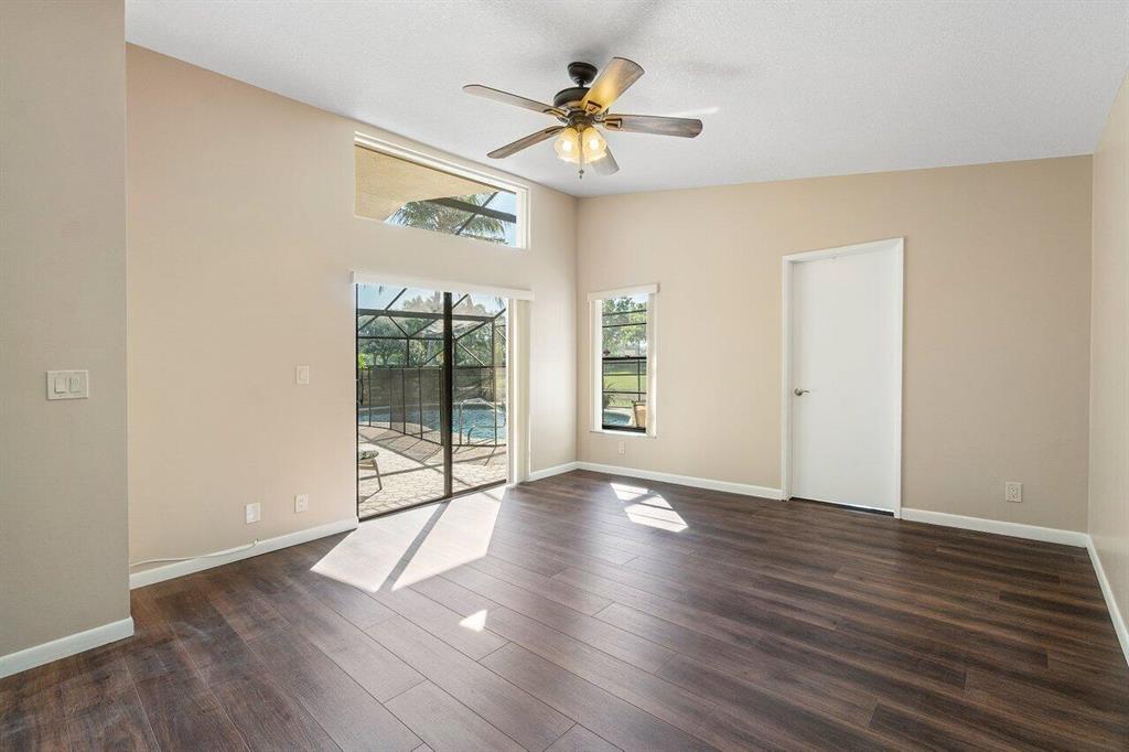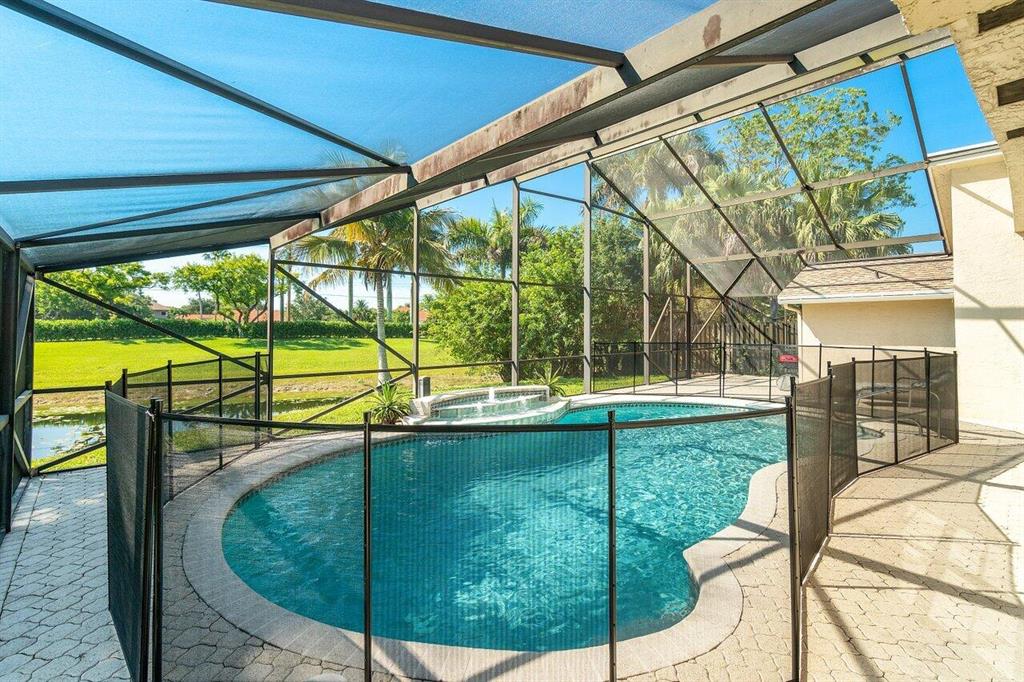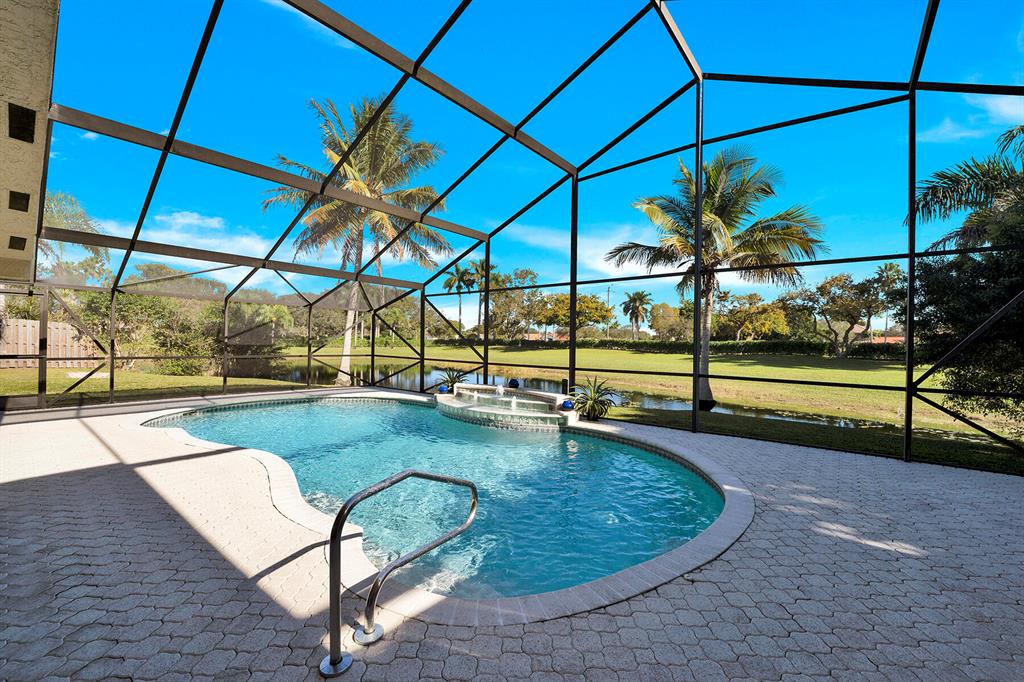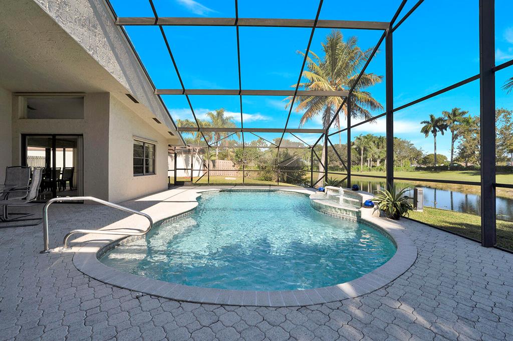 Amazing lake views in this exclusive neighborhood, Estates of Country Landing. Move right into this beautiful single-story pool home offering a 4-bedroom, 2 bath, 2 car garage. This spacious floor plan has vaulted ceilings in the living/dining area, a kitchen family leisure room and master suite with abundant sliding glass doors that bring lots of natural light. The family room is opened to the upgraded kitchen and this area is ideal for the hub of all family activity. Step inside through the wide foyer into the formal dining room and living room which takes you to an oversized screen-in patio with your private pool and a serene lake view that can be accessed from the family room and master bedroom.