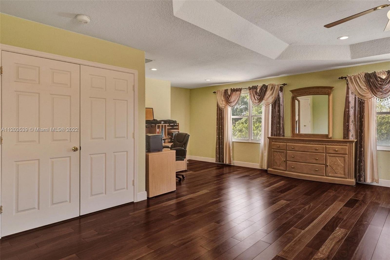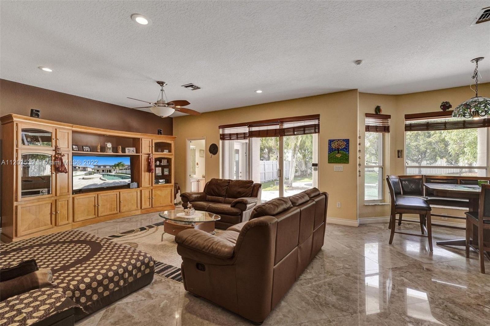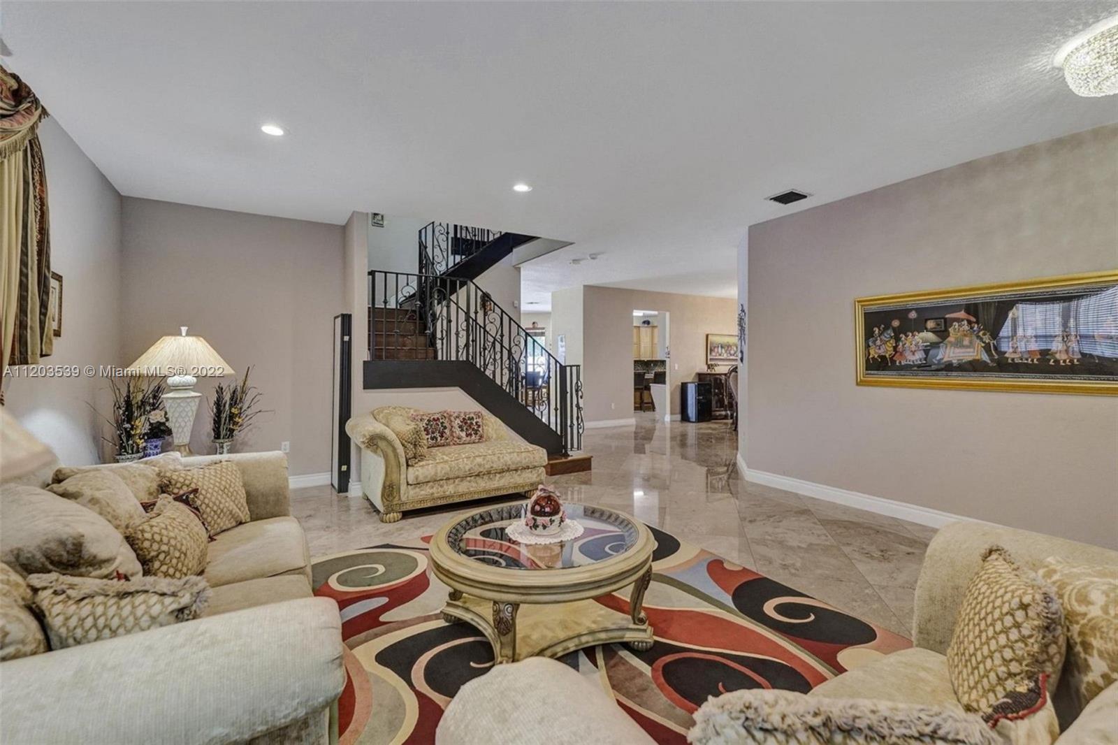 Luxurious 4 bed, 3.5 bath, pool home, in manned guard gated section of Silverlakes! Home features marble flooring on lower level, real hardwood flooring on stairs & upper level, beautiful iron railing leading to second floor. Gourmet kitchen is complete w/granite countertops, center island & ss appliances. Lower level you also have an extra storage room. Oversized master suite has a separate sitting area/office and an enormous master bath. Every closet in this home has custom built-ins! Custom cabinetry in laundry room and garage. Enjoy the oversized fenced-in backyard w/a large pool, travertine pavers, covered sitting area, huge grassy area & mango trees! The exterior of this home was just painted! Home is protected by accordion shutters. 5th bed is currently being used as sitting room.