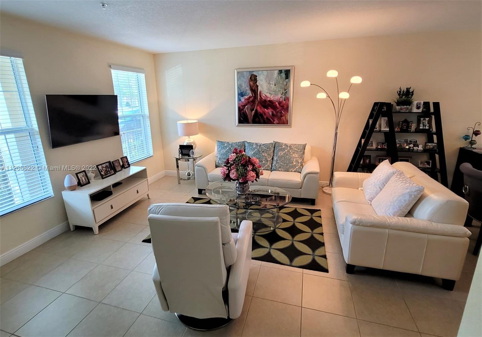 Welcome to this beautiful 2 story townhome. Built in 2014, located in the desirable gated community of Cobblestone. This charming 3-bedroom 3-bathroom townhouse features an interior courtyard, contemporary kitchen w/granite countertops, SS appliances & new washer & Dryer. Integrated living and dining areas & bedroom w/a full bathroom downstairs. 2nd floor has an open family/media room & balcony, perfect outdoor space. Master bedroom w/ large custom closet & suite bath w/dual sink vanity. Bedroom # 3 -walk in closet & full bathroom. Hurricane Impact windows & doors & nearby resort style pool, clubhouse, fitness room, jogging paths & playgrounds. Gated community w/ 24-hour manned security. Amazing location, minutes from shopping, restaurants and easy access to 1-75 & Turnpike.