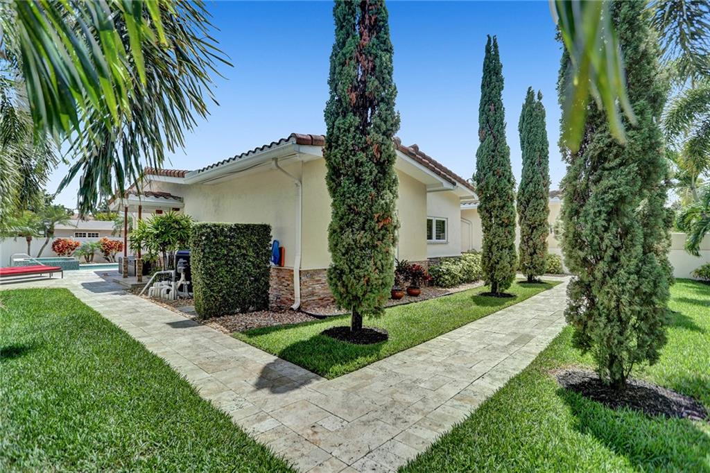 Total New Renovation in desirable Coral Ridge neighborhood. Fabulous 3BR/2BA/,2 Car garage with complete privacy. Vaulted, Open beam ceilings that add charm to the Great room which includes a new modern split rock fireplace. All new Impact windows and doors w/sun blocking shades Enjoy a Huge master Master bath w/soaking tub. A total WOW kitchen w/island &, Kitchen Aid appliances. The home is behind a stately masonry wall with custom decorative gates and travertine up lit walkway to the double glass entryway. Landscaping includes Italian Cypresses and over 70 palm trees. New 19 x 27' covered outdoor granite kitchen/Bar/Fire-pit. Saltwater Pool/Spa, New underground sewer/water lines/electrical/cable to street. Bose system in & out, Brand new A/C, Maintenance free grass. security cams,