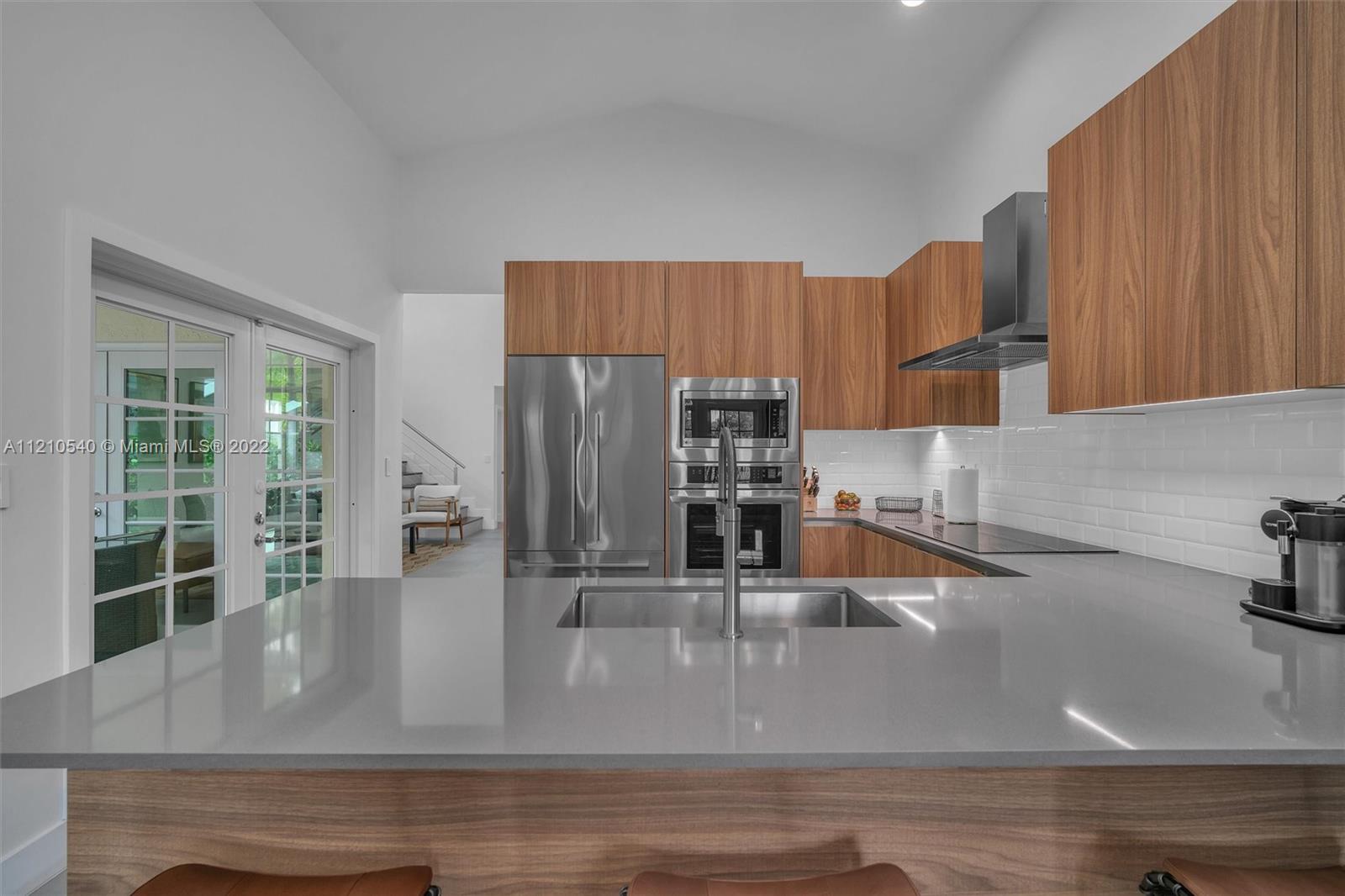 Beautifully remodeled 3/2.5 home in immaculate Grand Palms community. Stunning kitchen with fitted refrigerator, grey marble counters & wood cabinetry. Includes wine cooler all beside a comfortable family area with view of the golf course & lake. Ample living & dining areas with high ceilings, lots of natural light that shows off 24x24 ceramic tiles. All bedrooms have wood floors & custom closets. Master suite, conveniently located on ground floor, has walk in closet, double basins & huge shower with rain head & a hand held option plus an elegant glass door. An extremely well maintained community where HOA includes roof cleaning, outside painting, security, alarm & more. Close to Whole Foods, Costco, I75 & much more.