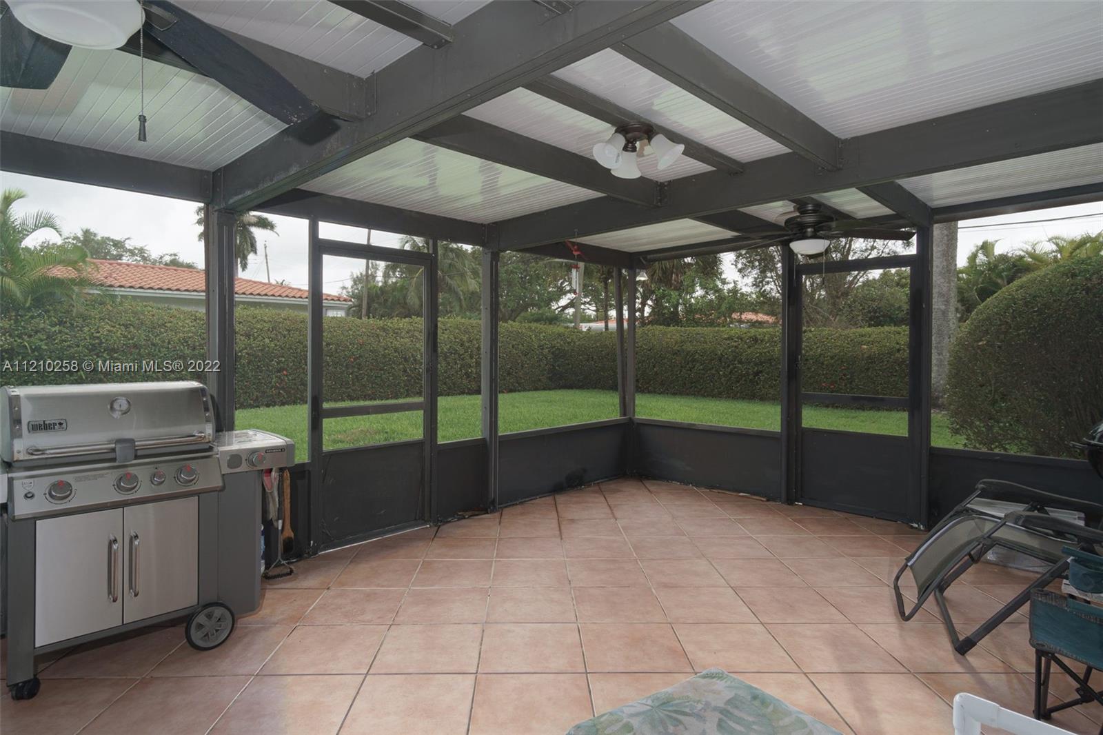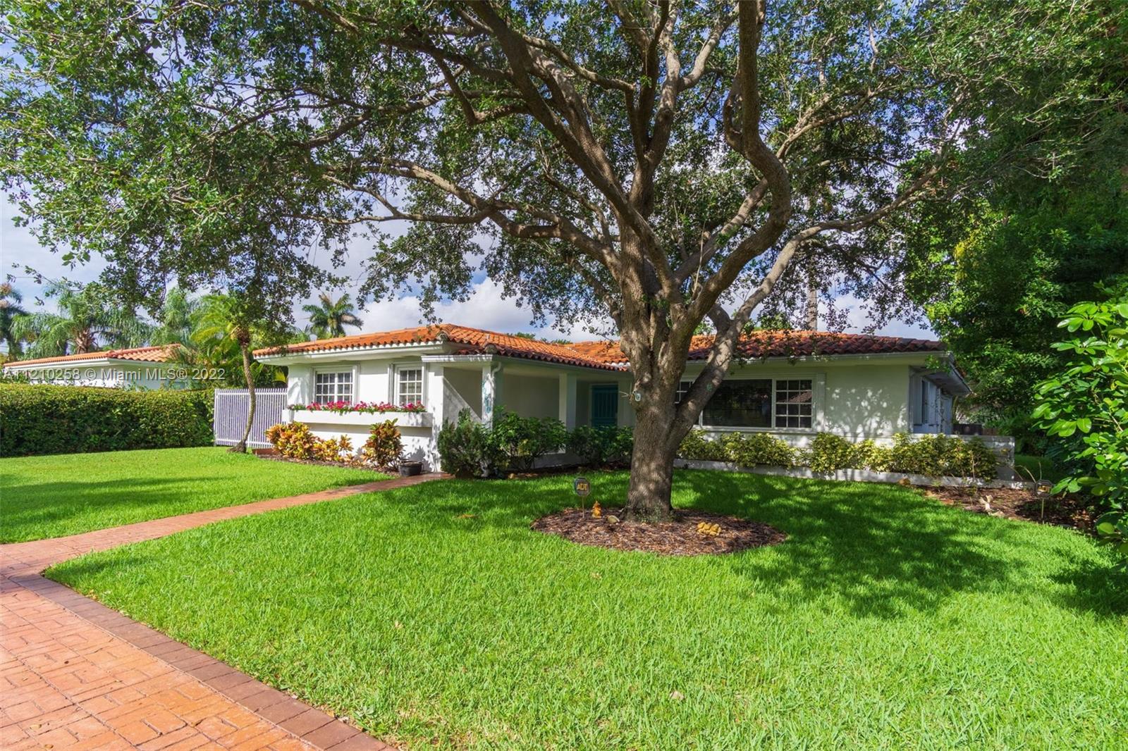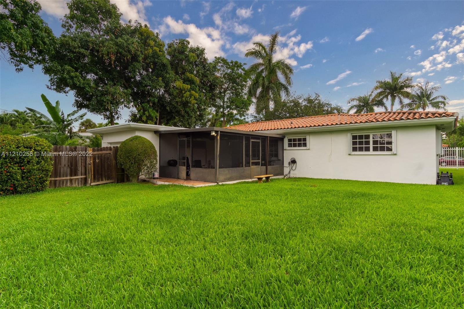 3 bedrooms and 2 full baths in Miami Shores. Nice fenced yard, great curb appeal and one car garage. Screened patio overlooking the garden with room for a pool. Open living spaces, the kitchen is open to the dining area. Lots of windows...good natural light. Tile and terrazzo floors. Quiet street, central a/c, updated bathrooms. Well cared for home, move-in condition.