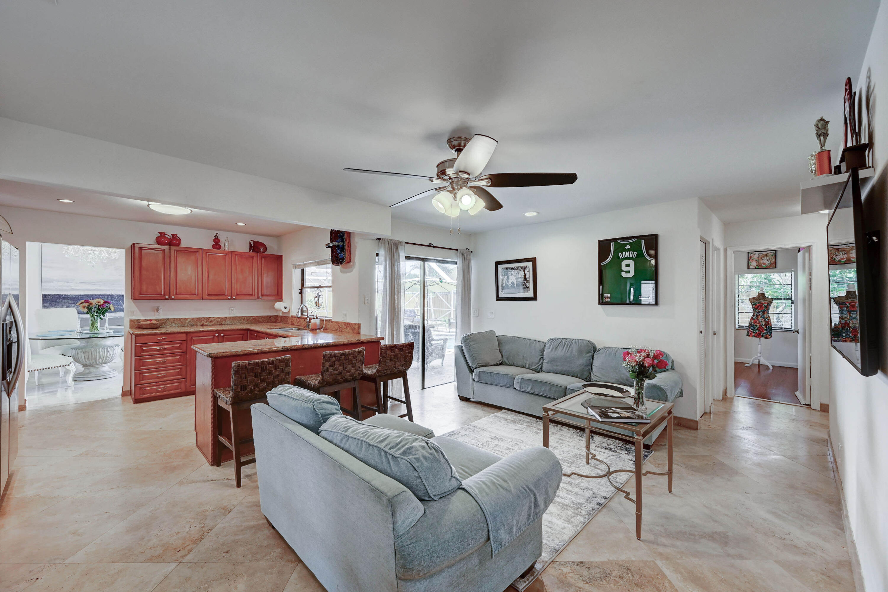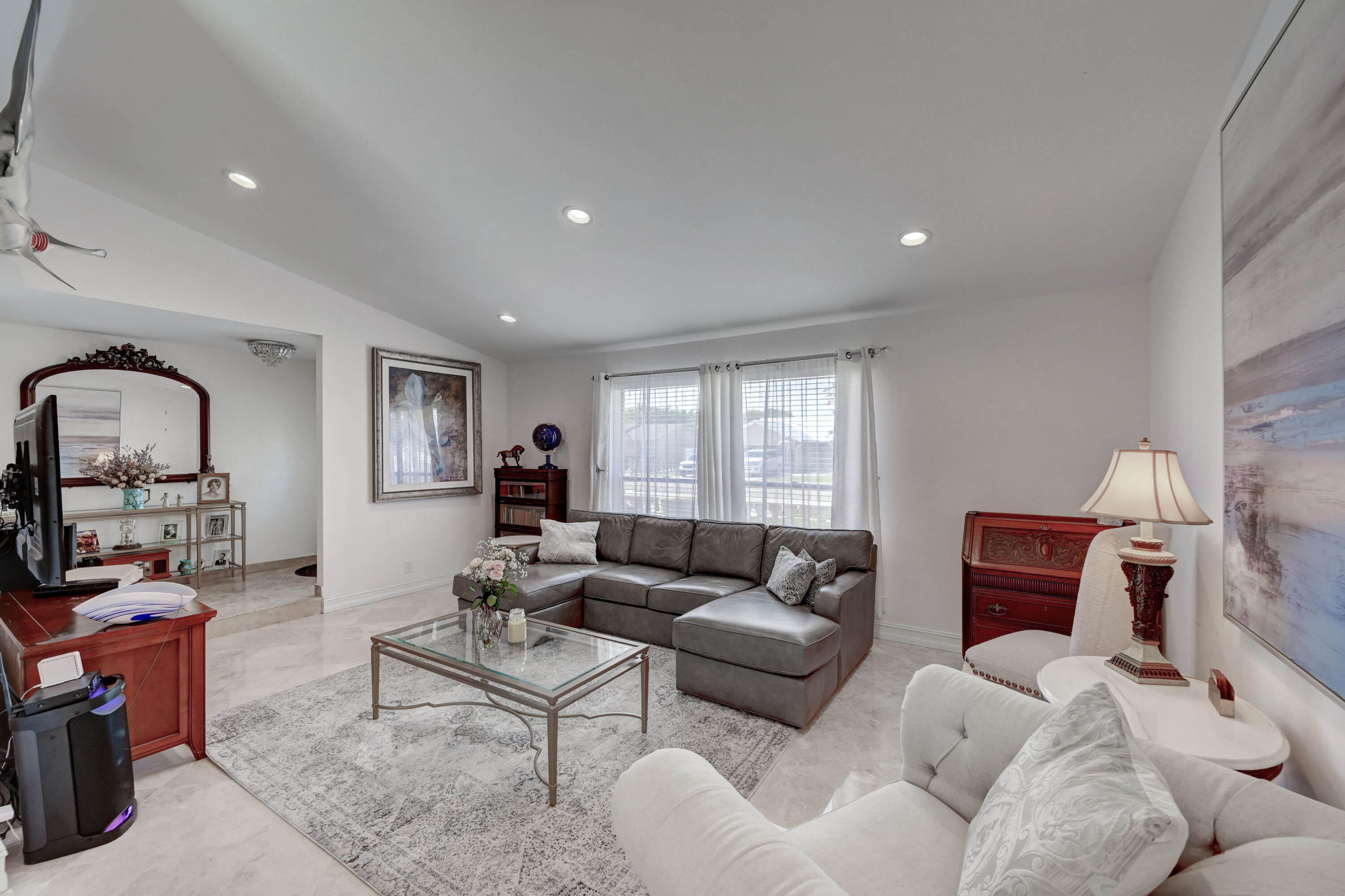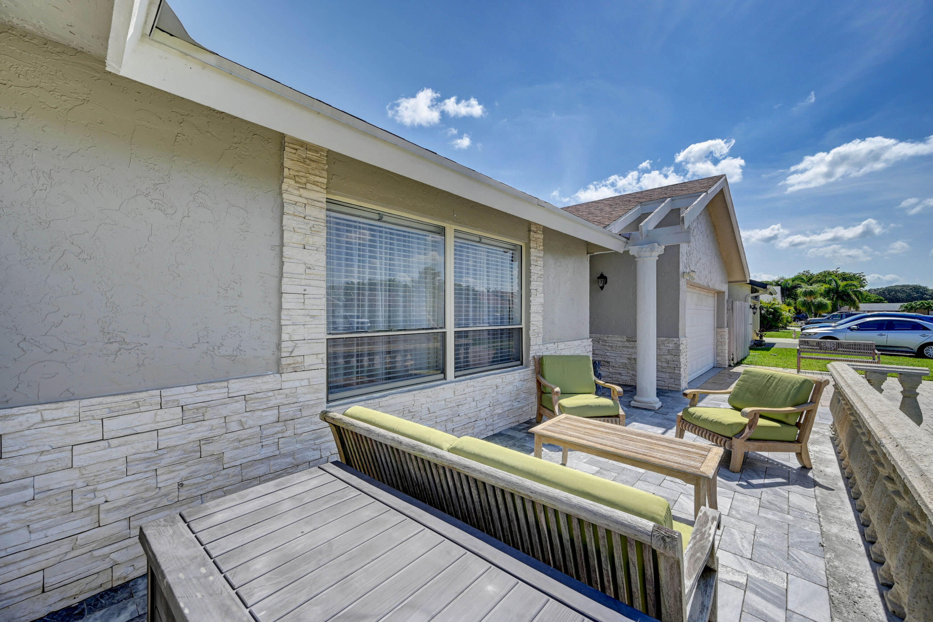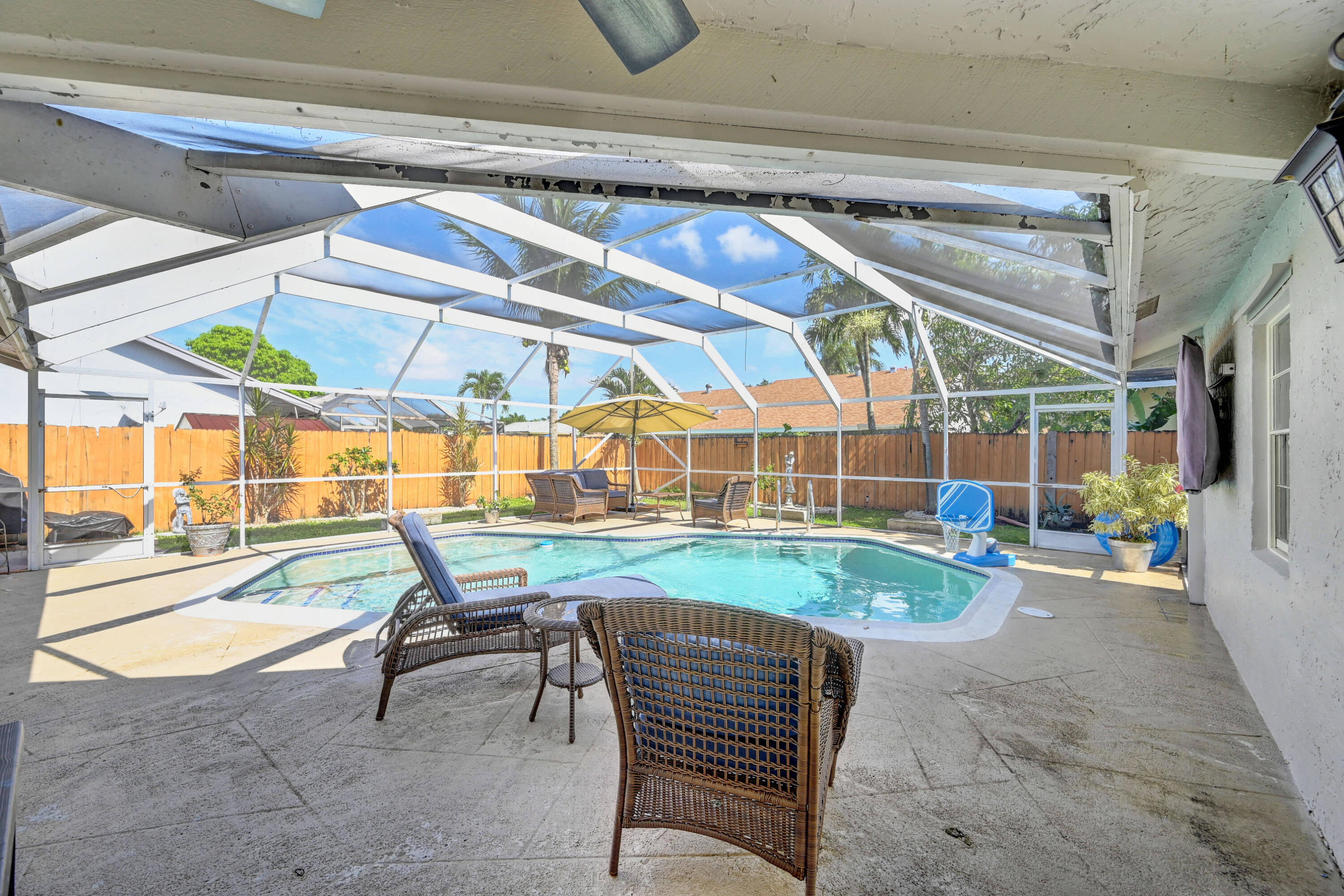 Open and airy spacious home with breathtaking stone work. 4 bedroom and 2 bath with pool in one of Boca's great neighborhoods. Largest model with over 1900 sq feet! Kitchen has granite countertops and stainless appliances. White marble floors in main living area. Vaulted ceilings in living and dining room newly Diamond Brite pool. Roof from 2018. Solar water heater. New electric panel garage with work area. Split bedrooms 3 on one side near updated cabana bathroom Expansive master suite with large walk-in built out closet.Newly updated bathroom and dressing area with granite tops. Large glass enclosed shower.Plenty of space for storage and gates to allow large recreational vehicles to be parked. Driveway widened all travertine. Large great marble deck rock surface