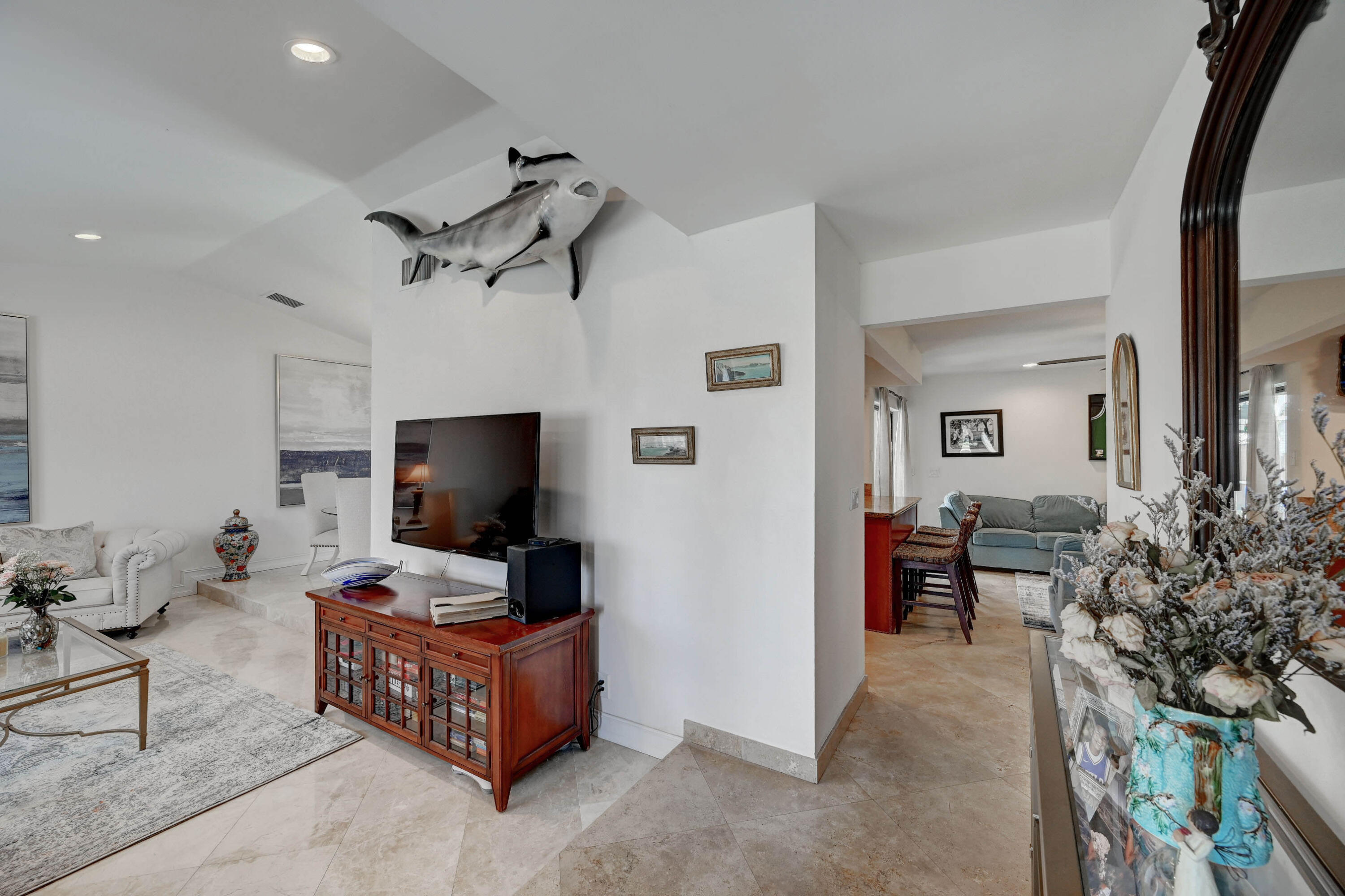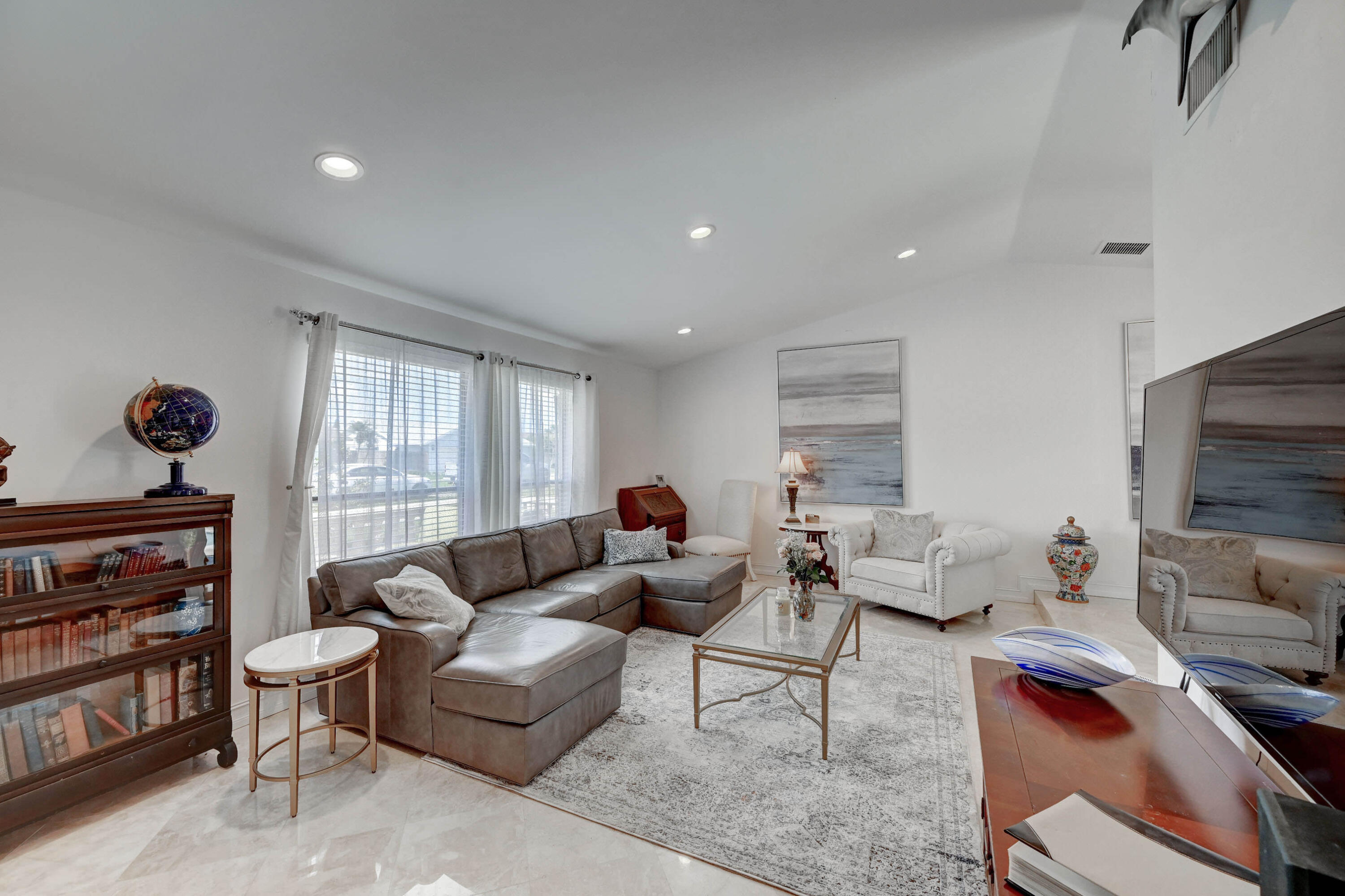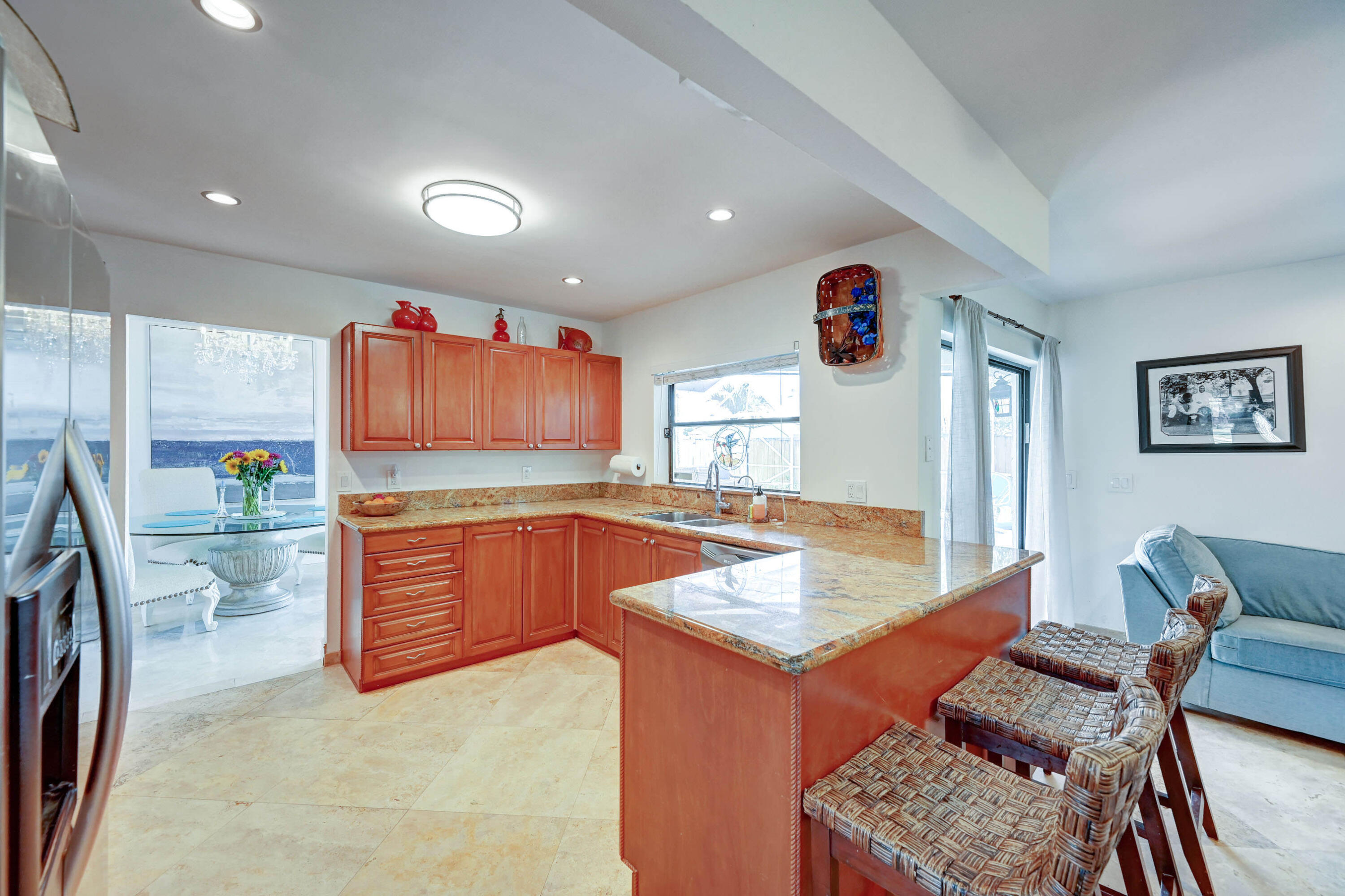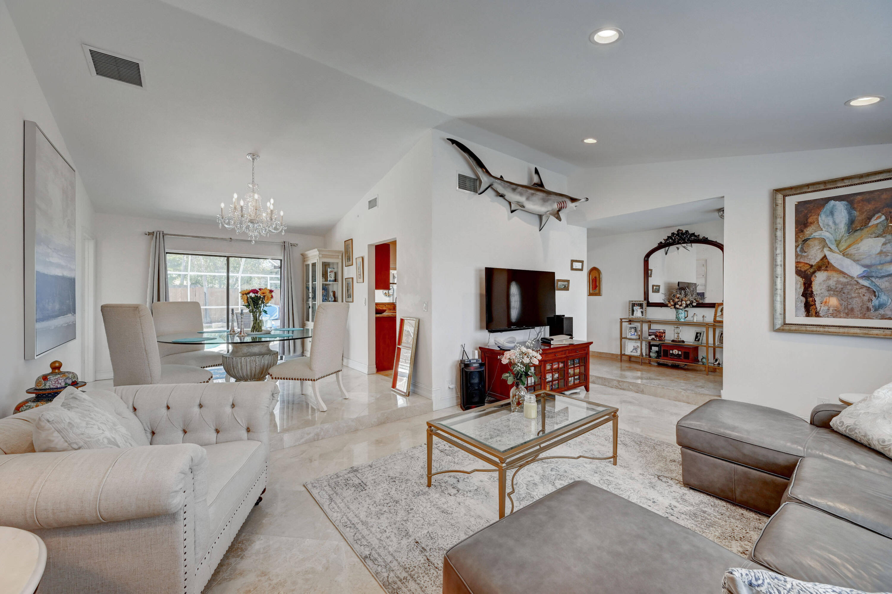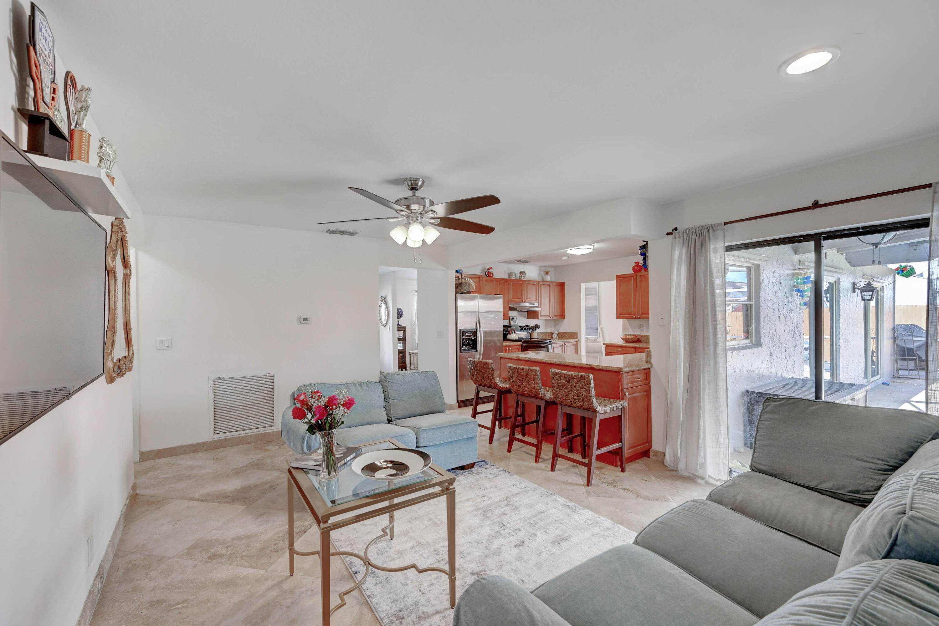 Open and airy spacious home with breathtaking stone work. 4 bedroom and 2 bath with pool in one of Boca's great neighborhoods. Largest model with over 1900 sq feet! Kitchen has granite countertops and stainless appliances. White marble floors in main living area. Vaulted ceilings in living and dining room newly Diamond Brite pool. Roof from 2018. Solar water heater. New electric panel garage with work area. Split bedrooms 3 on one side near updated cabana bathroom Expansive master suite with large walk-in built out closet.Newly updated bathroom and dressing area with granite tops. Large glass enclosed shower.Plenty of space for storage and gates to allow large recreational vehicles to be parked. Driveway widened all travertine. Large great marble deck rock surface