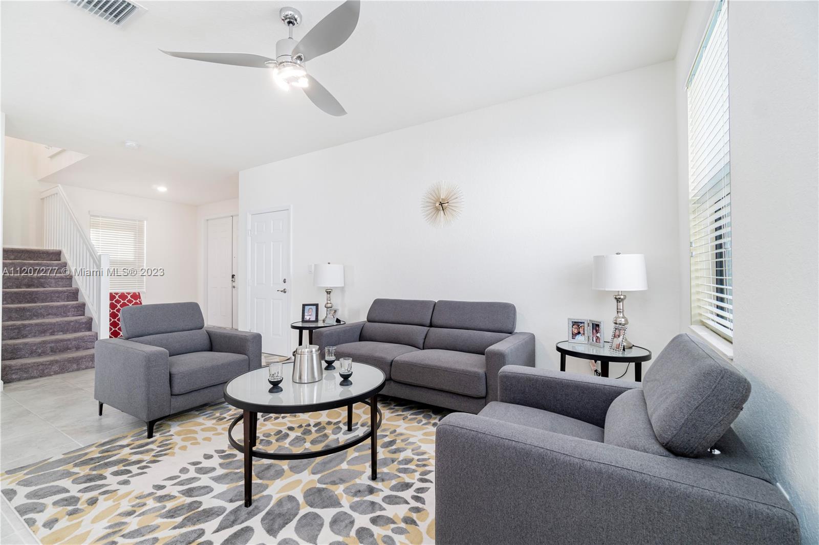 This home features 3 bedrooms, 2.5 baths in 2,407 Sqft with a modern kitchen, stainless steel appliances, double-door refrigerator. Spacious Master Bedroom. Modern tile downstairs and carpet upstairs. Lots of natural light. Full size Washer & Dryer. Two car garage and parking for 2 cars on the driveway. Residents will enjoy a great lakefront Clubhouse with children's playground, resort-style pool and state of the art gym. Excellent location, close to Miami Lakes excellent schools, shopping, restaurants and easy access to the main highways.