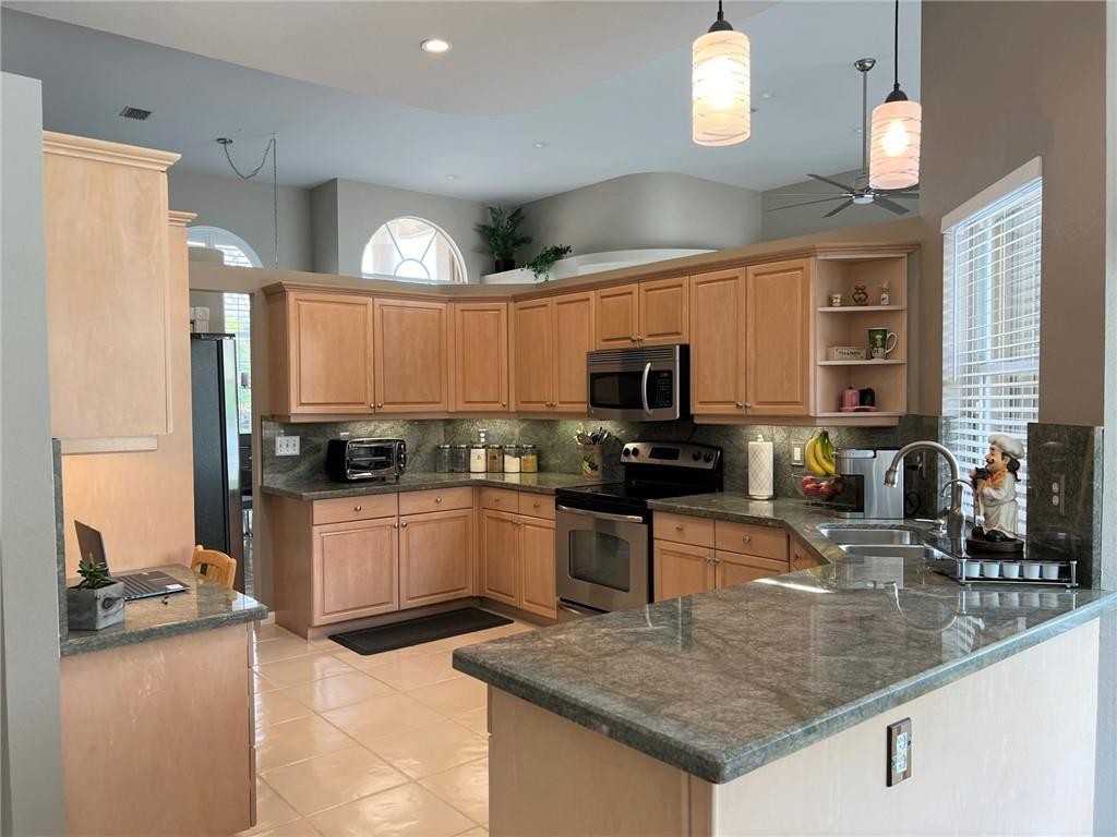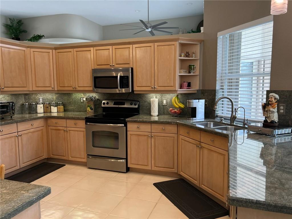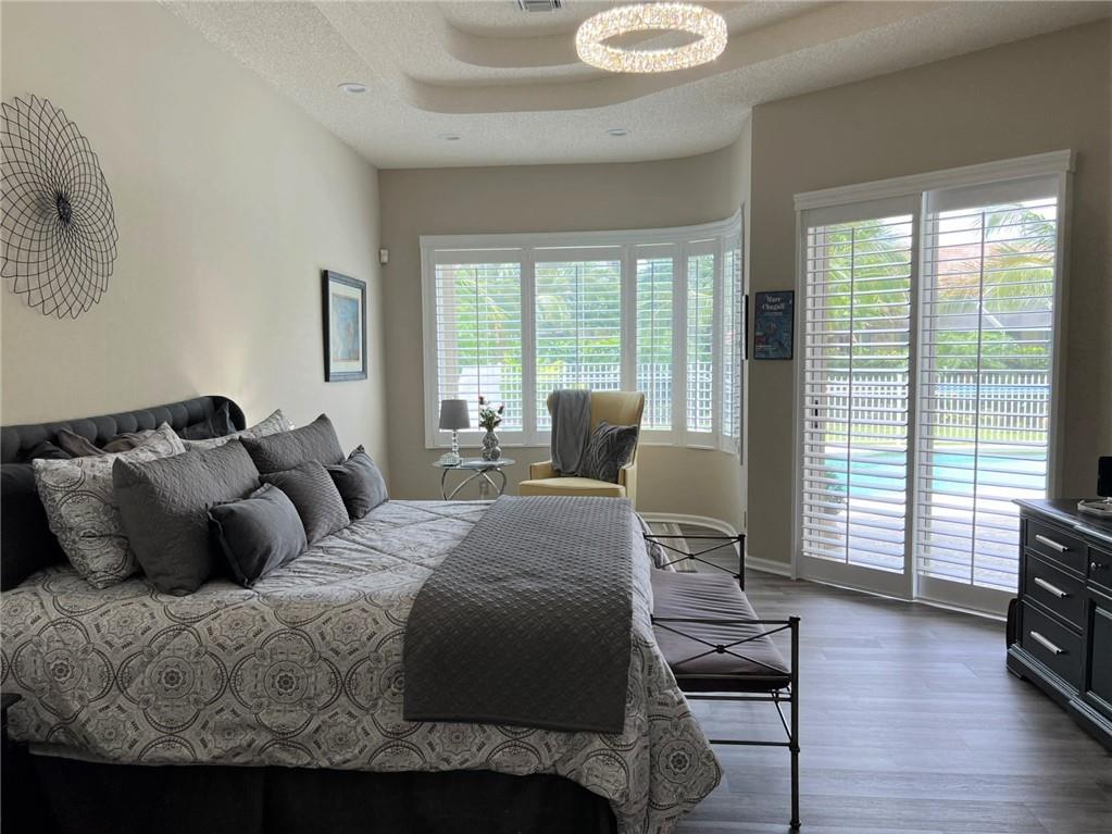 Step through the front door and experience this home's bright, open floor plan, encompassing 5 spacious bedrooms and 3 update bathrooms. Soaring ceilings & large windows allow natural light to fill the open living area. Enjoy your own space & privacy in this professionally landscaped and lightscaped pool home on oversized cul-de-sac lot on model row in Kensington Gardens. Close to schools, shopping, & minutes from highway. LOW HOA. Lg master has access to pool area, 3 lg closets, & ensuite w/double vanities, walk in shower, and oversized tub. Freshly painted in its entirety, new flooring in bedrooms, new LED lighting, plantation shutters, 2 newer A/Cs and water heater…residence has more updates than we can list! This flawless home has been meticulously maintained by original owner.
