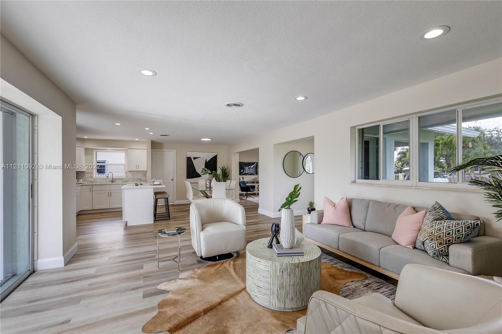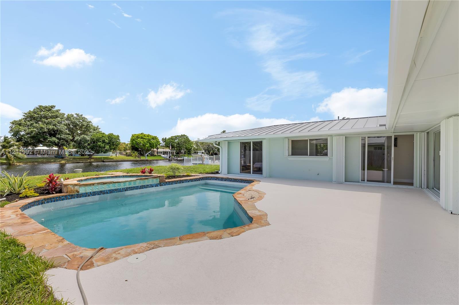 *BACK ON MARKET* Newly renovated 3 bedroom, 2 bath waterfront home. The property features new flooring, a modern kitchen with an island, quartz countertops, and stainless steel appliances, and renovated bathrooms. Freshly painted throughout. New landscaping with irrigation system in place. Property has a 4 ton A/C unit from 2017. Metal roof from 2005. Hurricane shutters included. Separate laundry room. Large sliding glass doors lead out to a big outdoor pool and deck area. The property is located on an approx. 160 ft wide canal with intercoastal and ocean access.