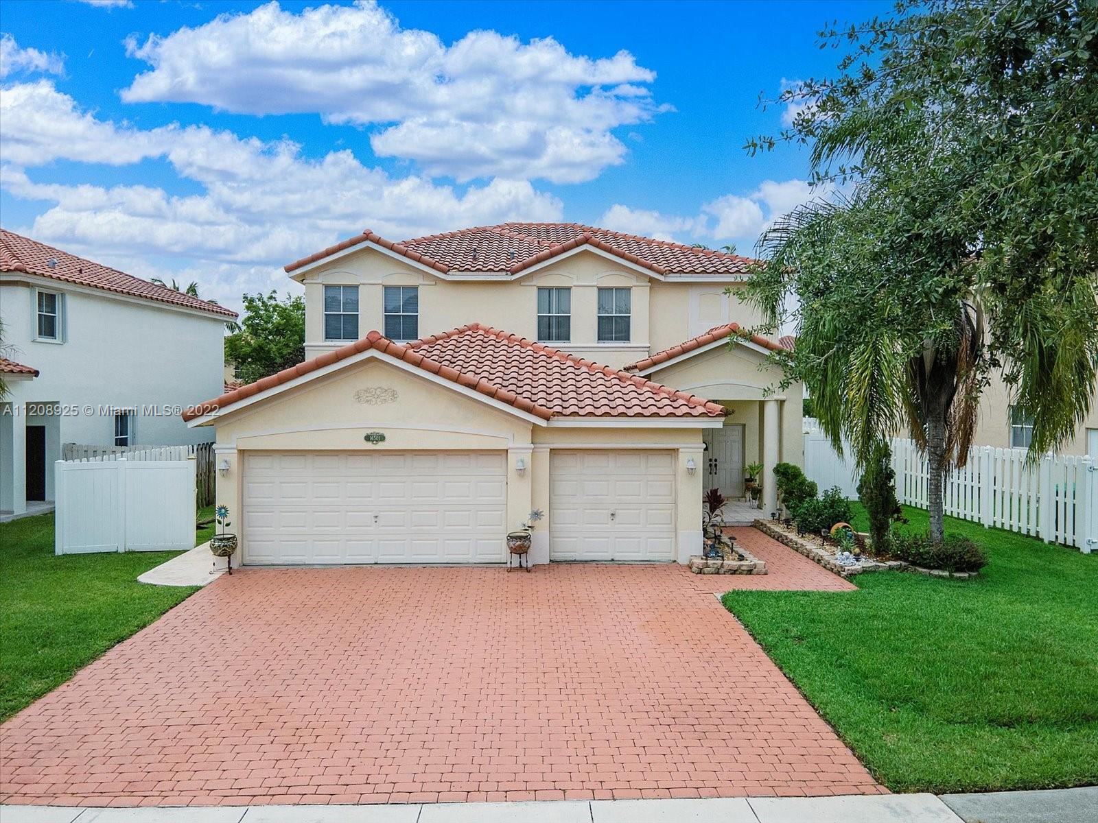 Two-story home with 5 bedrooms and 3 bathrooms in oversized lot with plenty of space for a pool. Located in gated community Nautica in West Miramar. One bedroom and full bathroom are located on 1st floor. Master bedroom w/ seating area. This home features formal dining and living rooms, marble floors throughout the 1st floor, and carpet on the 2nd floor; Kitchen with wood cabinets, granite countertops, and stain steel appliances with a separate breakfast area. Spacious family room and covered area in the backyard, perfect for entertaining. Large laundry room and 3-car garage. Resort-style amenities include 24-hour security, pools, clubhouse, gym, party room, tennis and basketball courts and jogging trails. Close to I-75, shopping, restaurants, parks and the Memorial Hospital. A+ Schools.