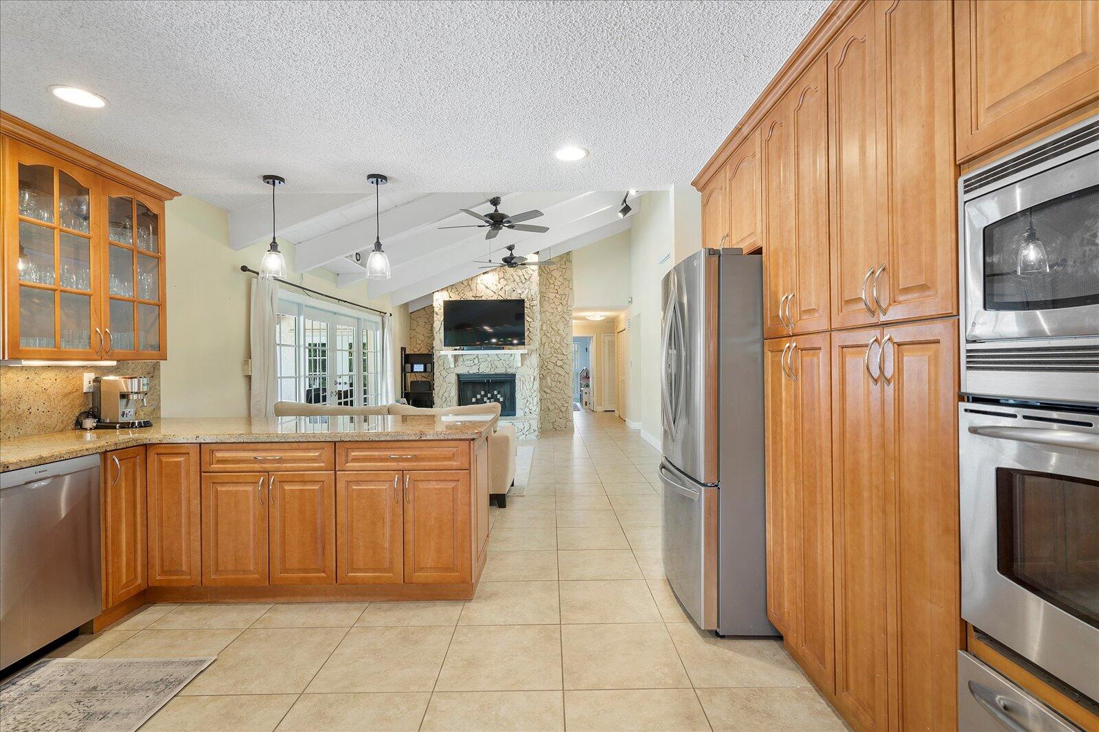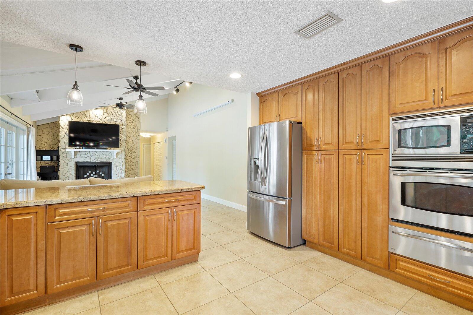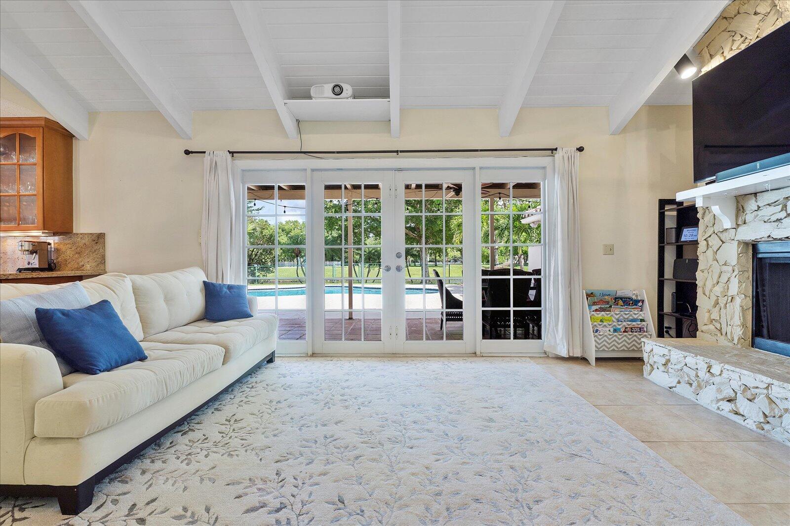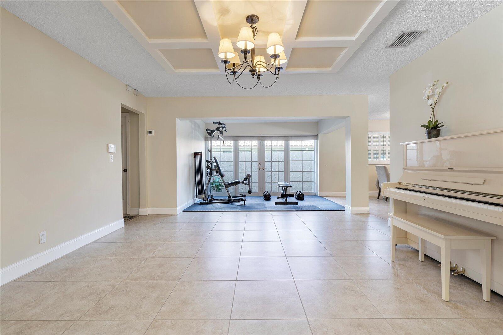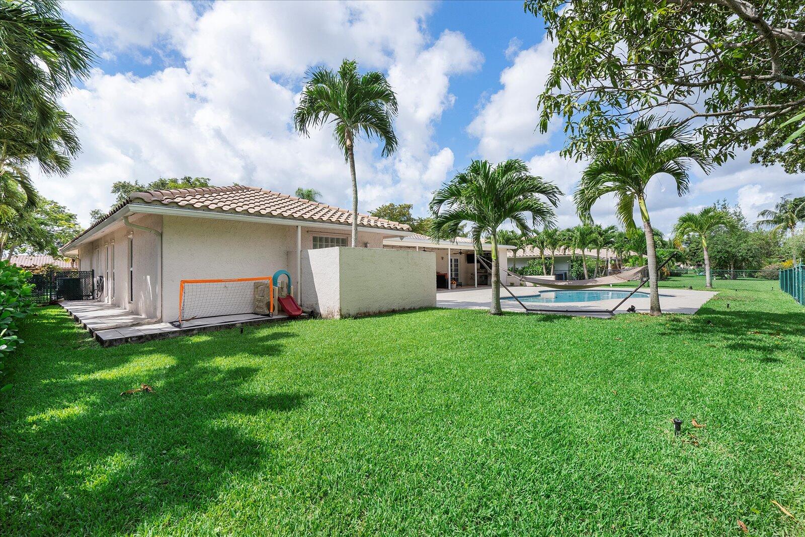 This Coral Springs ranch style 4 bedroom 2.5 bath home is located in the highly desirable, NO HOA community of Oak Wood. 2013 Roof, A/c's 2017 and 2019(with new ductwork in 2019), 2017 Water Heaters, 2022 Pool Resurfacing, Impact Glass and Impact Garage Door! The property boasts a massive .31 acre lot with resort style pool, huge patio area and fenced backyard. The water view from the covered porch is of an adjoining community park, giving you the privacy of no rear neighbors. As you pull up, you immediately notice the gigantic stamped concrete driveway, which provides tons of parking. As you enter the home, you see the vaulted ceilings in the living areas, ample natural light, stacked bedroom floorplan, multiple French doors and tile flooring throughout. Featuring an updated kitchen