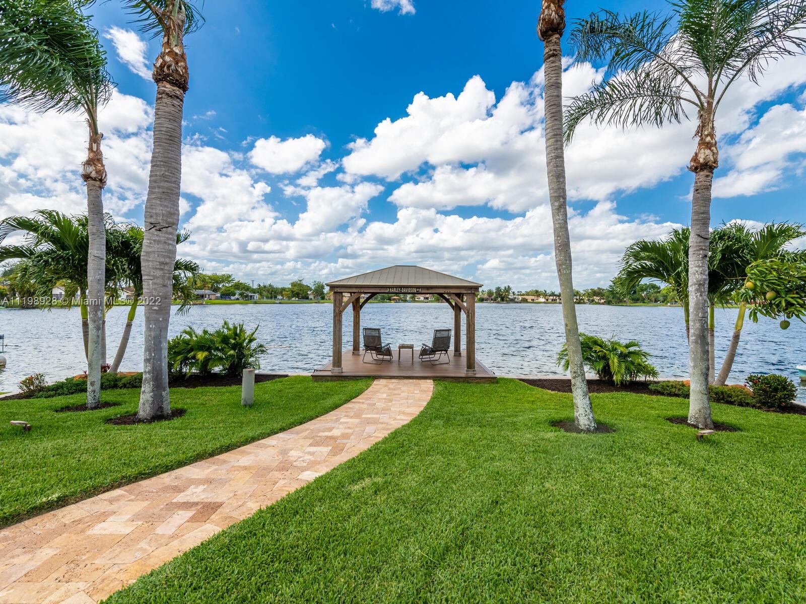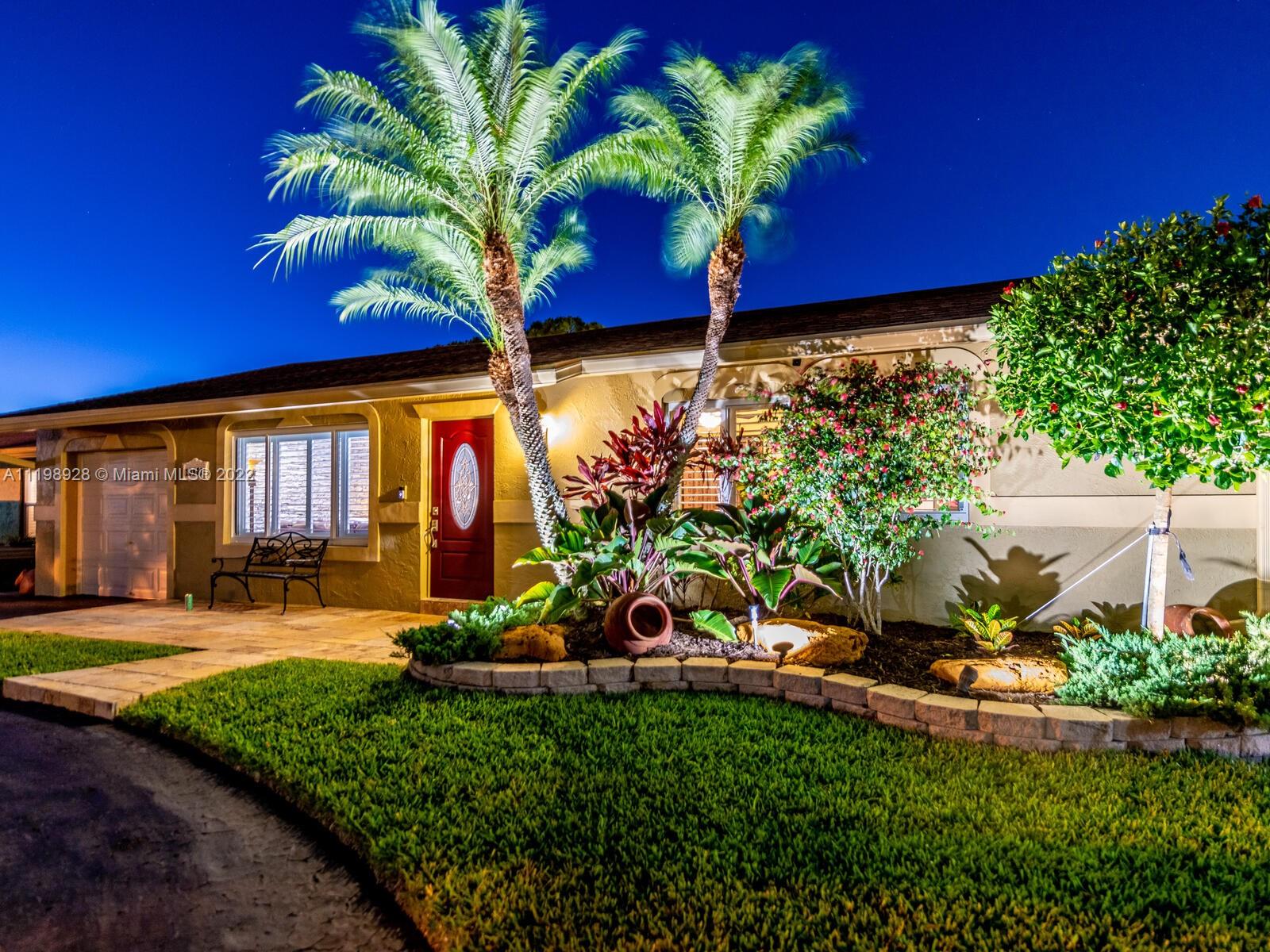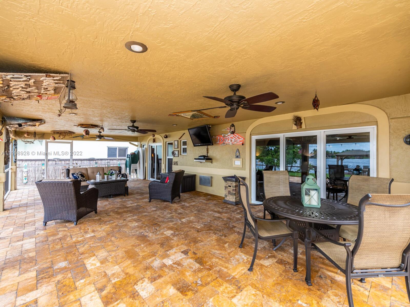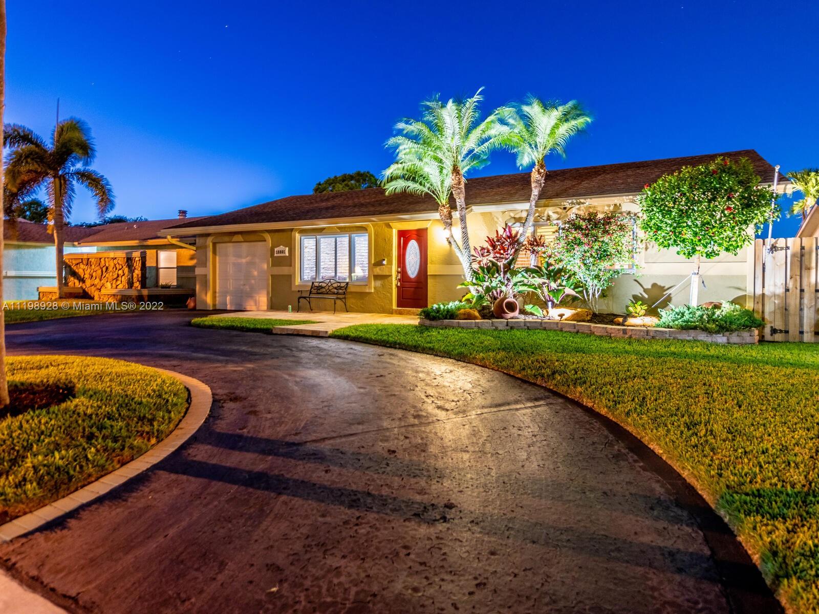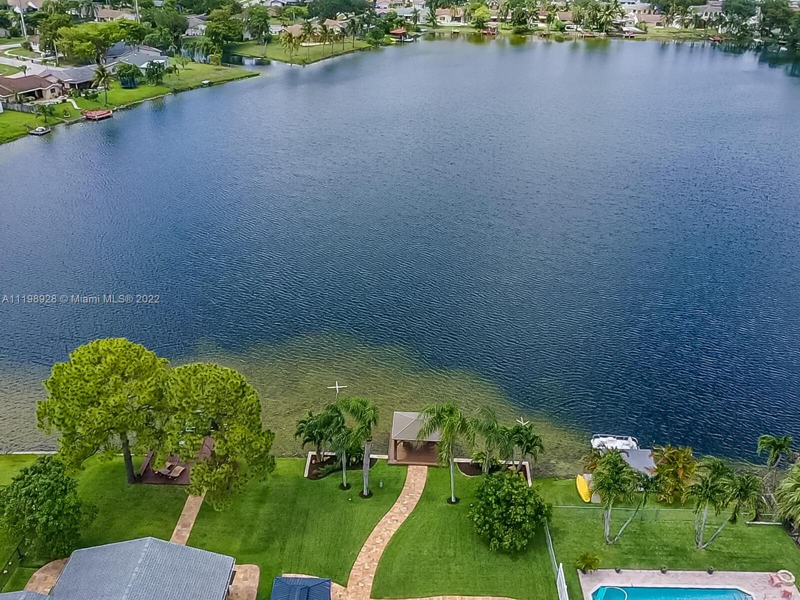Indulgent tropical paradise from the moment you step out of the back doors leading to an enclosed & covered 20x80' travertine patio, just outside that you will find the outdoor kitchen & shed. The yard has a mature mango tree, sprawling palms, & massive lake view with 80' water frontage. Extended yard leads to a custom dock with pavilion & sunshade. The home has been immaculately maintained & extensively updated with all impact windows and doors (including the garage) & a newly upgraded kitchen, including spotless Samsung appliances & a/c unit all about a year and 1/2 new. You'll enjoy the customs closets, updated guest bath, & high end laminate flooring in most of the main area. You can see the pride in ownership reflected throughout this highly sought after lakefront home in Sunrise!!!
