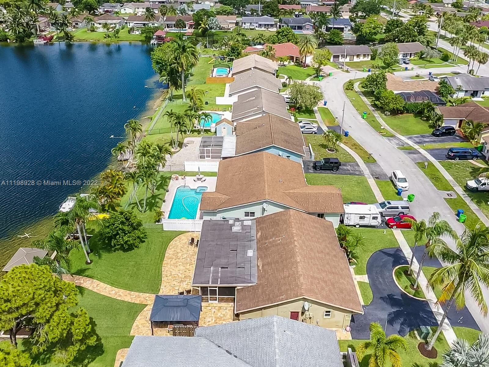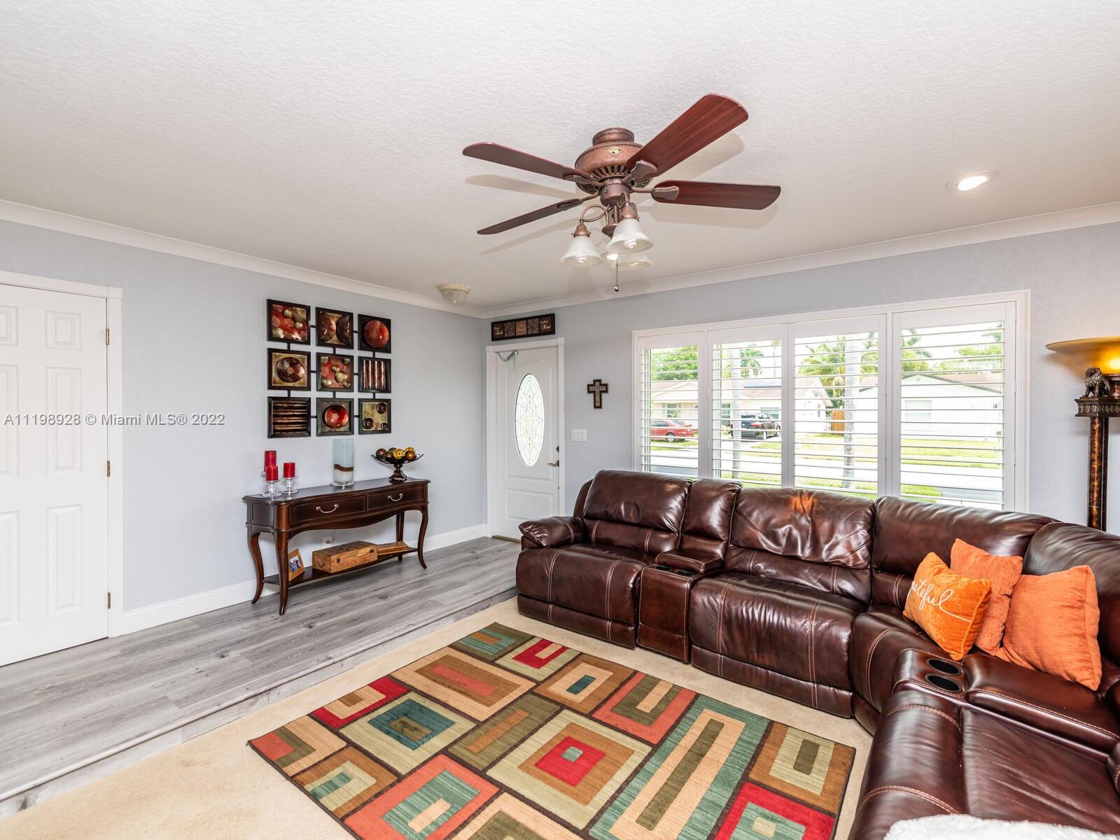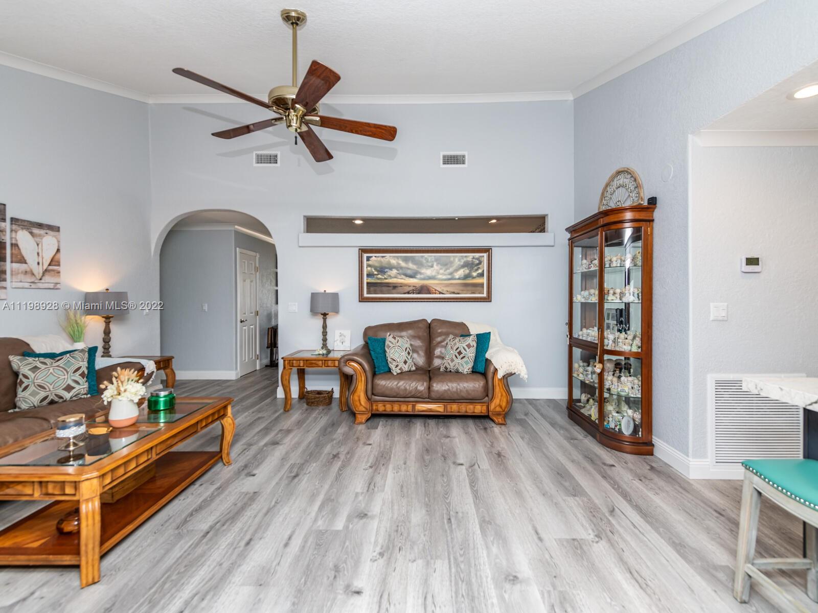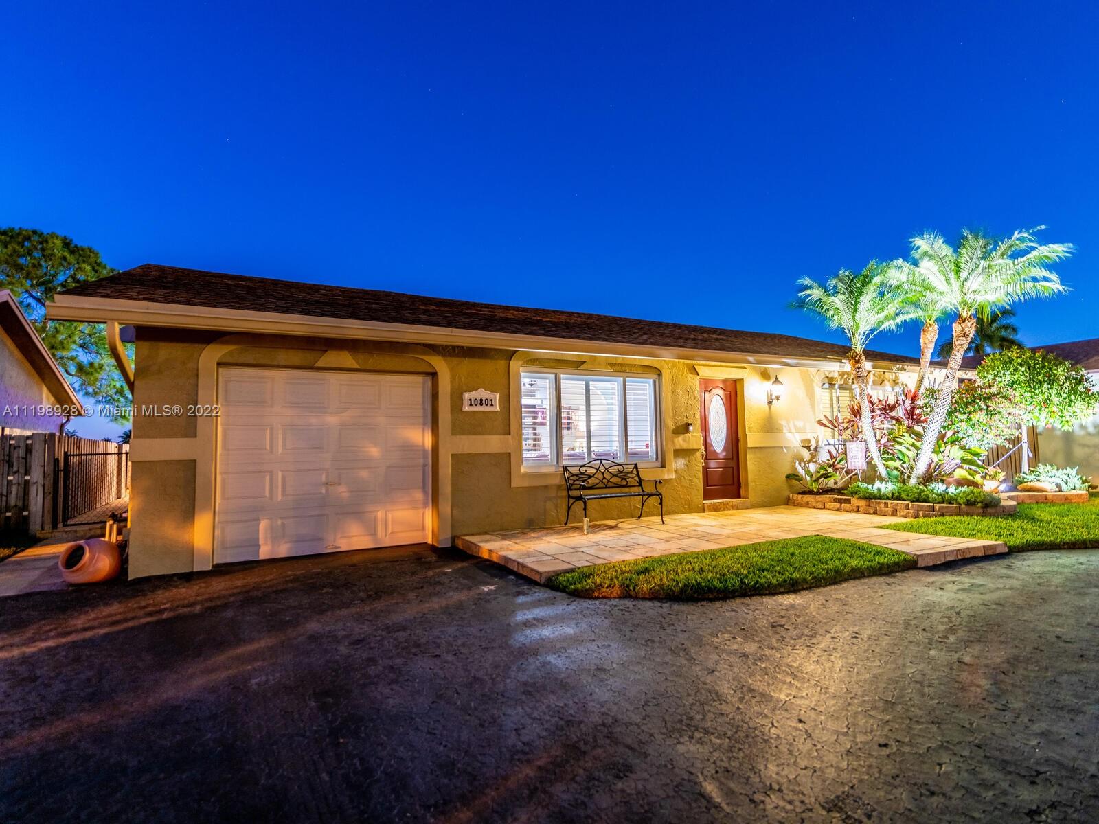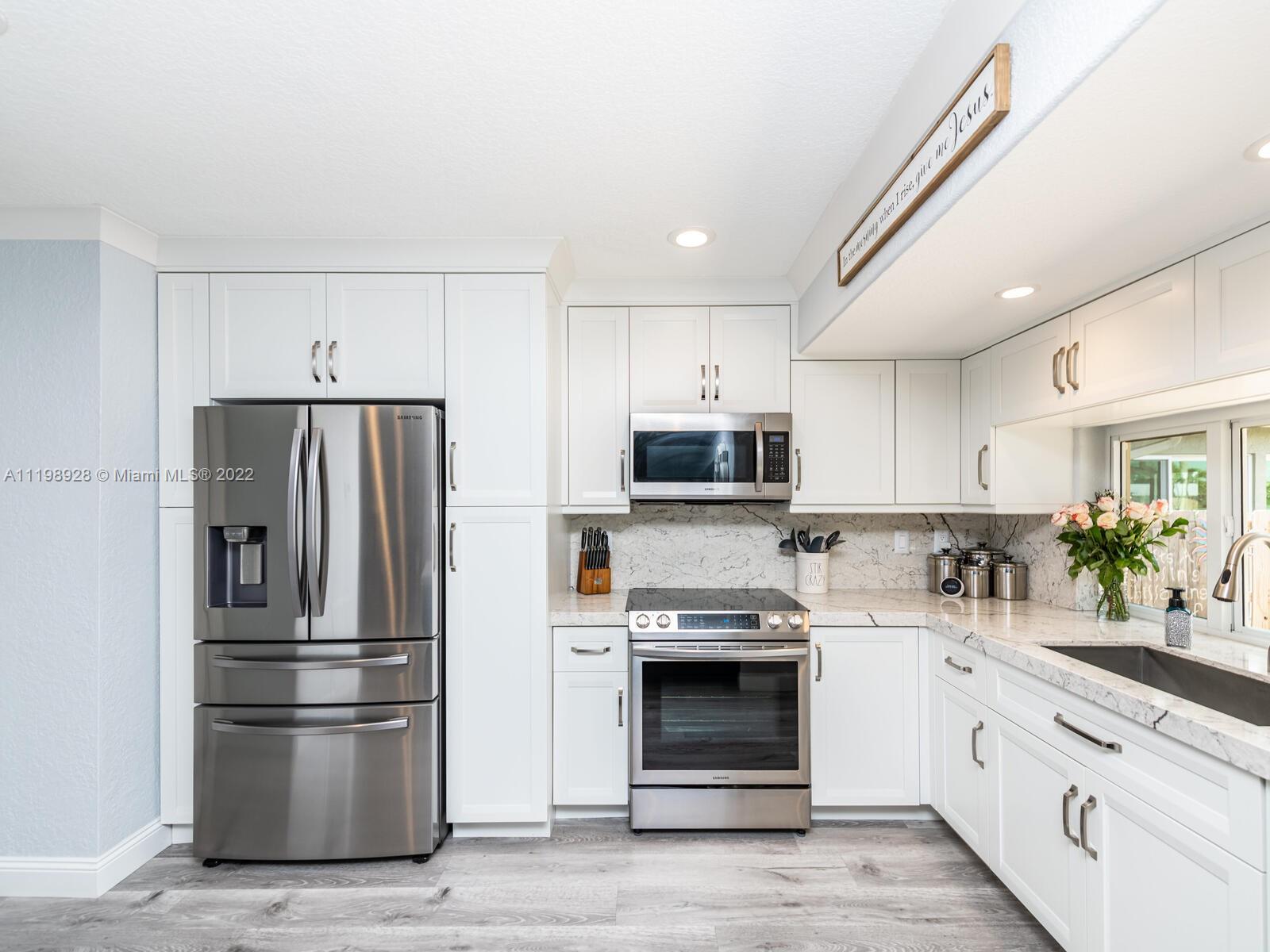 Indulgent tropical paradise from the moment you step out of the back doors leading to an enclosed & covered 20x80' travertine patio, just outside that you will find the outdoor kitchen & shed. The yard has a mature mango tree, sprawling palms, & massive lake view with 80' water frontage. Extended yard leads to a custom dock with pavilion & sunshade. The home has been immaculately maintained & extensively updated with all impact windows and doors (including the garage) & a newly upgraded kitchen, including spotless Samsung appliances & a/c unit all about a year and 1/2 new. You'll enjoy the customs closets, updated guest bath, & high end laminate flooring in most of the main area. You can see the pride in ownership reflected throughout this highly sought after lakefront home in Sunrise!!!