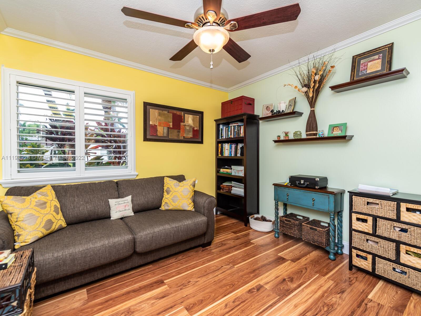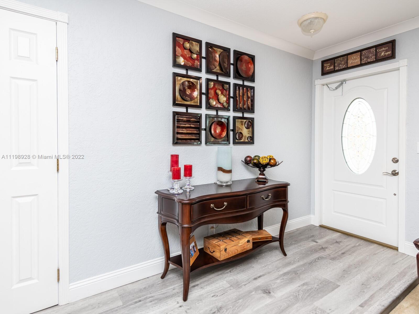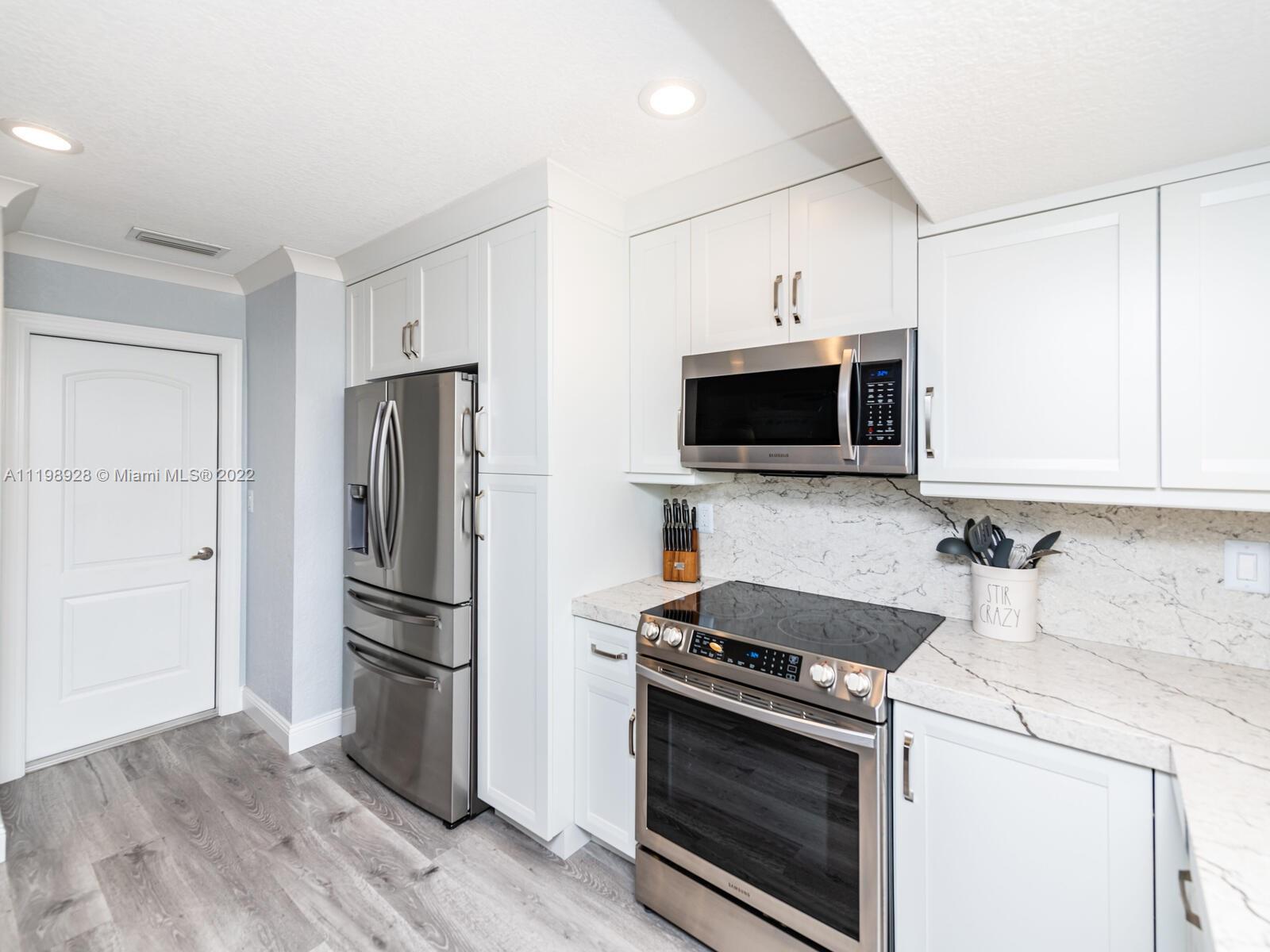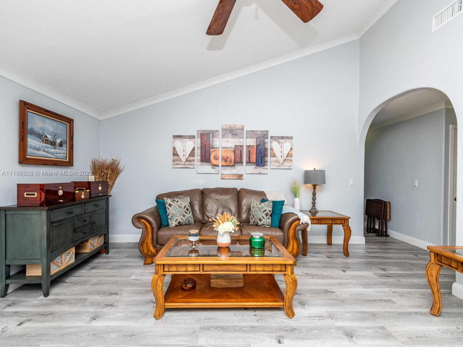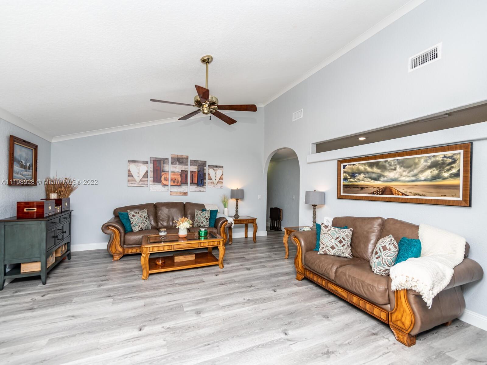 Indulgent tropical paradise from the moment you step out of the back doors leading to an enclosed & covered 20x80' travertine patio, just outside that you will find the outdoor kitchen & shed. The yard has a mature mango tree, sprawling palms, & massive lake view with 80' water frontage. Extended yard leads to a custom dock with pavilion & sunshade. The home has been immaculately maintained & extensively updated with all impact windows and doors (including the garage) & a newly upgraded kitchen, including spotless Samsung appliances & a/c unit all about a year and 1/2 new. You'll enjoy the customs closets, updated guest bath, & high end laminate flooring in most of the main area. You can see the pride in ownership reflected throughout this highly sought after lakefront home in Sunrise!!!