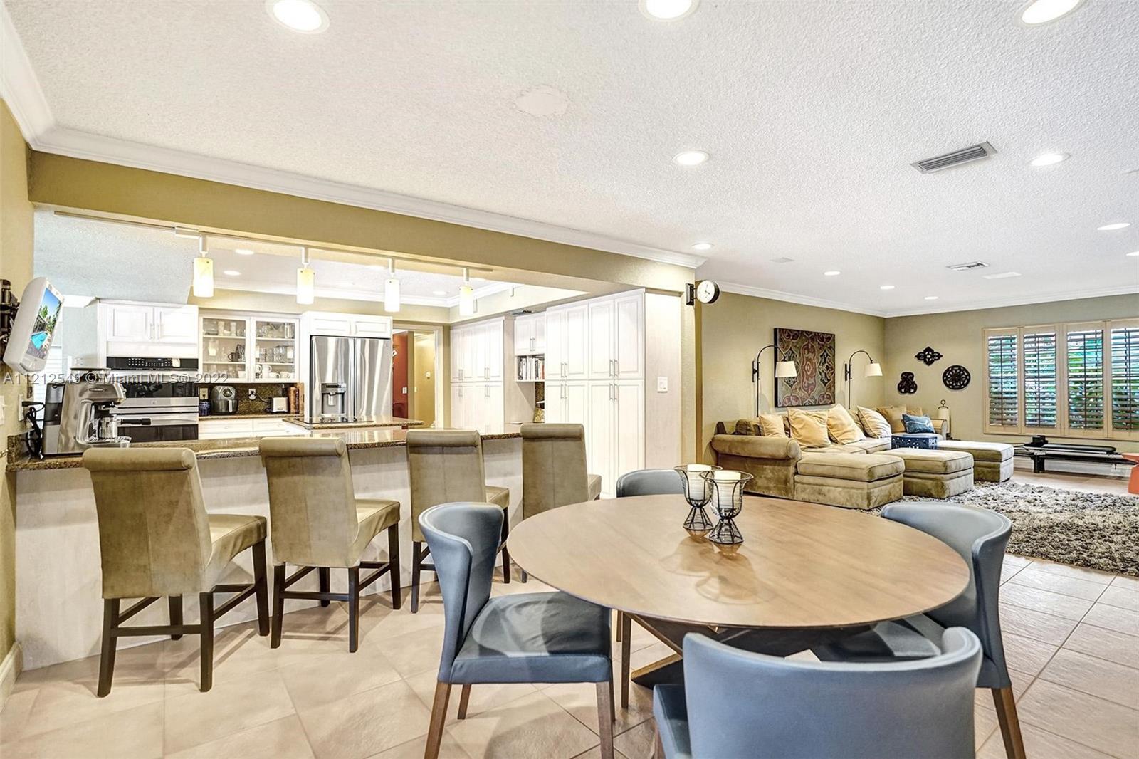 Rarely available - This immaculate and remodeled 4-bedroom 3-bathroom waterfront/pool single family home is the Largest custom-built 1 story home in New Orleans Villas Estates - no homeowners assoc! Features include 350 sq ft Billiard room with mahogany cabinetry & custom-built wet bar for entertaining off living room; expansive Gourmet kitchen with kitchen window overlooking pool deck, stovetop island, lighted breakfast bar and newer appliances; 2 large dining rooms & family room; custom plantation shutters, huge inside laundry rm! Garage-Tek system; outdoor living at its finest with resort-style southern exposure pool with brick paver patio flanked by eight 20-foot coconut palm trees along an expansive canal front with custom designed commercial-grade shade awning.