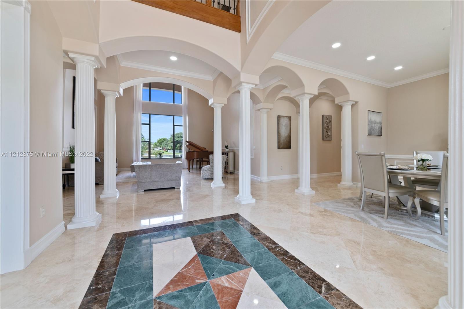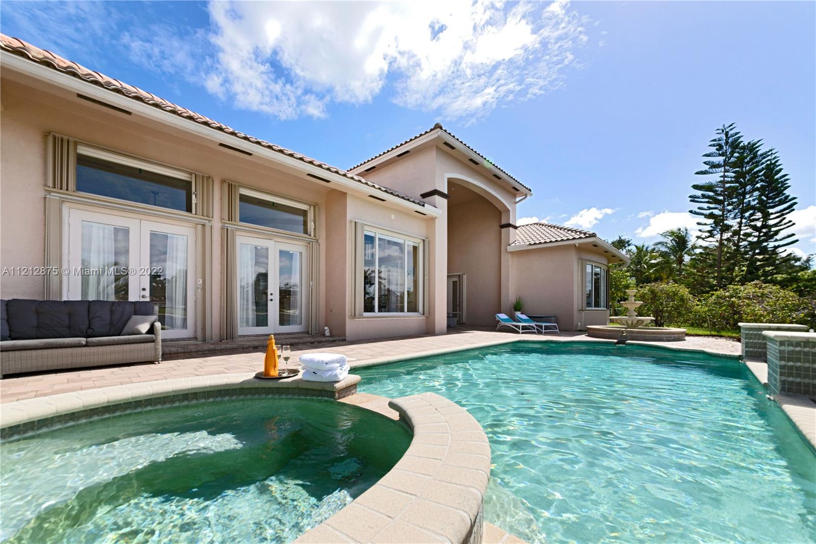 WELCOME TO THE SANCTUARY AT PEMBROKE FALLS! THIS RARELY AVAILABLE HOME IS PART OF THE ESTATES COLLECTION WHICH IS SITUATED ON A WATERFRONT PRIME LOT IN THE EXCLUSIVE GATED COMMUNITY WITHIN PEMBROKE FALLS. THE 5,843 SQ FT HOME OFFERS THE MOST SOUGHT AFTER FLOORPLAN ENCOMPASSING THE PRIMARY SUITE ON THE GROUND LEVEL WHICH OFFERS 2 FULL BATHS ALONG WITH STUNNING WATERVIEWS FROM THE SITTING AREA. STEPPING OUT OF YOUR PRIMARY SUITE, YOU HAVE FULL ACCESS TO A FULL OFFICE, FORMAL DINING, 30FT CEILINGS AND OPEN CONCEPT GOURMET KITCHEN INCLUDING WHITE CUSTOM CABINETRY WITH SPECTACULAR WATER VIEWS. THE 2ND LEVEL ENCOMPASSES AN OVERSIZED LOFT, 3 BEDROOMS & 3 FULL BATHS. ADDITIONAL FEATURES INCLUDE A FOUR CAR GARAGE, A WELL DESIGNED OUTDOOR SPACE INCLUDING A HEATED POOL, JACUZZI, DINING & LOUNGE AREA.