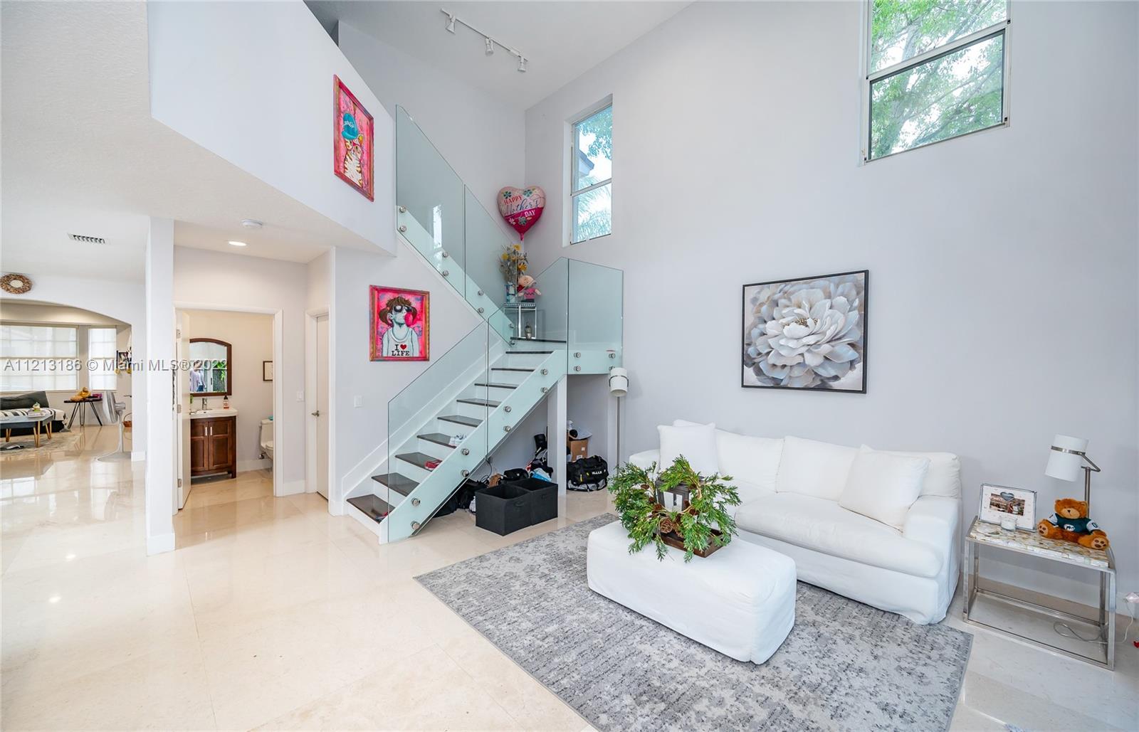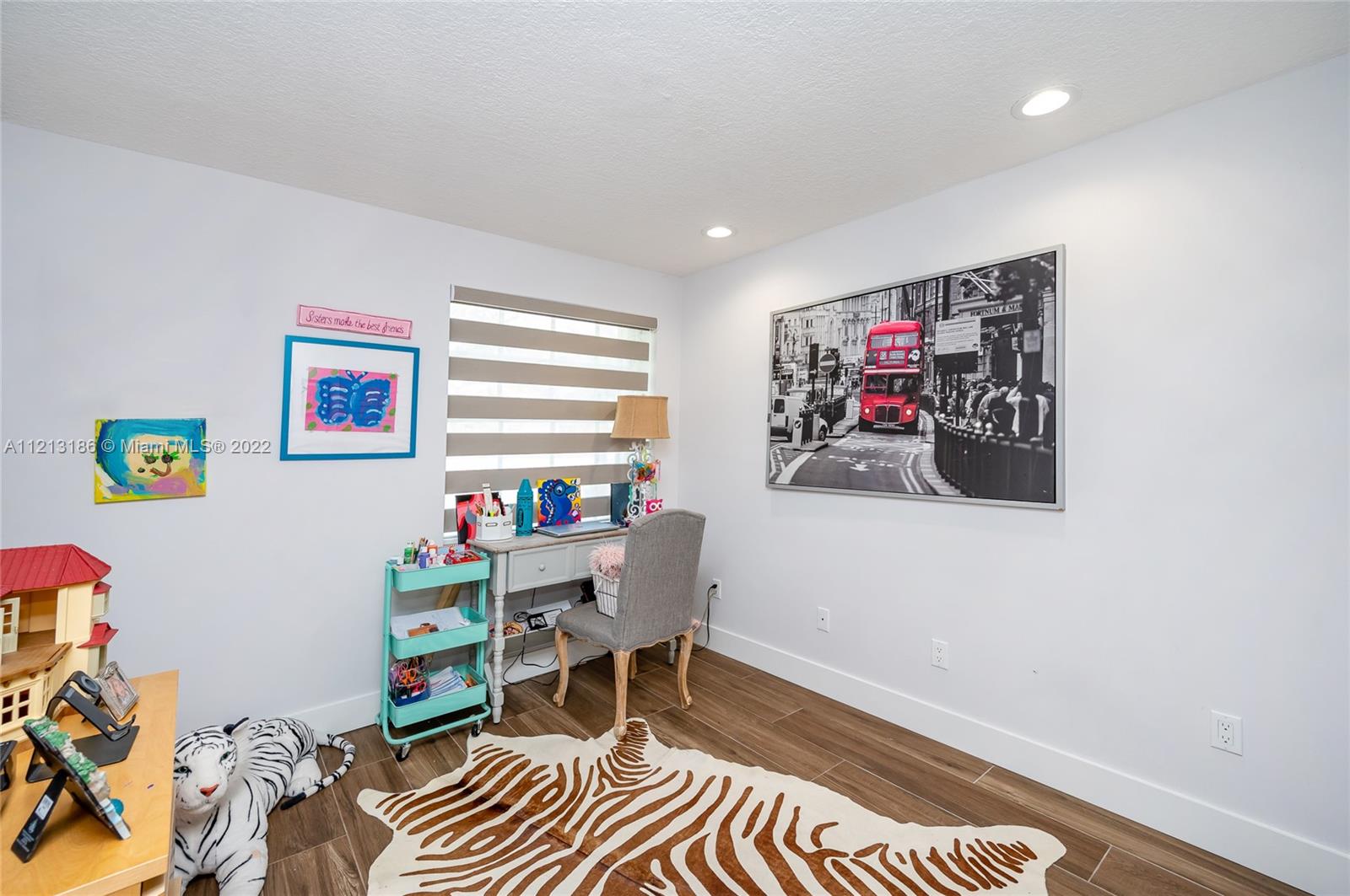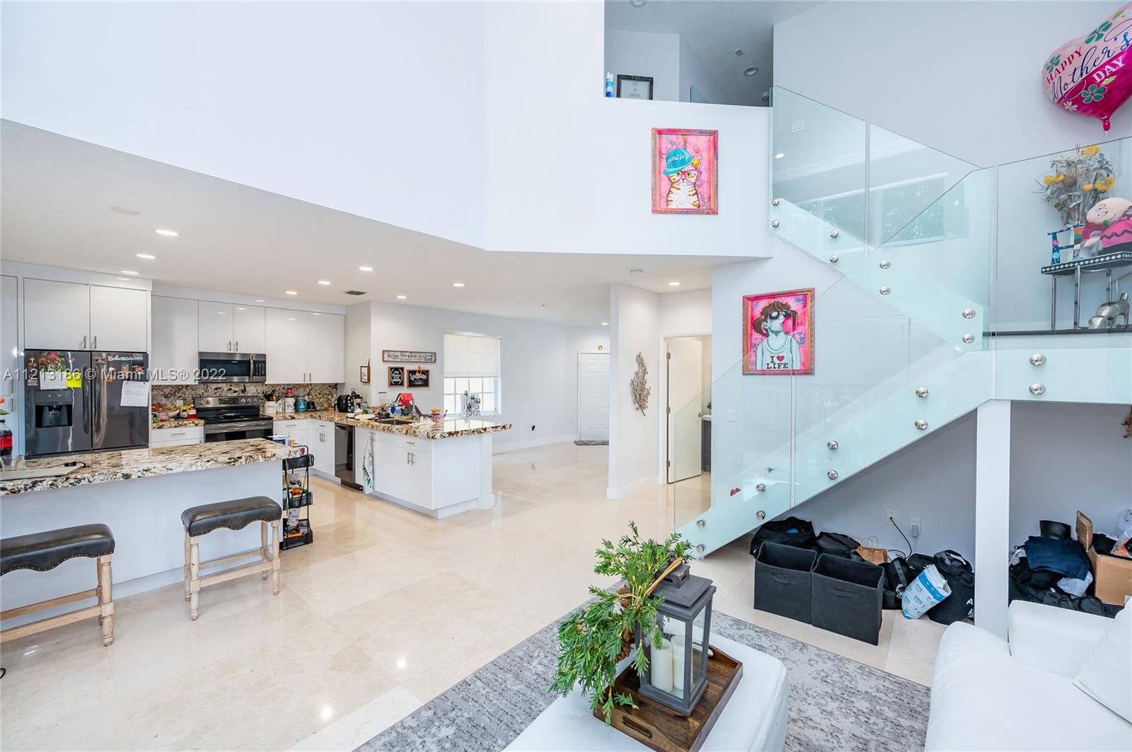 Gorgeous house in Chelsea at Ivanhoe, Davie, FL. 4 bed / 2.5 Bath. 2 car garage. Renovated two story home. Modern glass railing in stairs. Remodeled kitchen and bathrooms. Marble and Ceramic floors. Den downstairs perfect for private home office. Open layout kitchen, granite thick slab countertops, white modern cabinetry and SS appliances. Double height sunbathed bright living room. Renovated bathrooms with separate oval tub and shower in master bathroom. Large Master Bedroom. Walk-in closet. All 4 bedrooms upstairs. Hurricane accordion shutters throughout. Corner Lot, private large fenced yard perfect for BBQ and outdoor space. Gated community with pool. Excellent A graded school district. 2 minutes from Publix grocery, gas station, shopping plaza. 3 minutes to I-75 hwy. Best location.