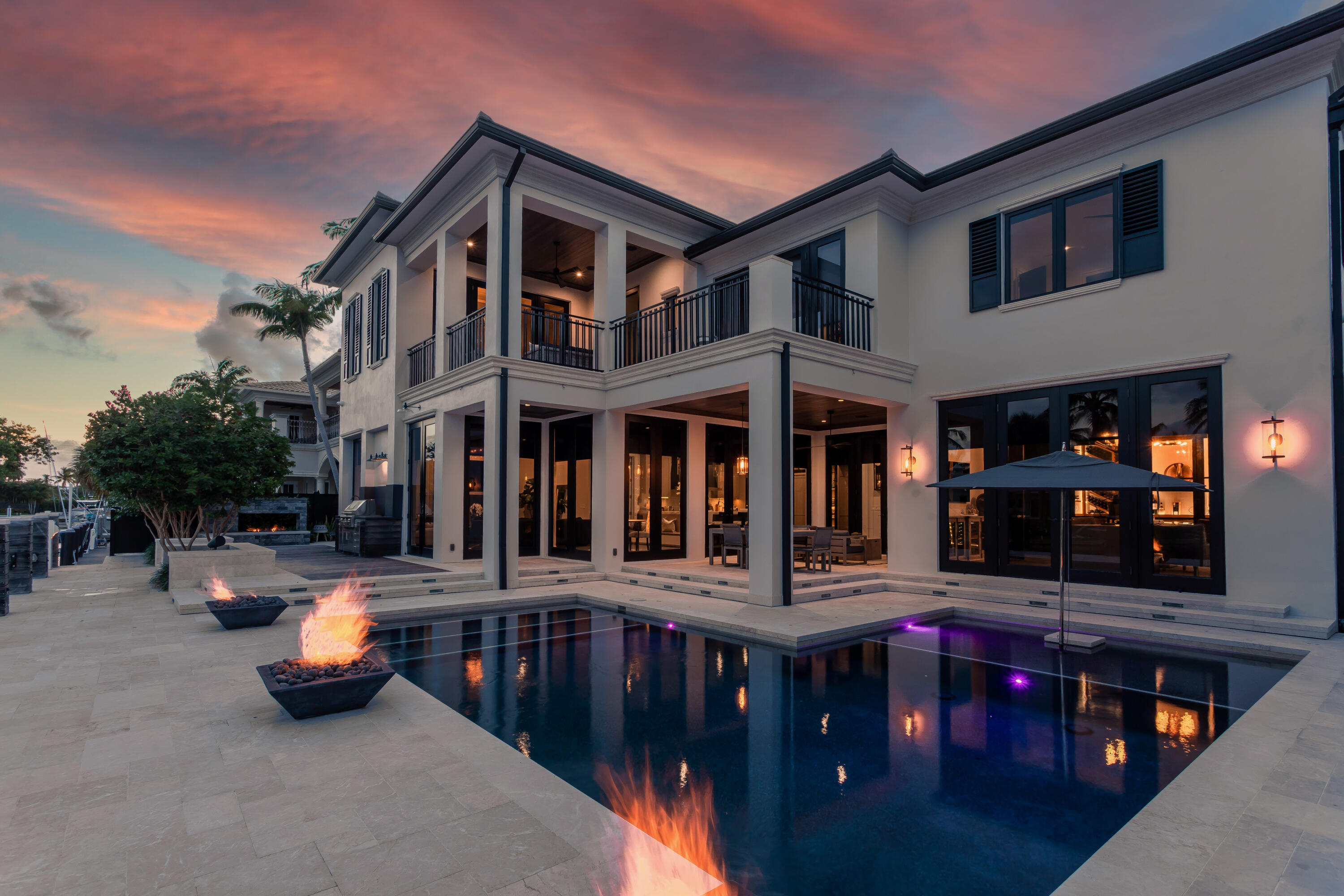 Located on one of the most sought-after streets & communities in East Boca Raton, this spectacularly custom crafted contemporary waterfront estate exudes quality and refinement. This prime lot situated on 85 feet of deep water with a brand new raised dock and seawall, is the perfect retreat for the avid boater with no fixed bridges and only minutes away from the ocean. A complete rebuild transformed this two story estate into a stunner, boasting exceptional indoor-outdoor living, with no attribute left untouched. Step into the grand foyer featuring soaring ceilings and opening to an exceptional floor plan. Sleek craftsmanship, unparalleled quality, and a unique mix of bespoke and warm finishes throughout the entire home makes this estate fit for the most discerning occupant. See 'More'..