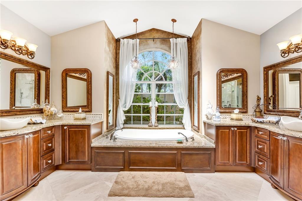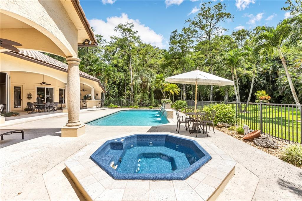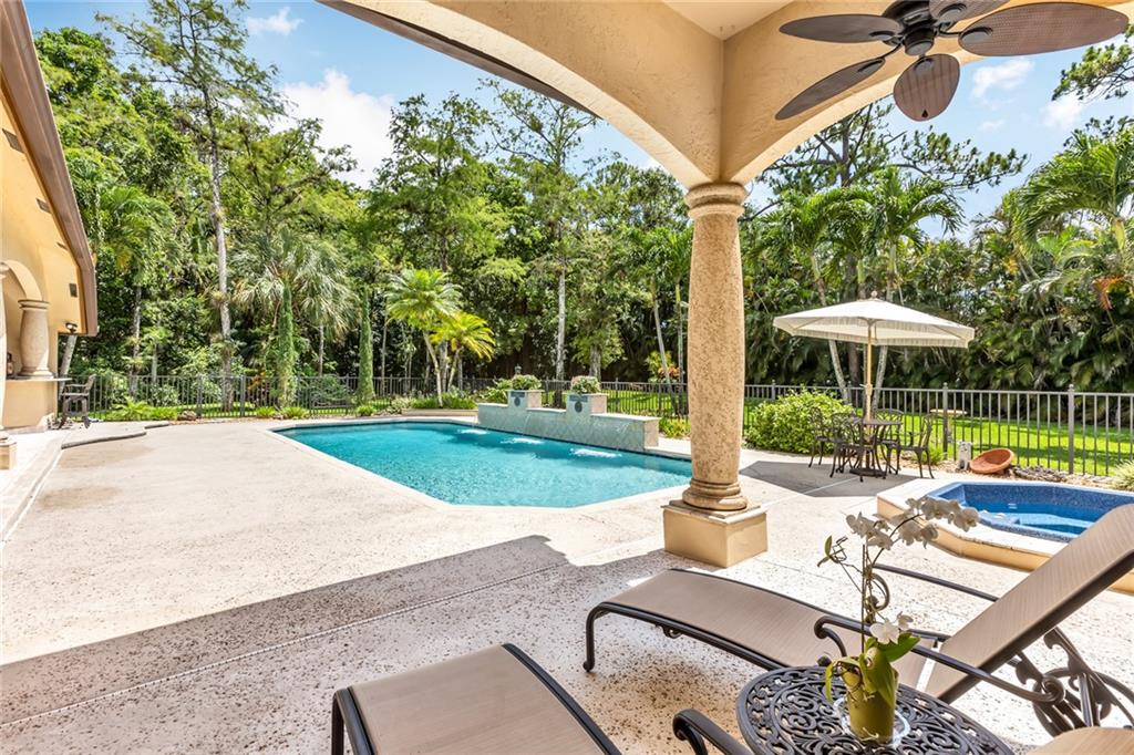 WELCOME HOME to this Expansive 5 bedroom 4 bath, 3 car garage home on a 1.25 acre lot in the Exclusive neighborhood of Whispering Woods! When you drive through the manned gated community you will notice the beautiful tree lined streets with one of a kind homes. This Spacious home has beautiful Marble Floors throughout the living areas with large windows looking out to the incredible pool and patio area with outdoor kitchen and bar with plenty of seating great for entertaining. The Gourmet kitchen has Liebherr refrigerator, Thermador oven, microwave, cooktop, and dishwasher. The Family room, Living room, and Patio all have Surround Sound throughout. There are new 3 zone Carrier A/C units. The garage has new Garage Doors, Custom Cabinets and Epoxy floors. A Definite Must See!