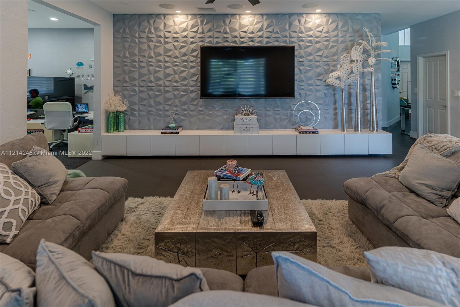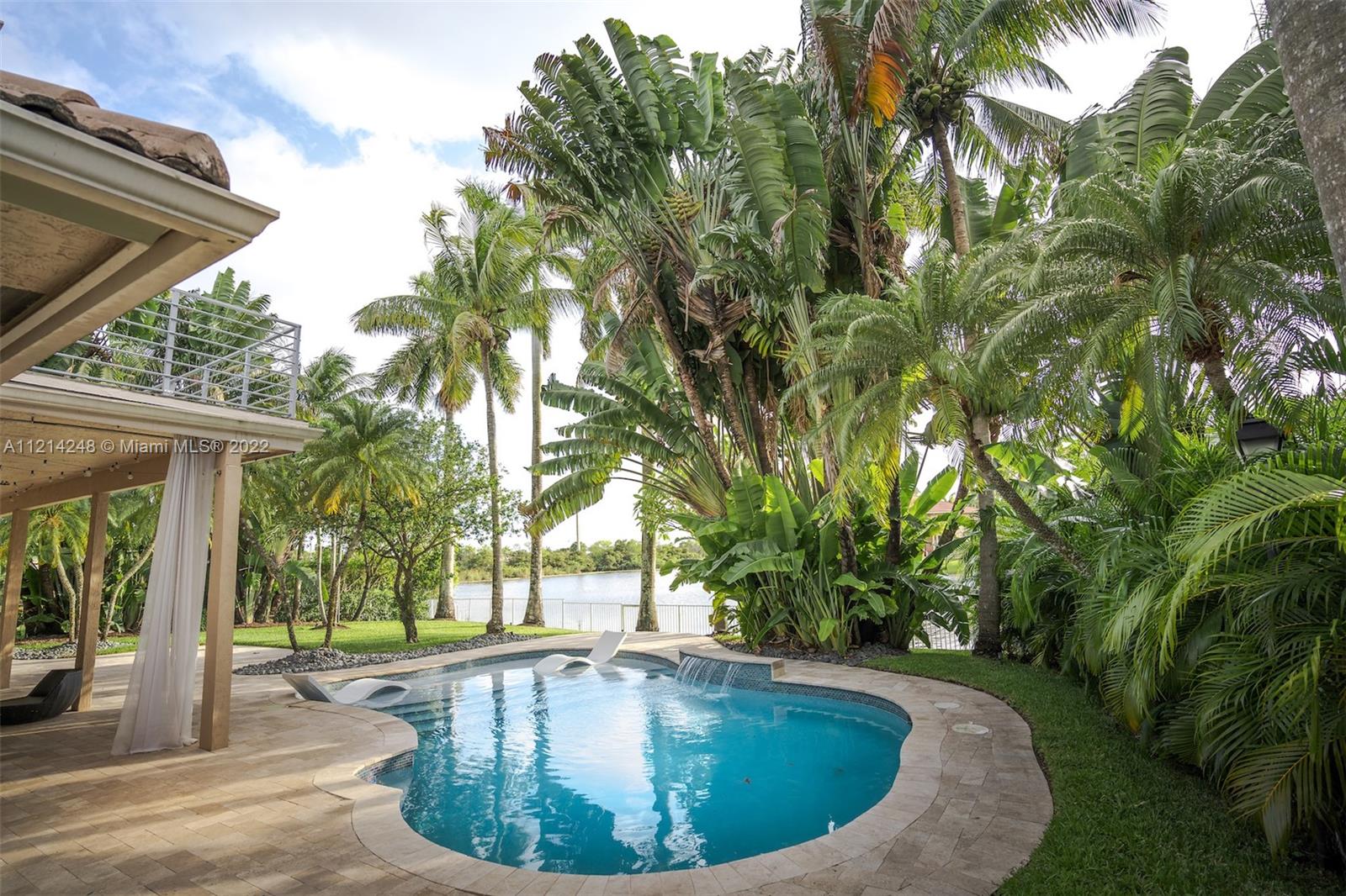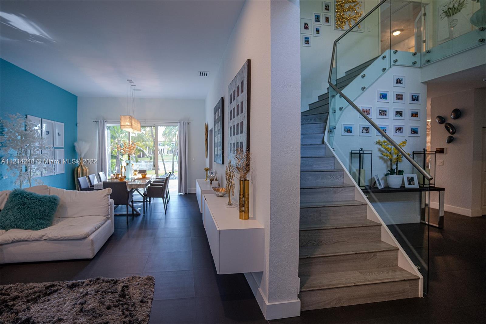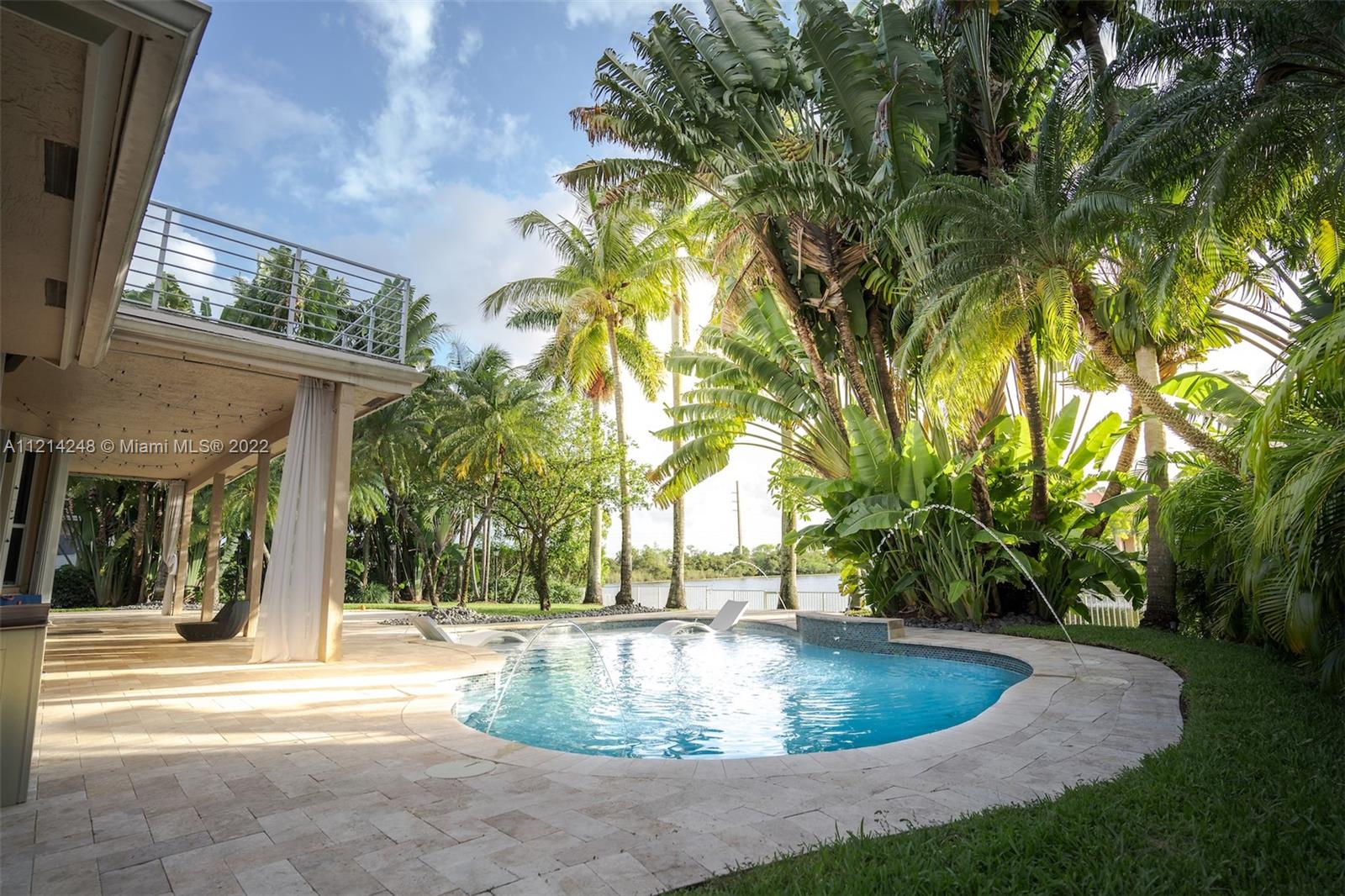 Looking for the perfect escape from the city? Stunning waterfront, cul-de-sac home. Sitting on one of the largest lot in the area (.39 acre). This two-story 4,000SF+ living residence was completely remodeled. Featuring sleek, warm modern details throughout. Offering 75 feet of water frontage, outdoor area with a heated water jet pool, ivory travertine pavers, beautiful 30 feet tall palm trees with lots of privacy, and lush landscaping. Renovated in 2018, this 7 bedroom/5 full bathroom home complete with a playroom, music studio, beautiful island, 16’ x 14’ converted closet, 3-parking garages, oversized master suite with 40’ x 16’ balcony, Crestron controls, sound system throughout, 10’ ceilings throughout 1st floor, and more!