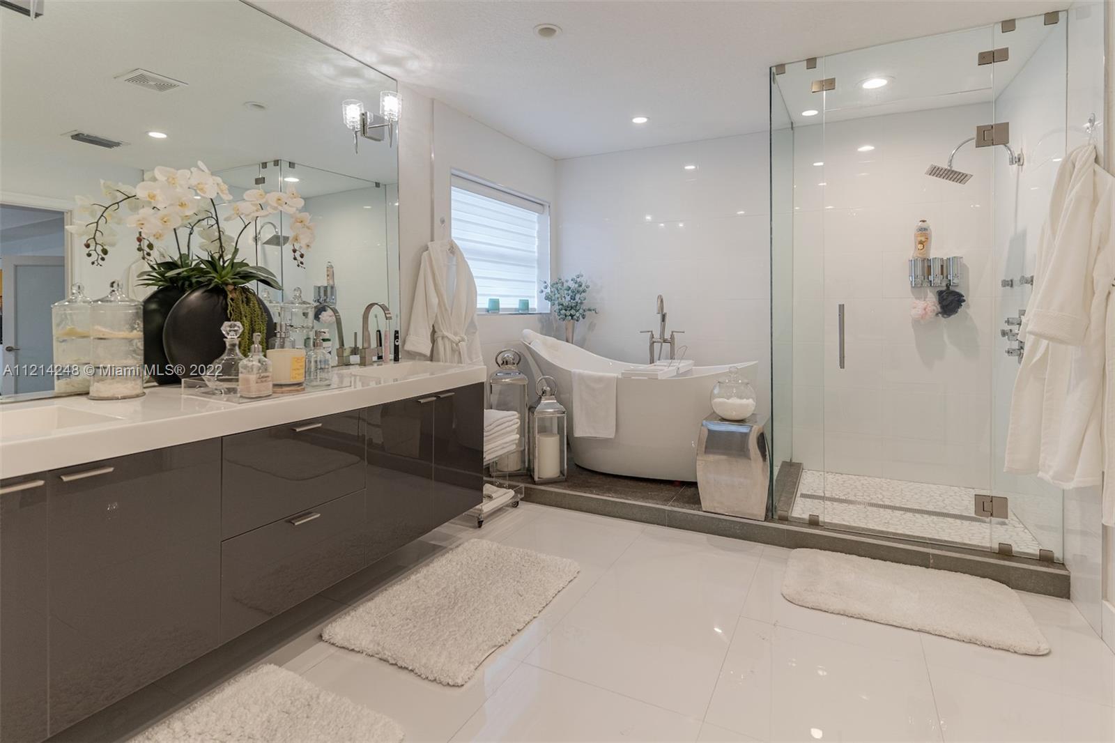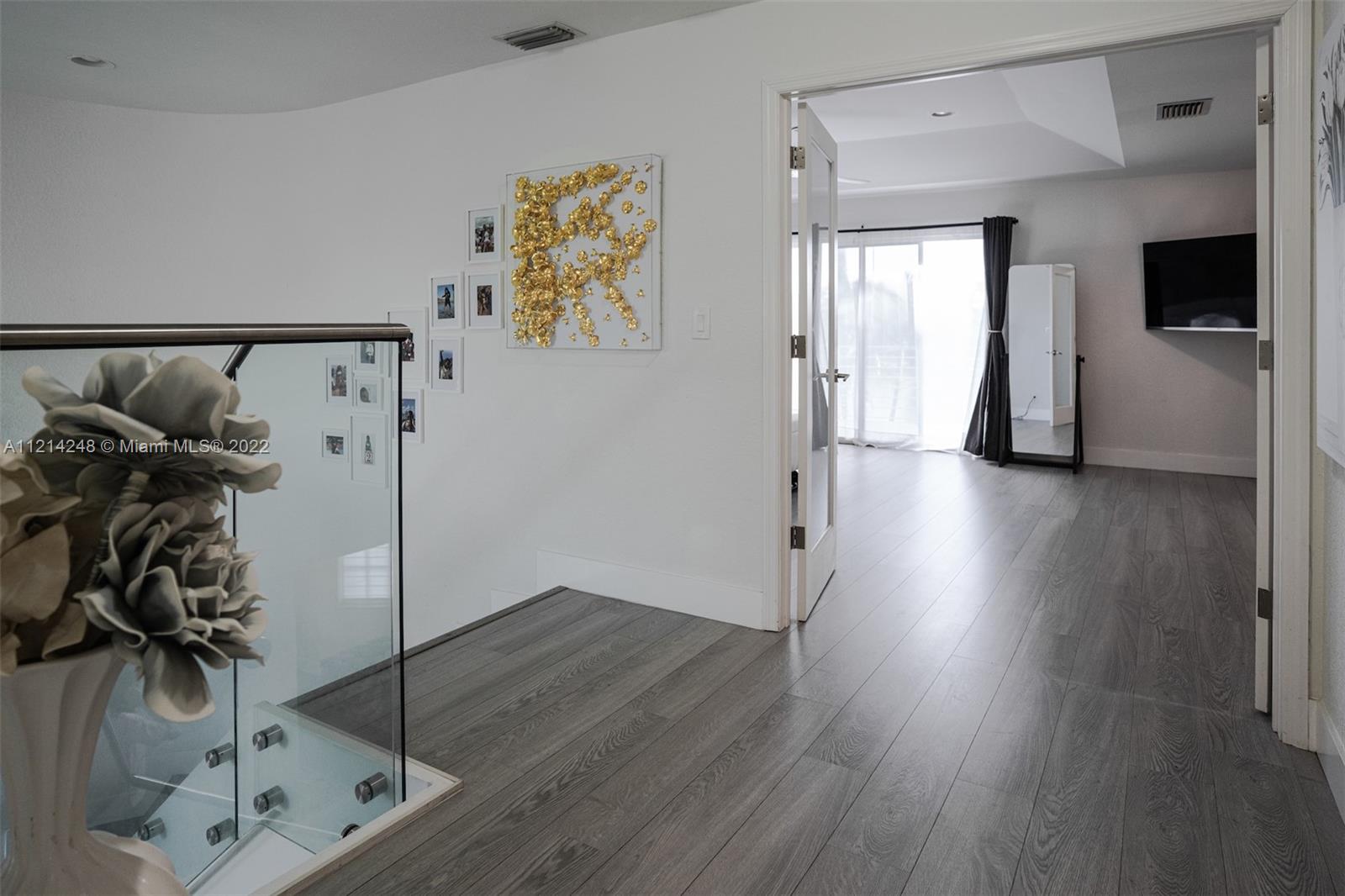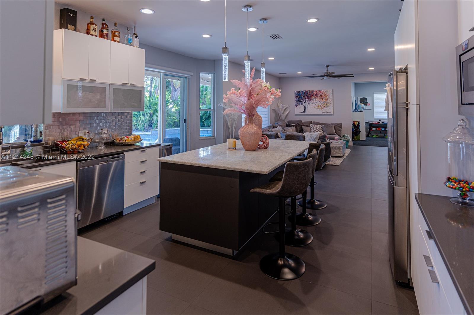 Looking for the perfect escape from the city? Stunning waterfront, cul-de-sac home. Sitting on one of the largest lot in the area (.39 acre). This two-story 4,000SF+ living residence was completely remodeled. Featuring sleek, warm modern details throughout. Offering 75 feet of water frontage, outdoor area with a heated water jet pool, ivory travertine pavers, beautiful 30 feet tall palm trees with lots of privacy, and lush landscaping. Renovated in 2018, this 7 bedroom/5 full bathroom home complete with a playroom, music studio, beautiful island, 16’ x 14’ converted closet, 3-parking garages, oversized master suite with 40’ x 16’ balcony, Crestron controls, sound system throughout, 10’ ceilings throughout 1st floor, and more!